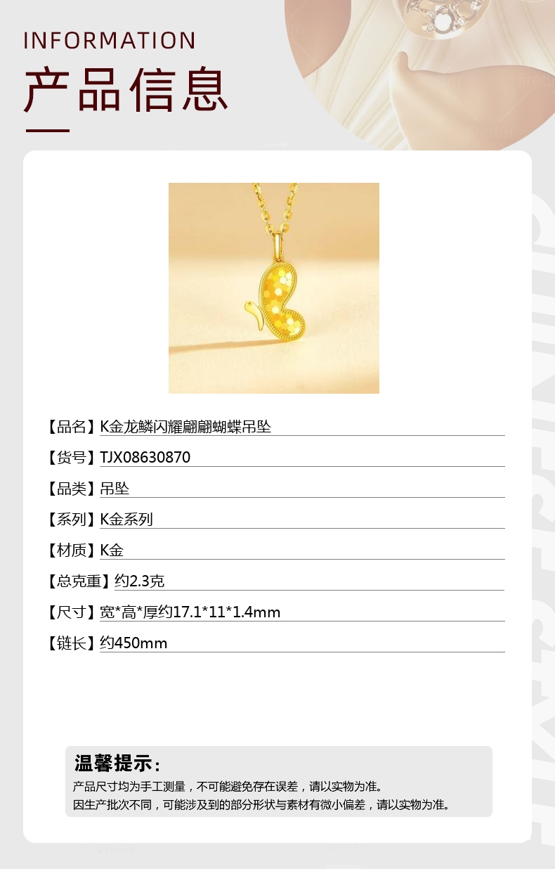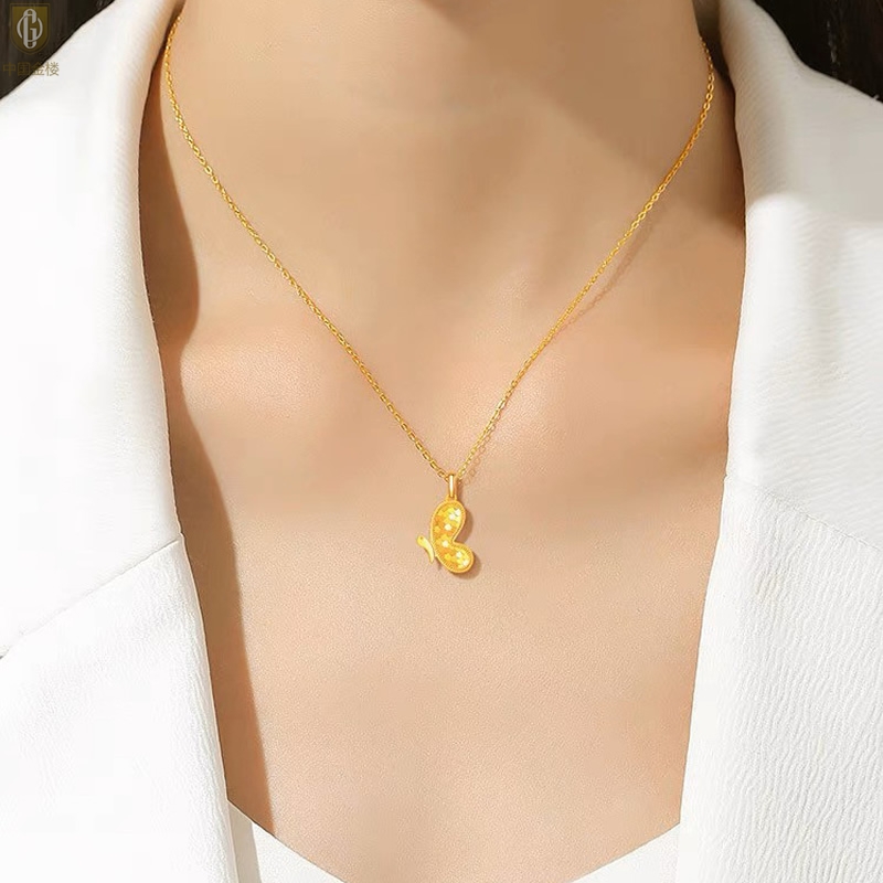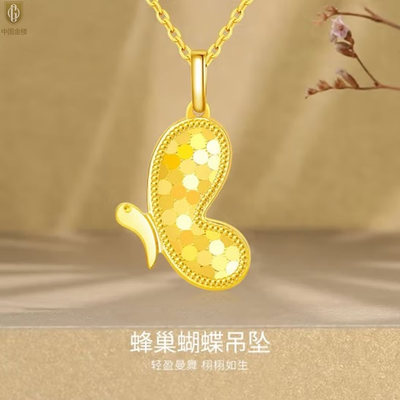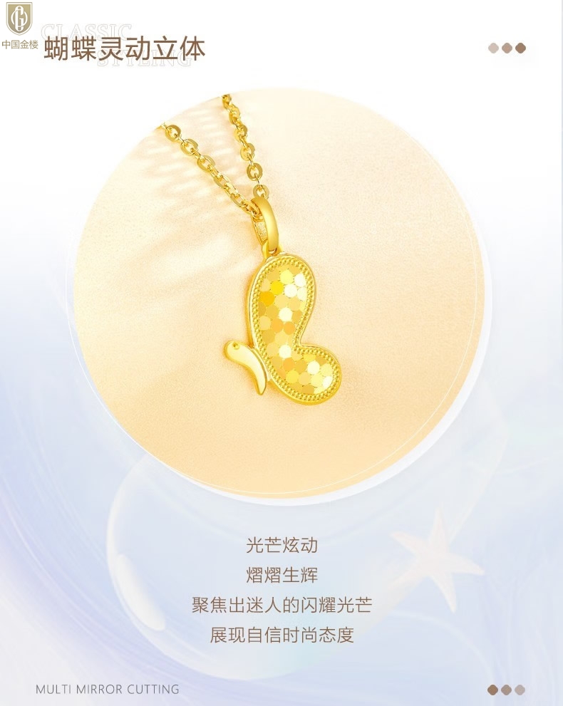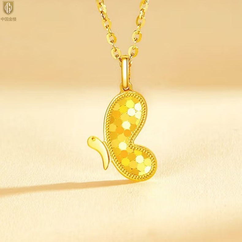 【品名】中国金楼K金龙鳞闪耀翩翩蝴蝶吊坠