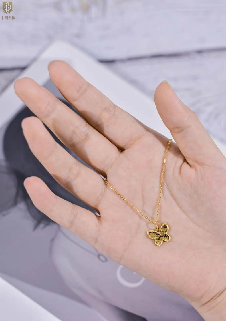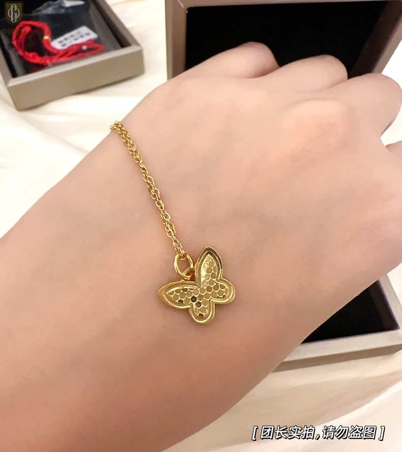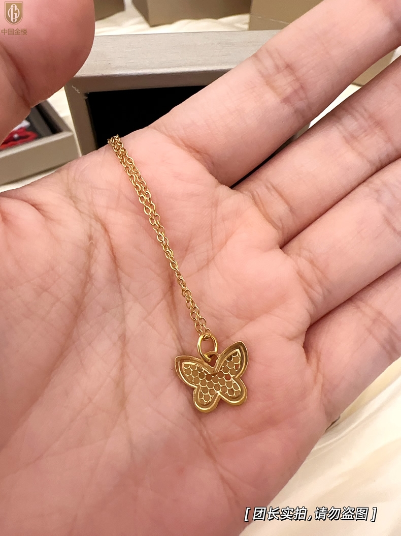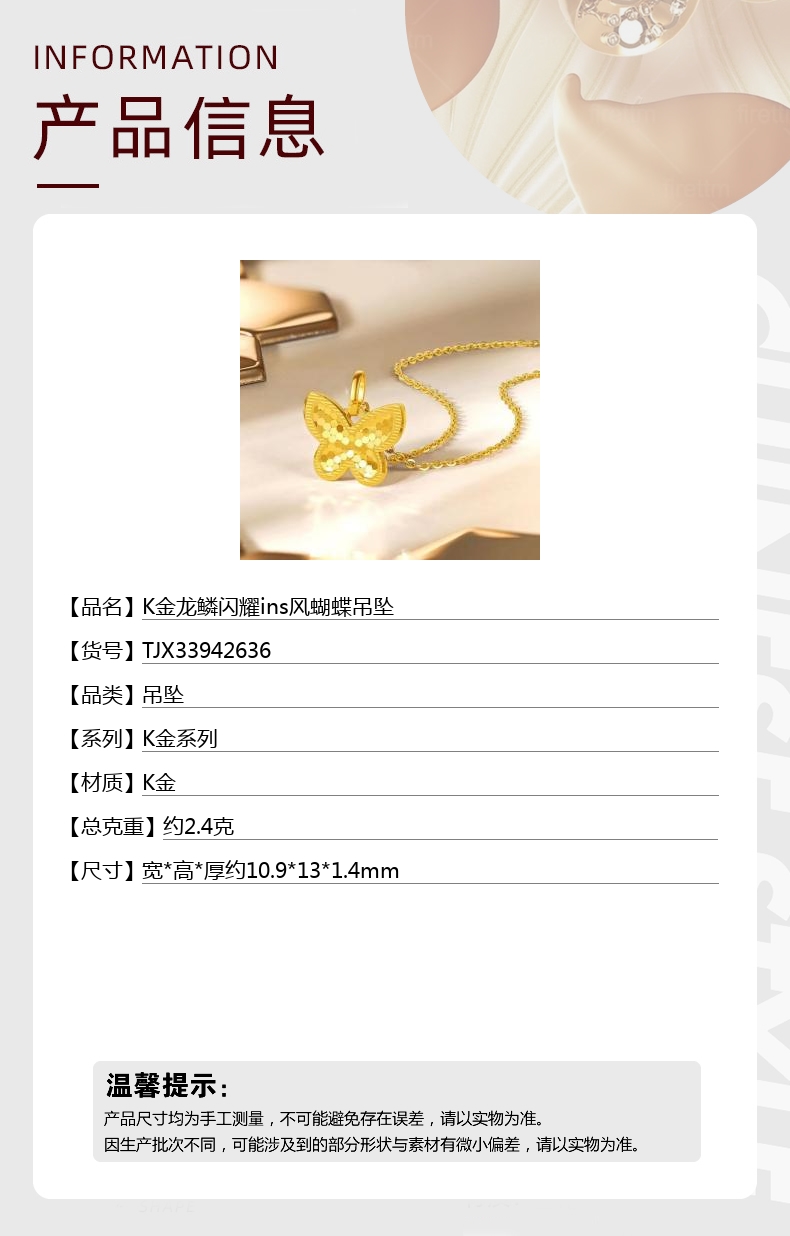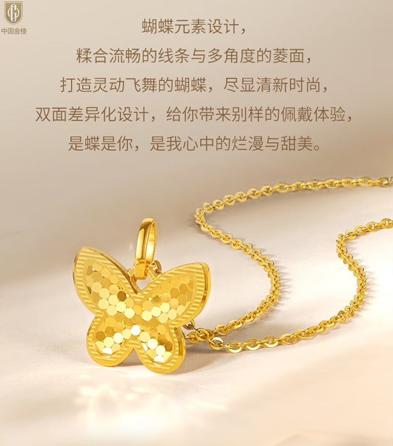 【品名】中国金楼K金龙鳞闪耀ins风蝴蝶吊坠