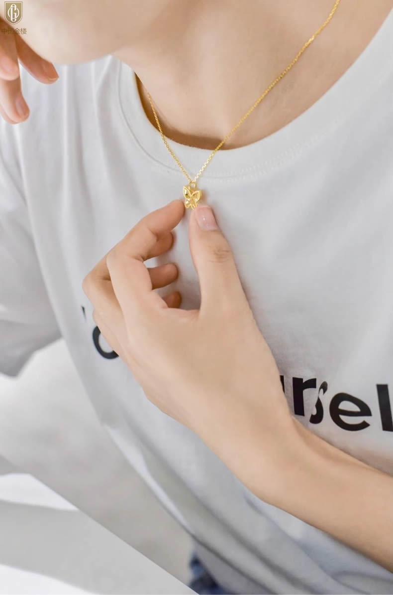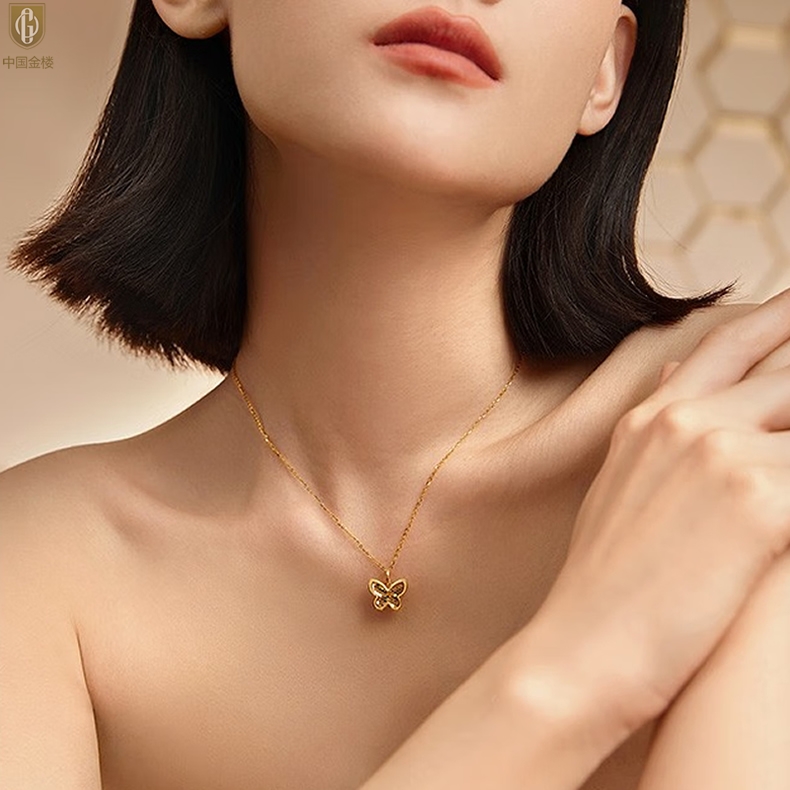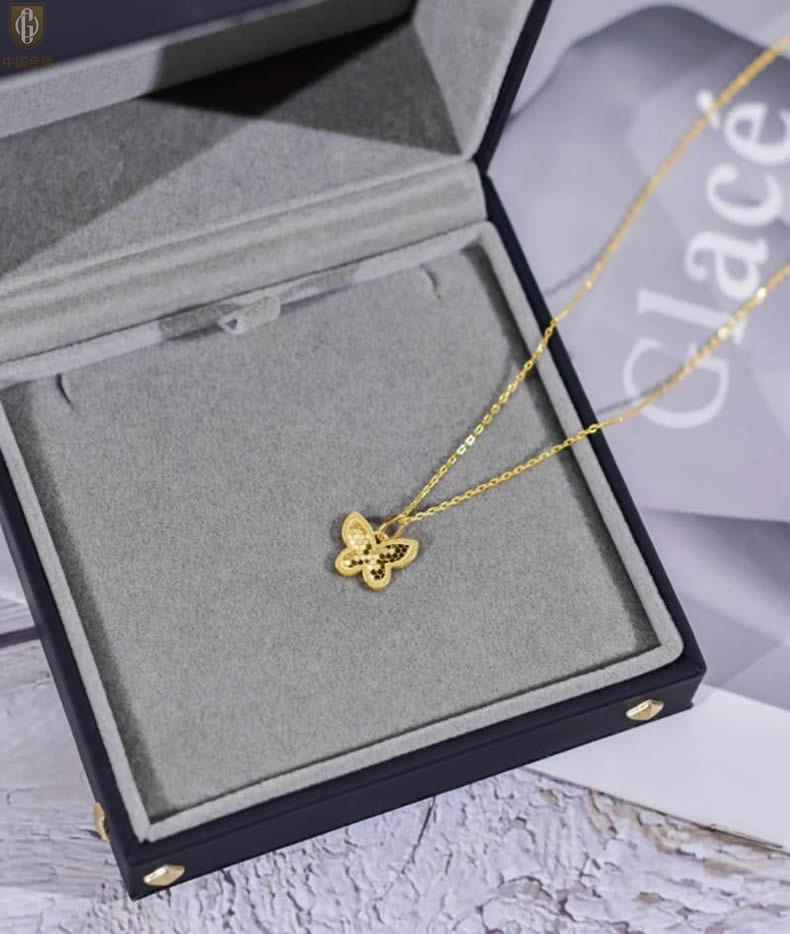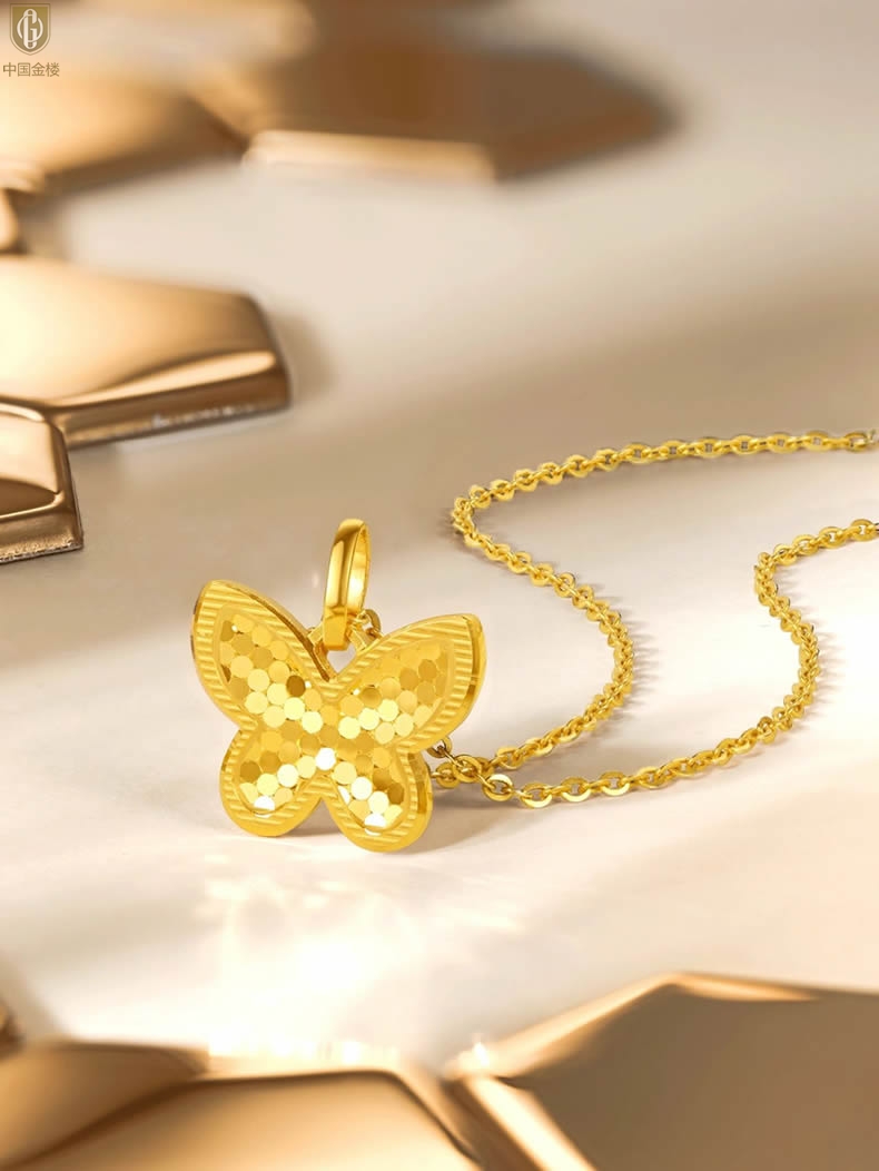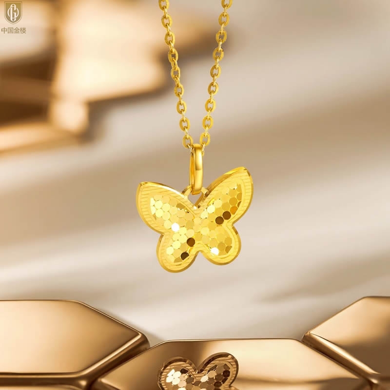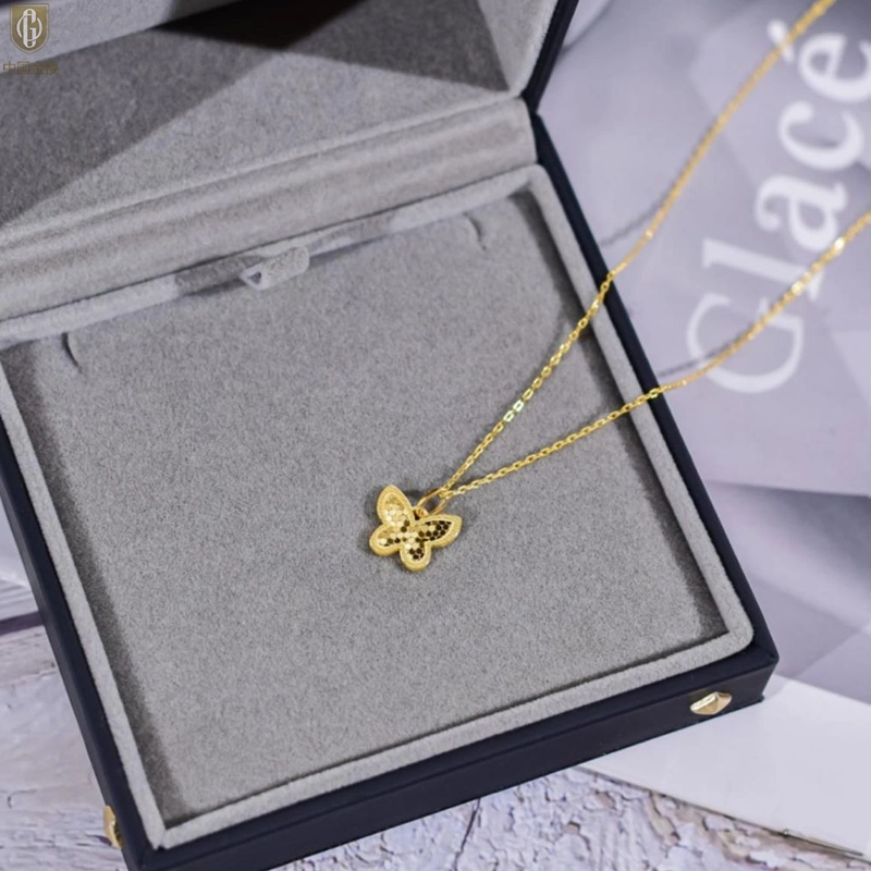【品名】中国金楼K金龙鳞闪耀ins风蝴蝶吊坠