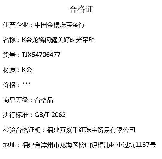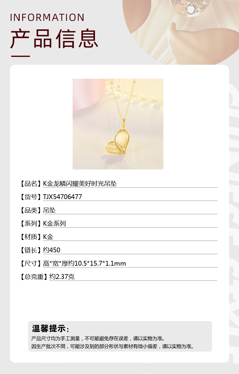 【品名】中国金楼K金龙鳞闪耀美好时光吊坠