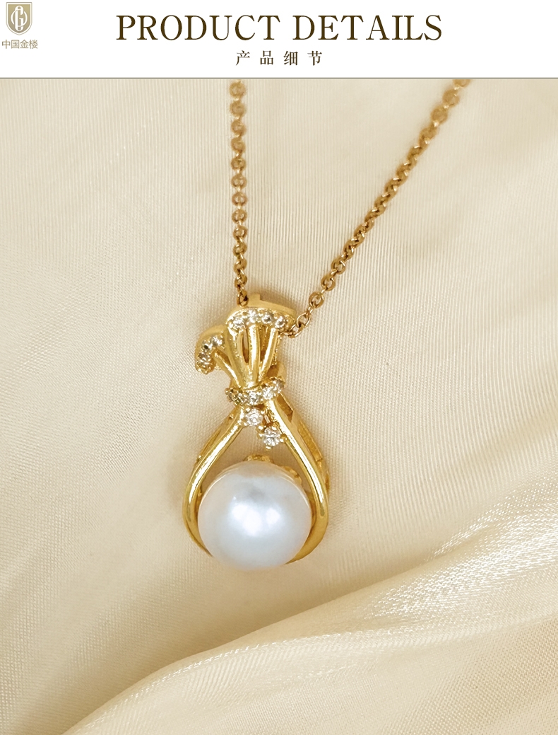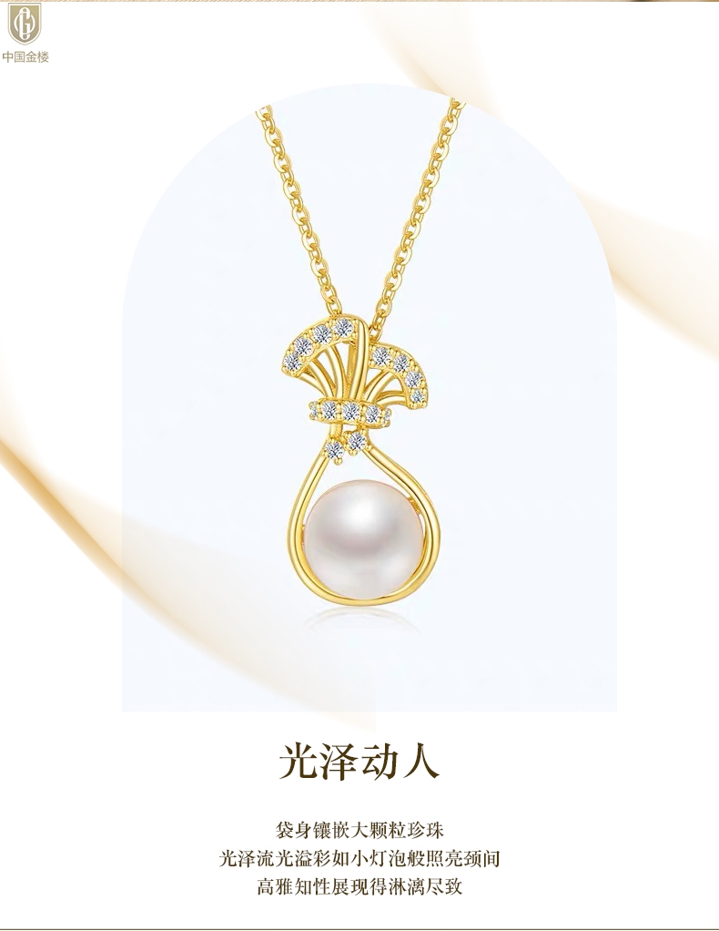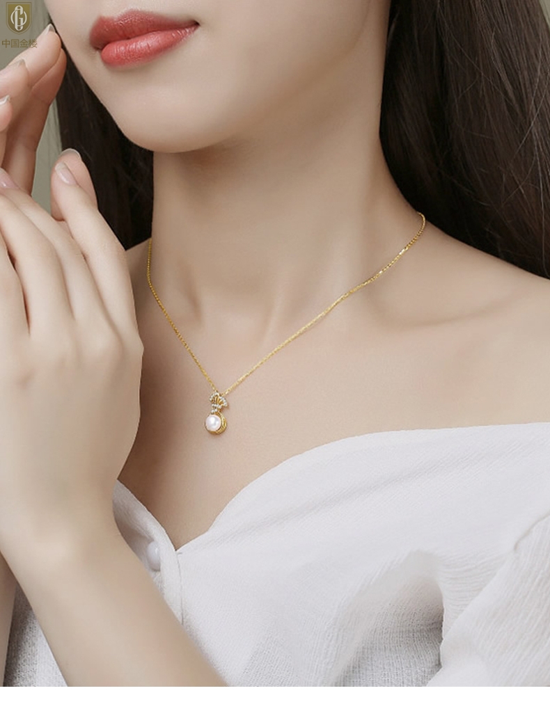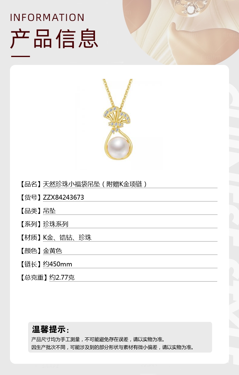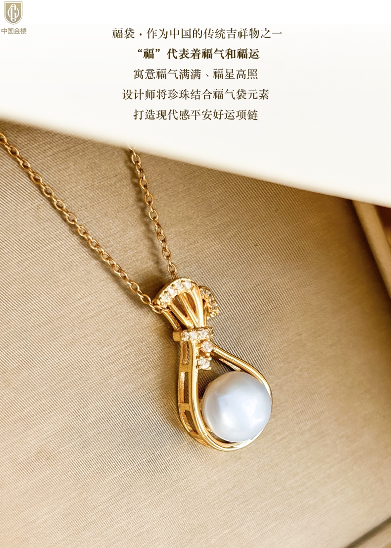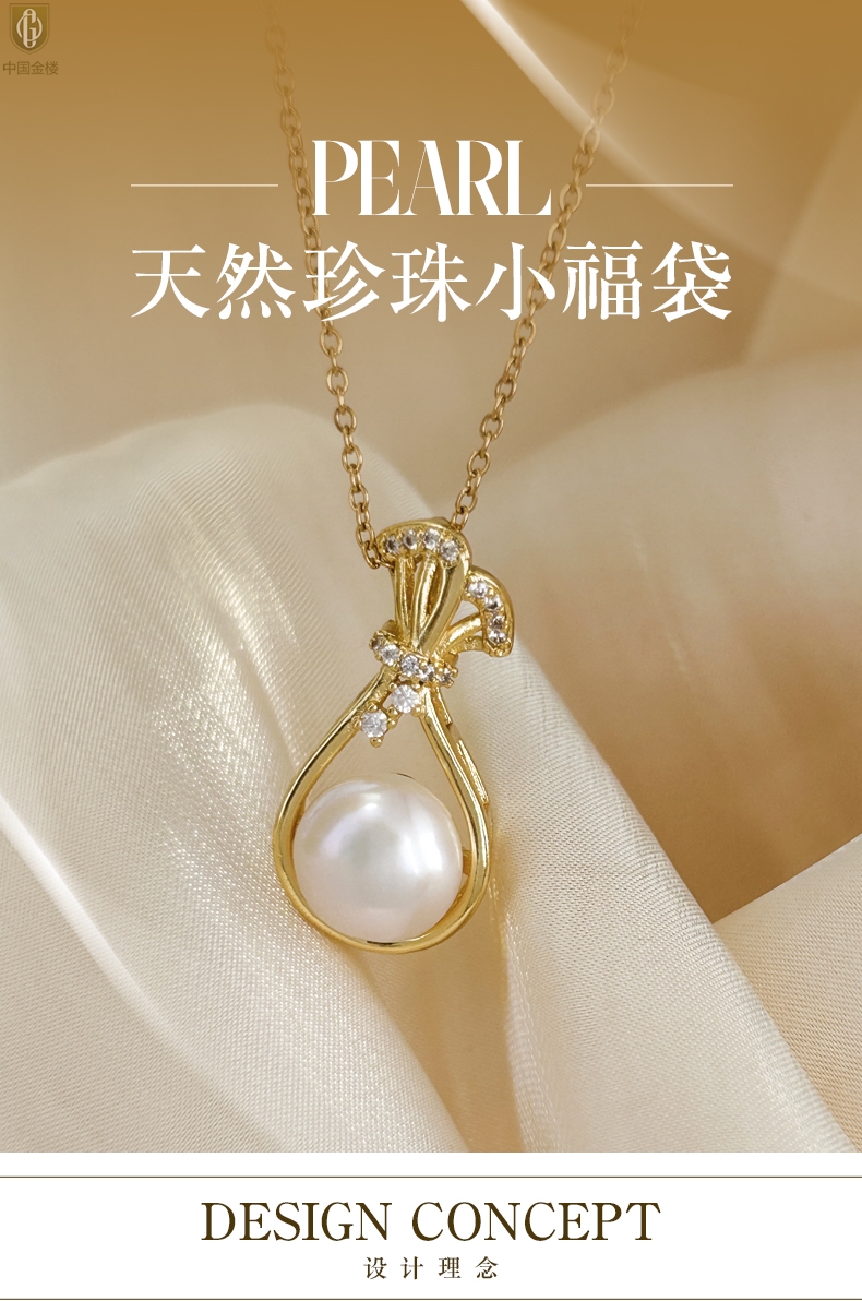 【品名】中国金楼天然珍珠小福袋吊坠(附赠K金项链)