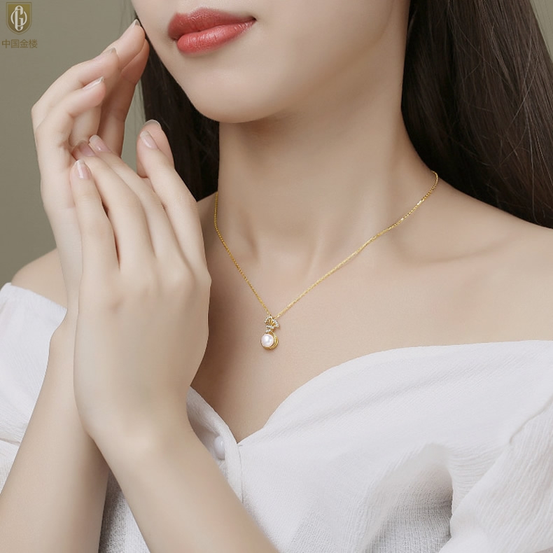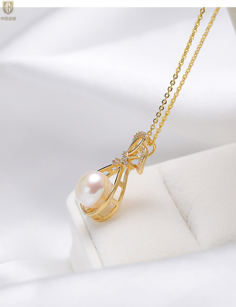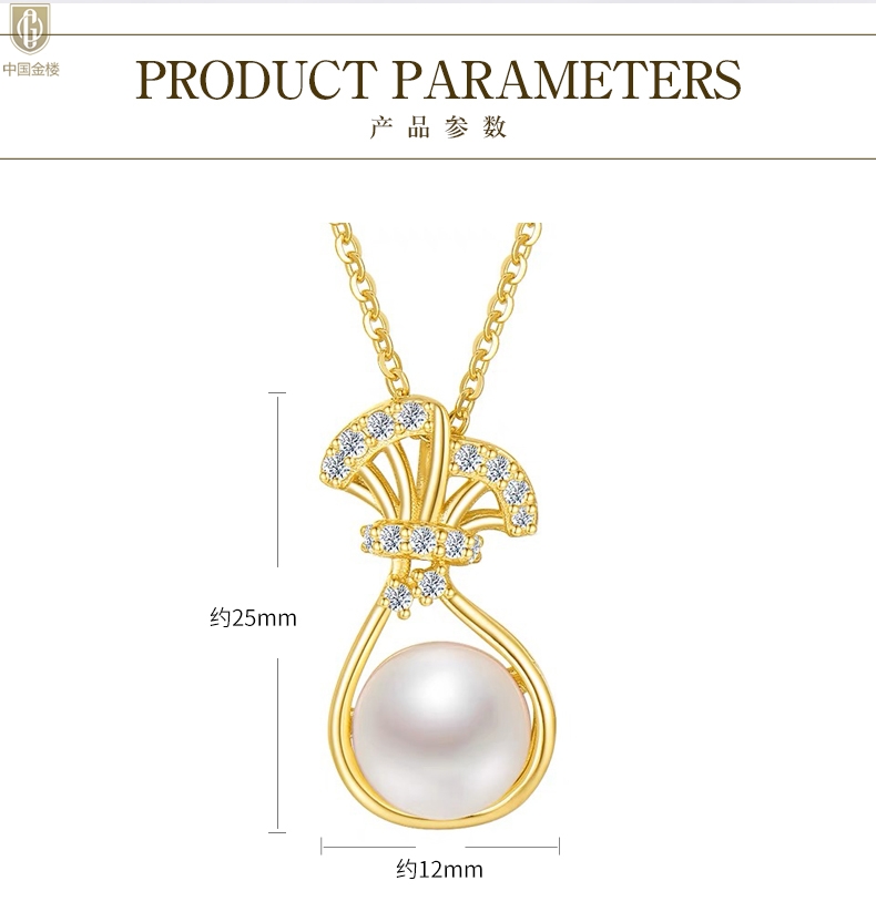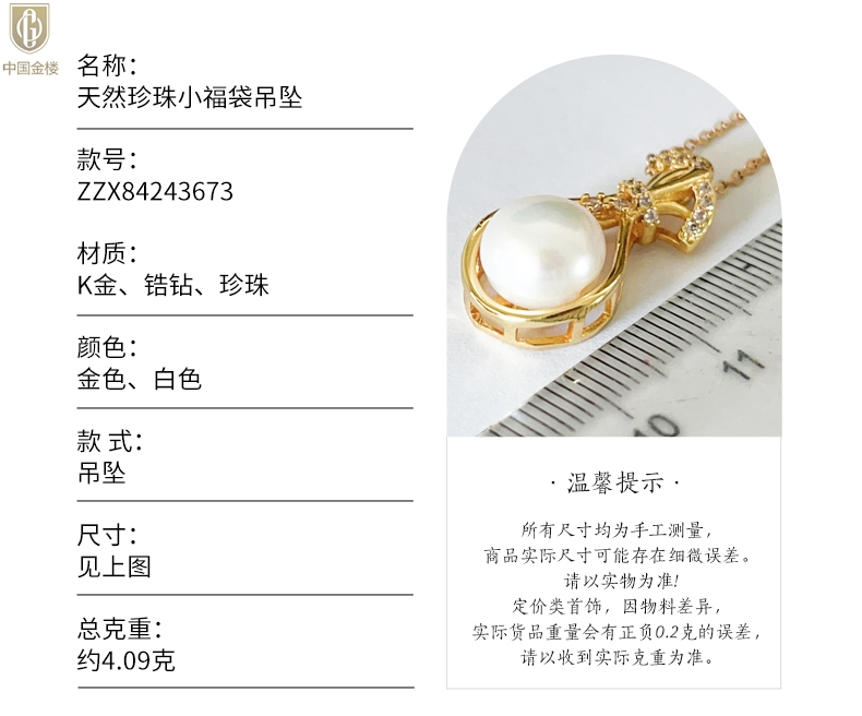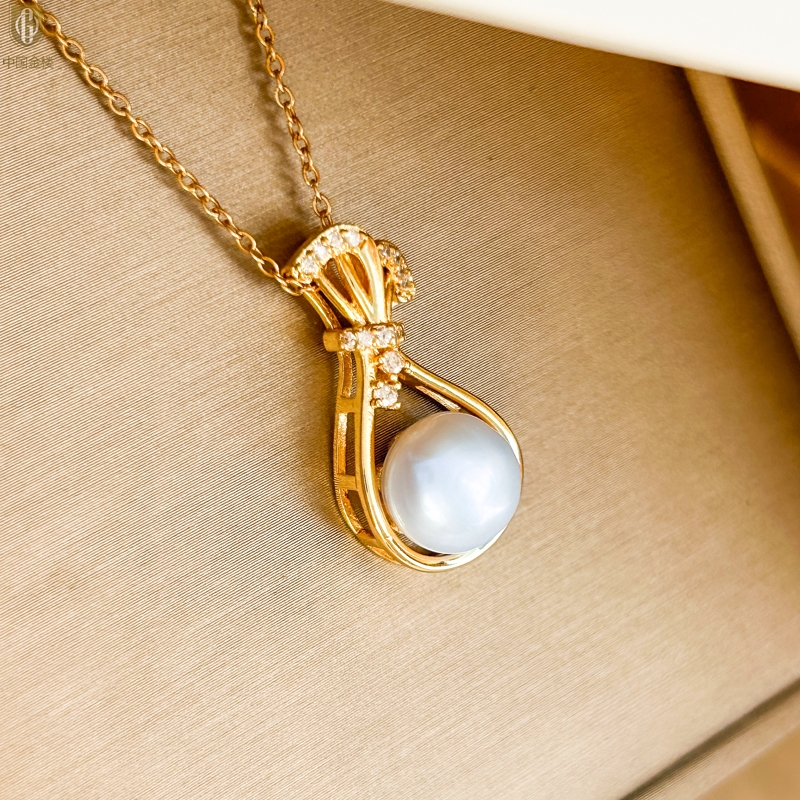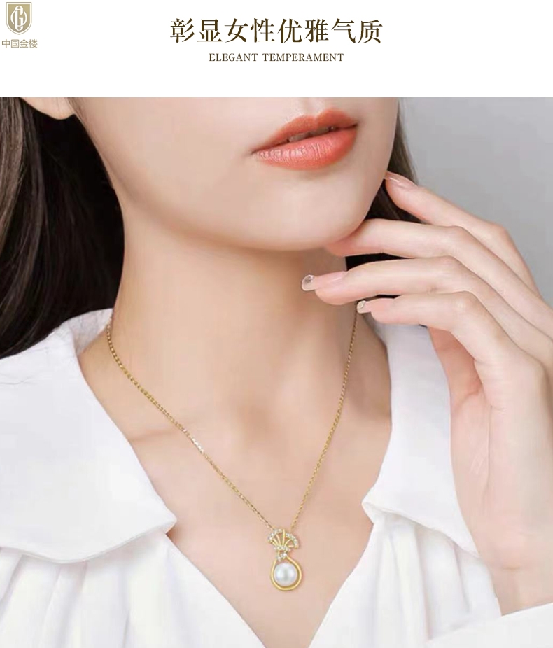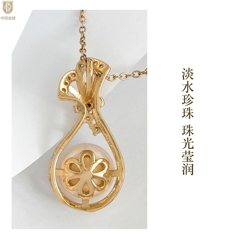 【品名】中国金楼天然珍珠小福袋吊坠(附赠K金项链)