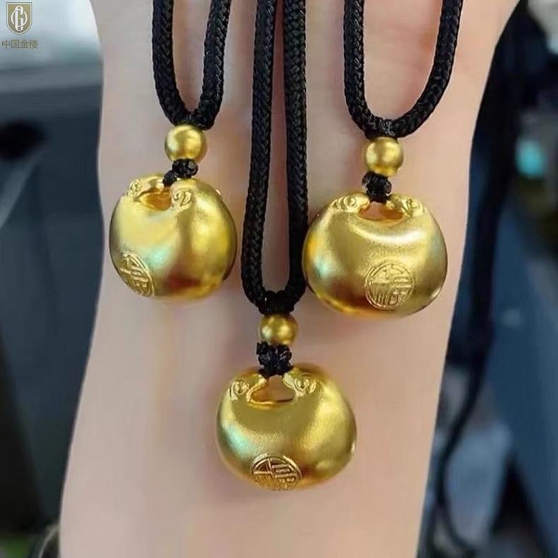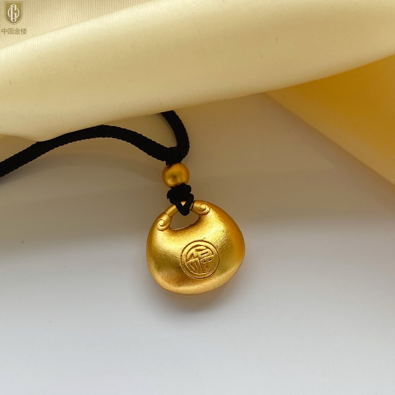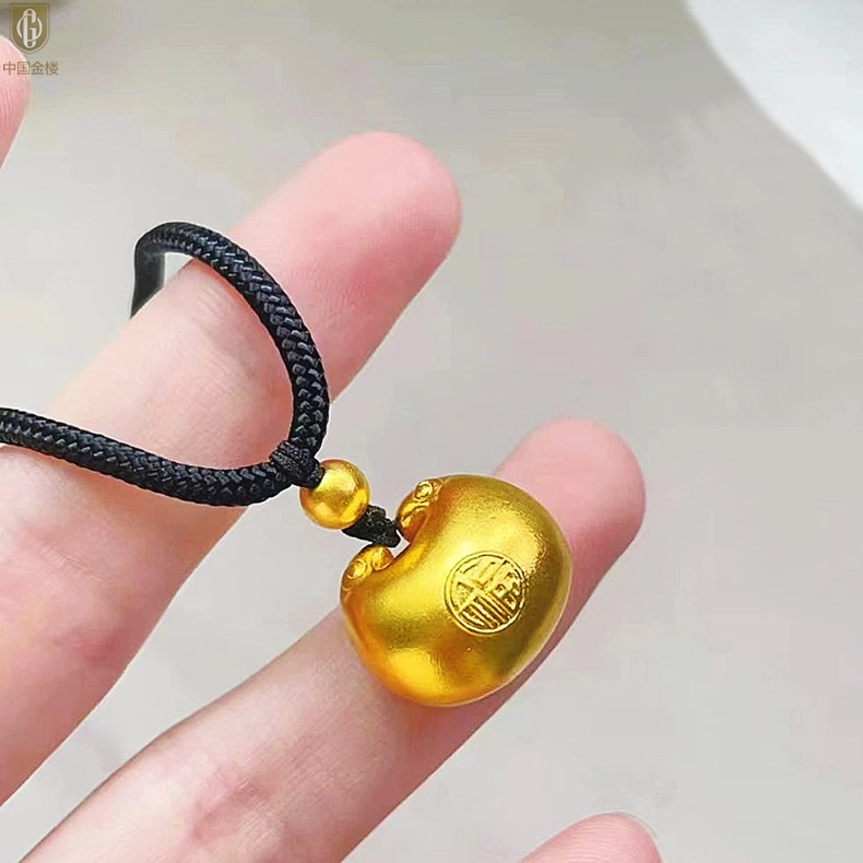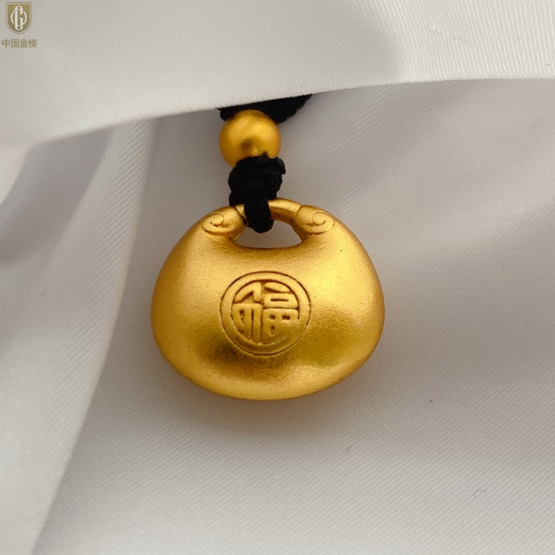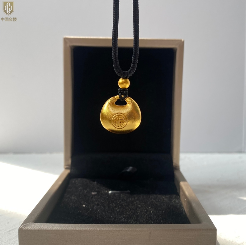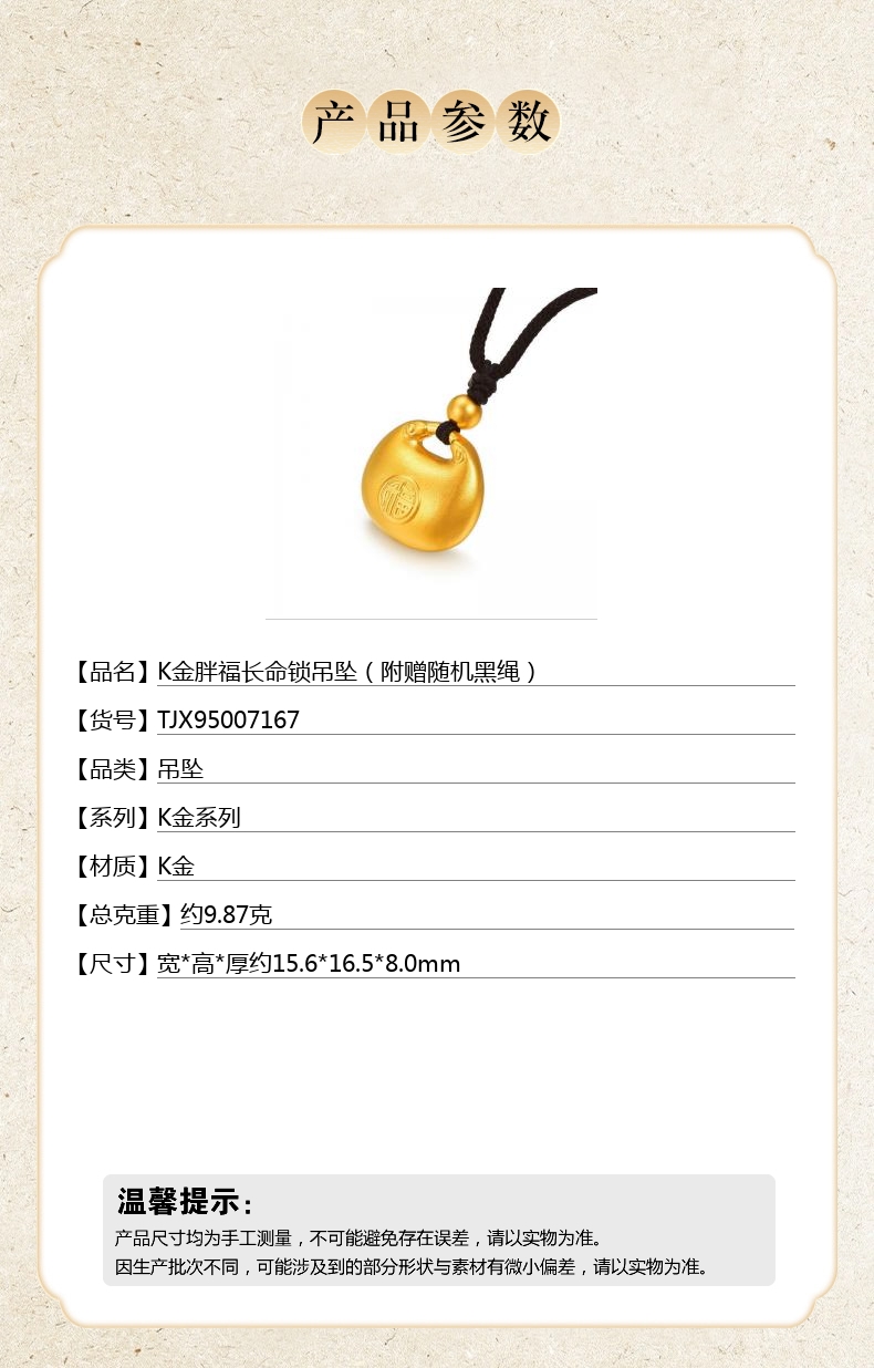 【品名】中国金楼K金胖福长命锁吊坠(附赠随机黑绳)