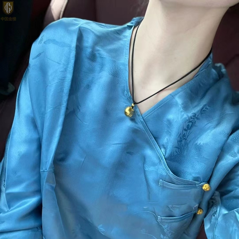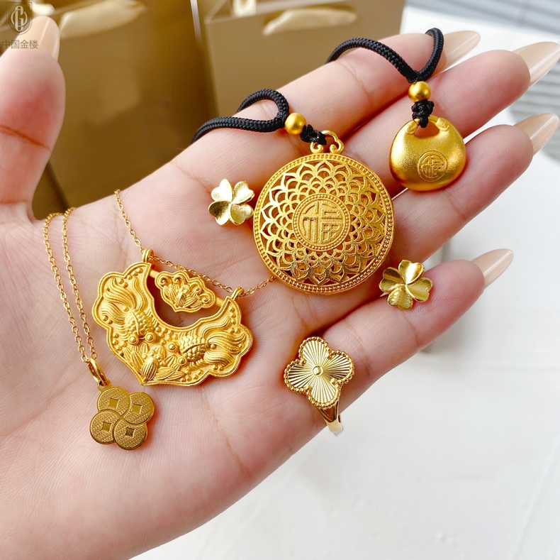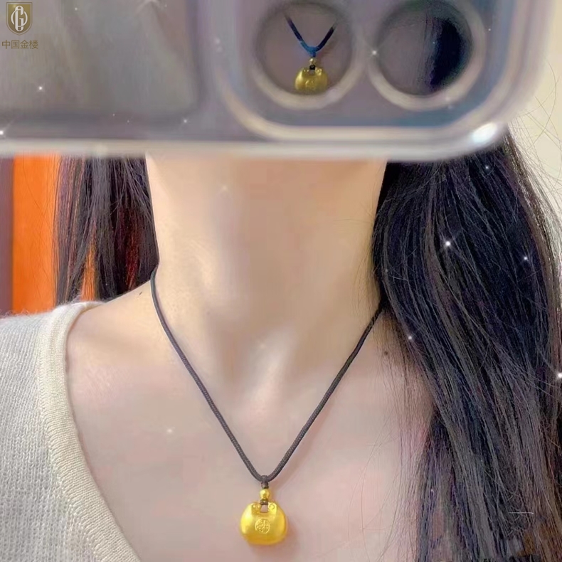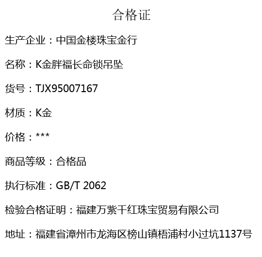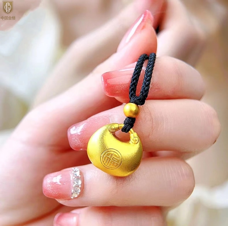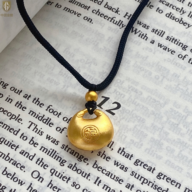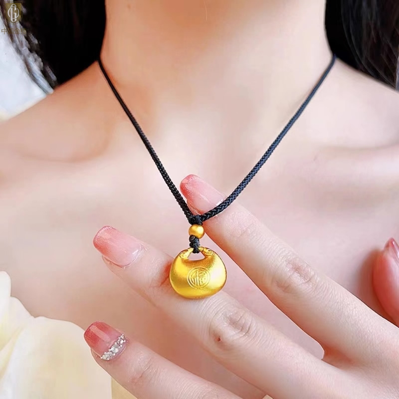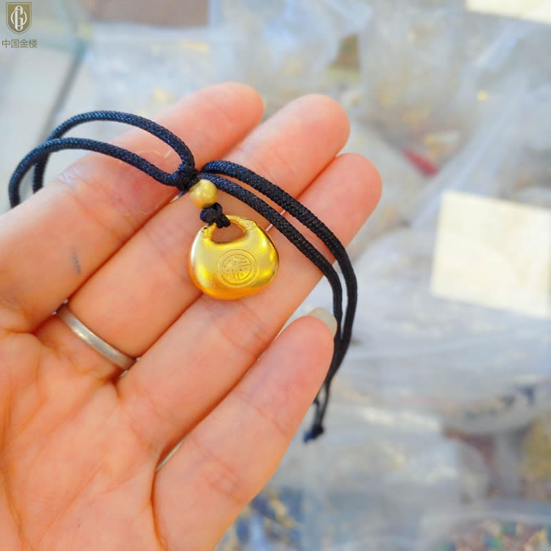 【品名】中国金楼K金胖福长命锁吊坠(附赠随机黑绳)