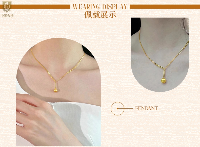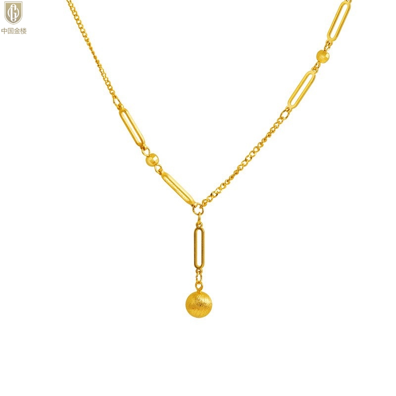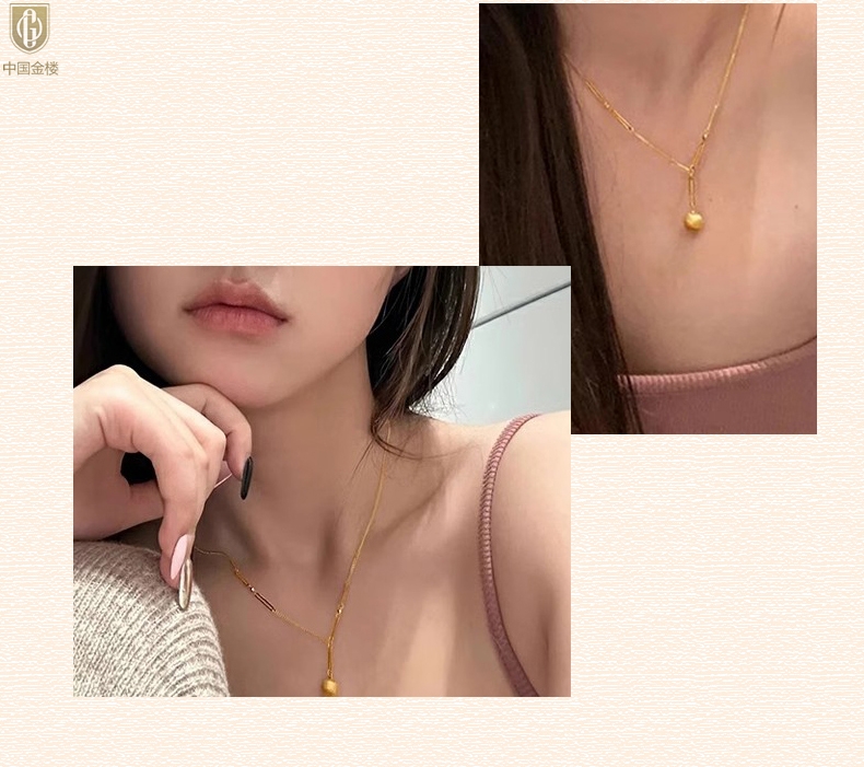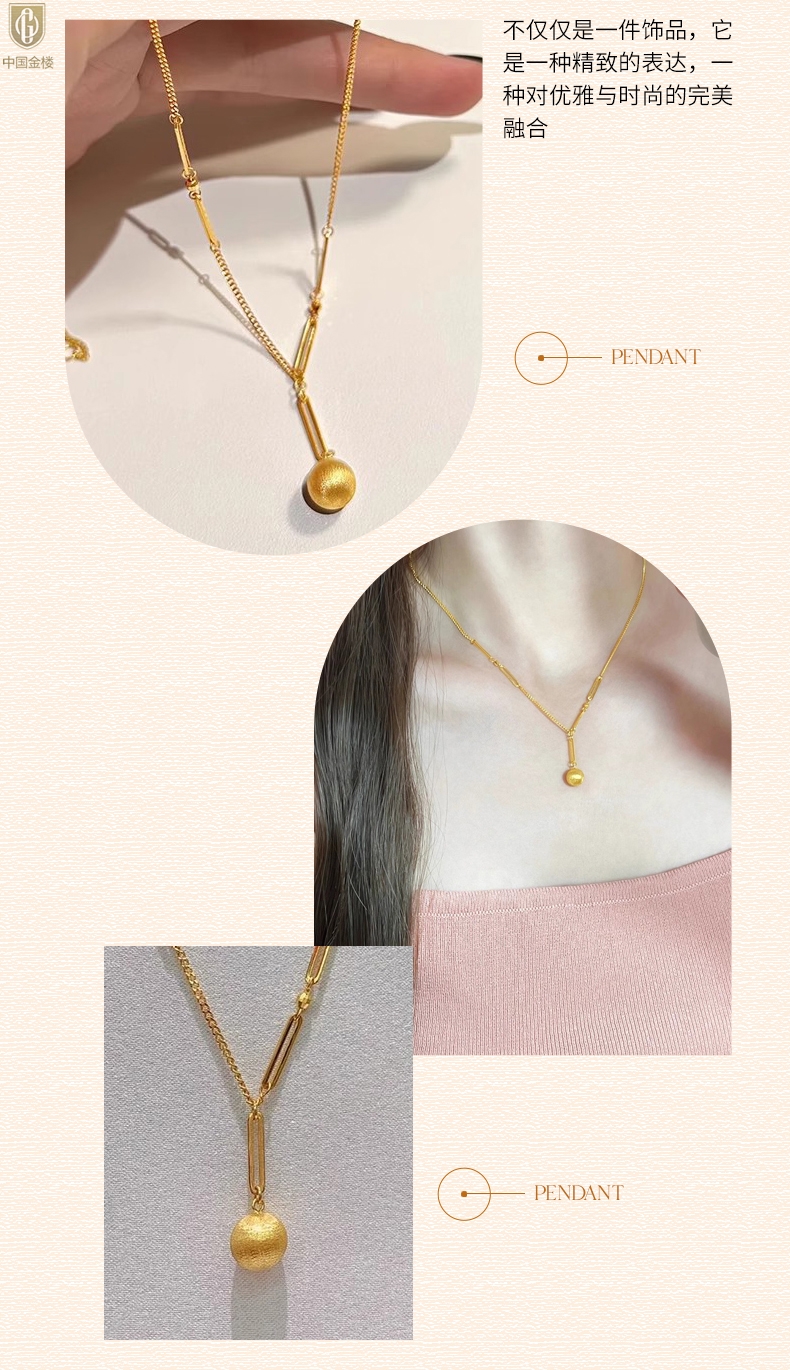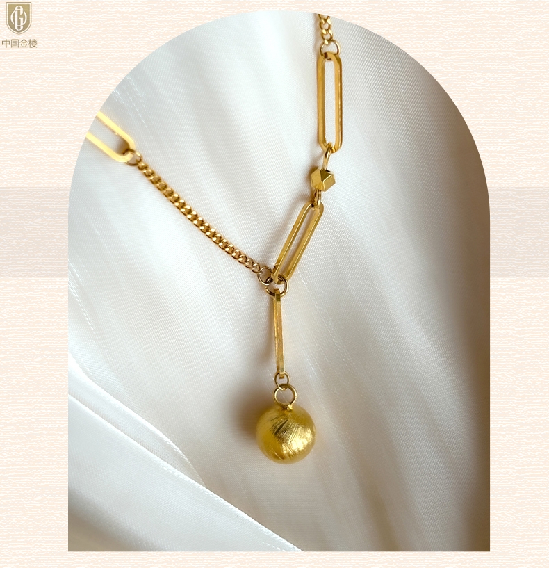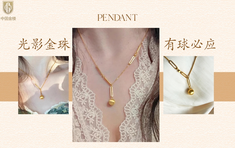 【品名】中国金楼K金光影金珠有球必应项链