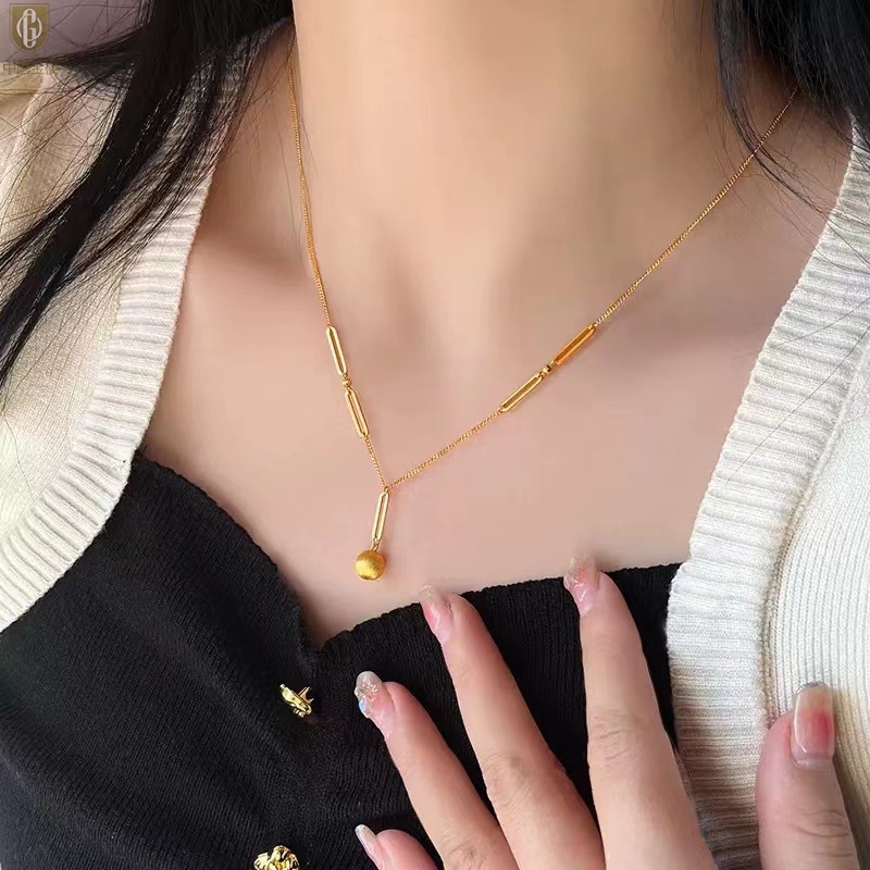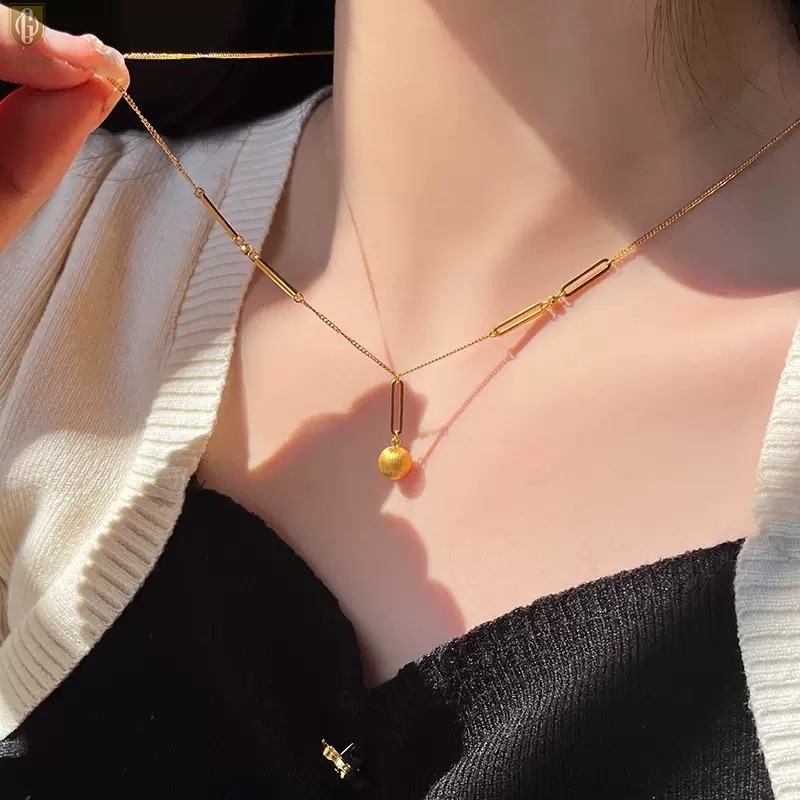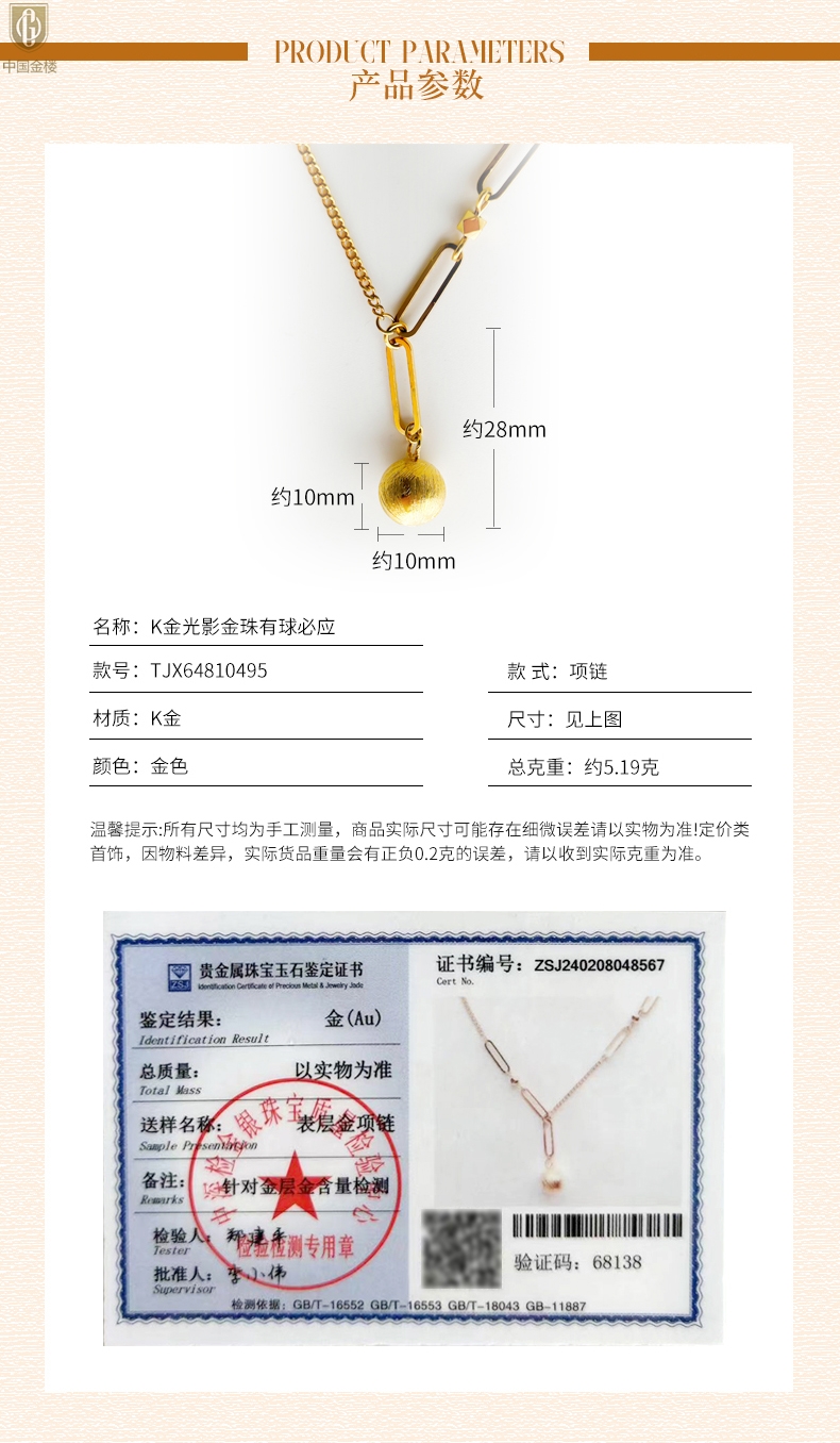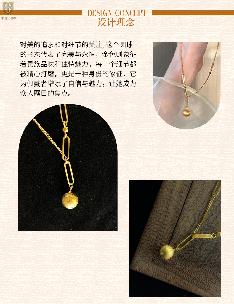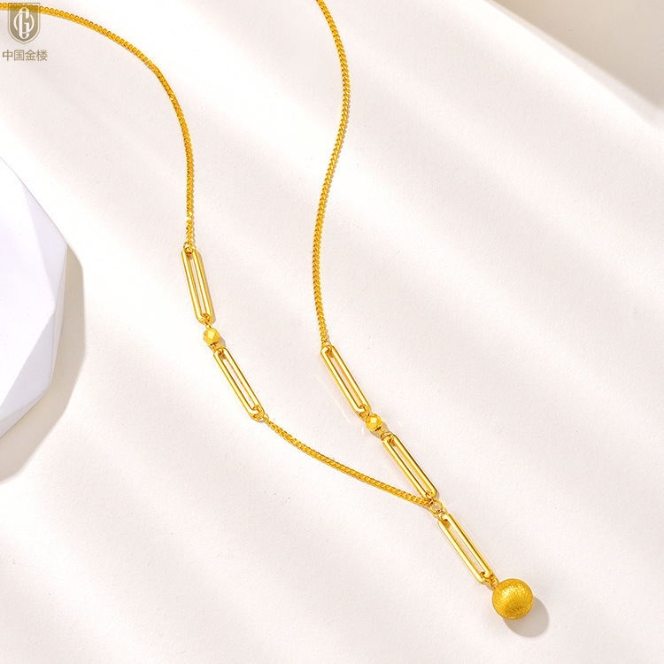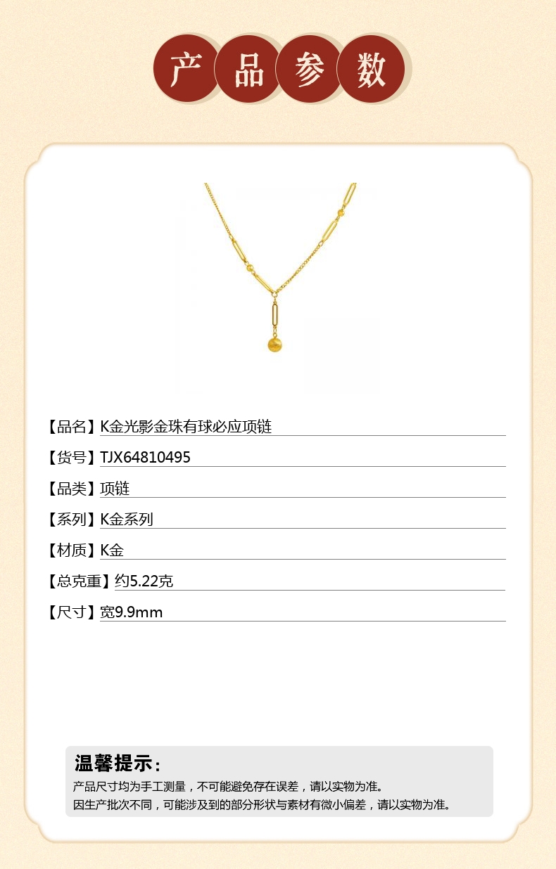 【品名】中国金楼K金光影金珠有球必应项链