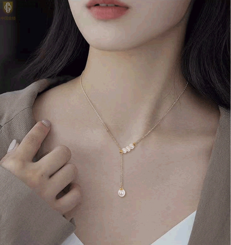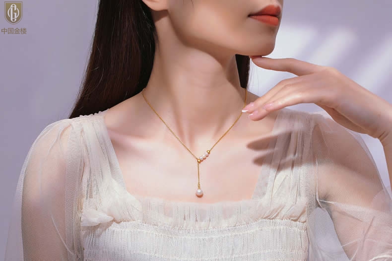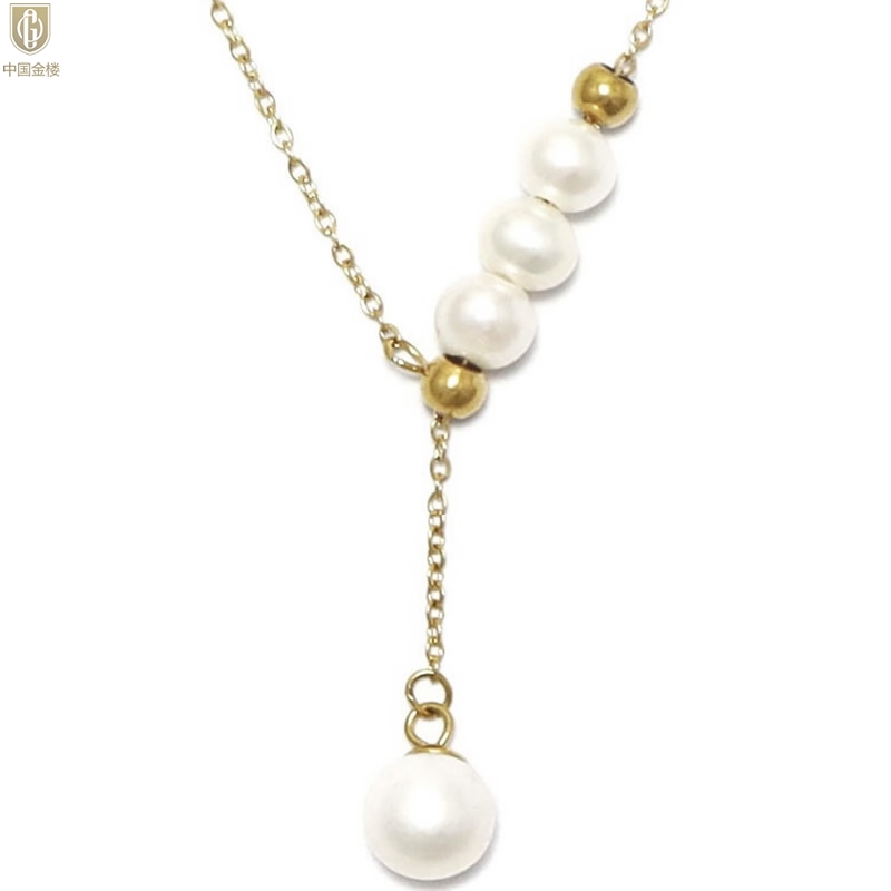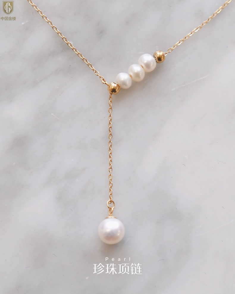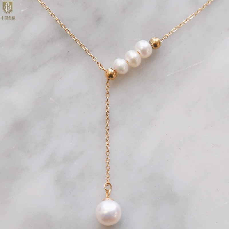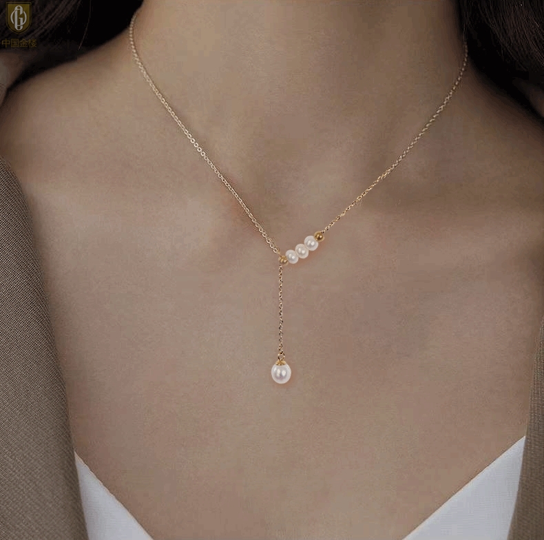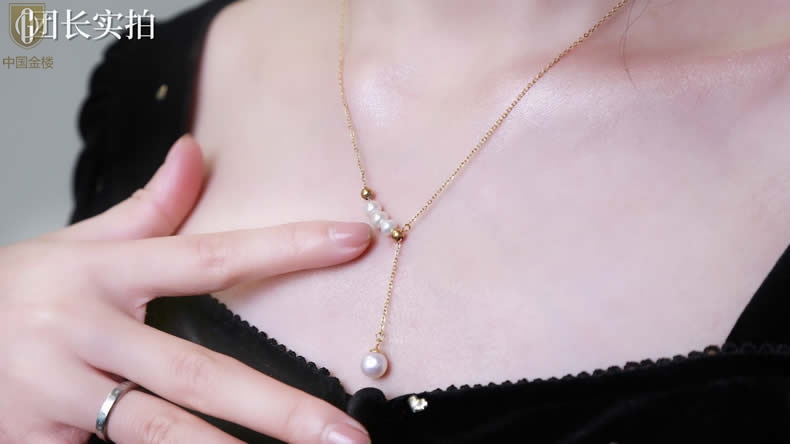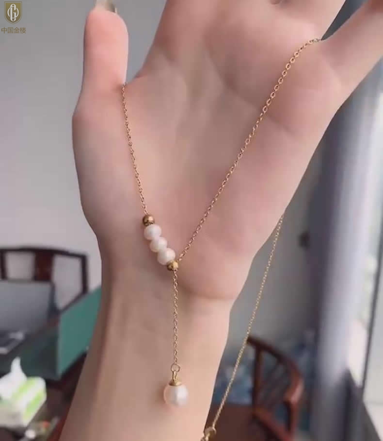 【品名】中国金楼Y字天鹅颈天然珍珠转运珠项链