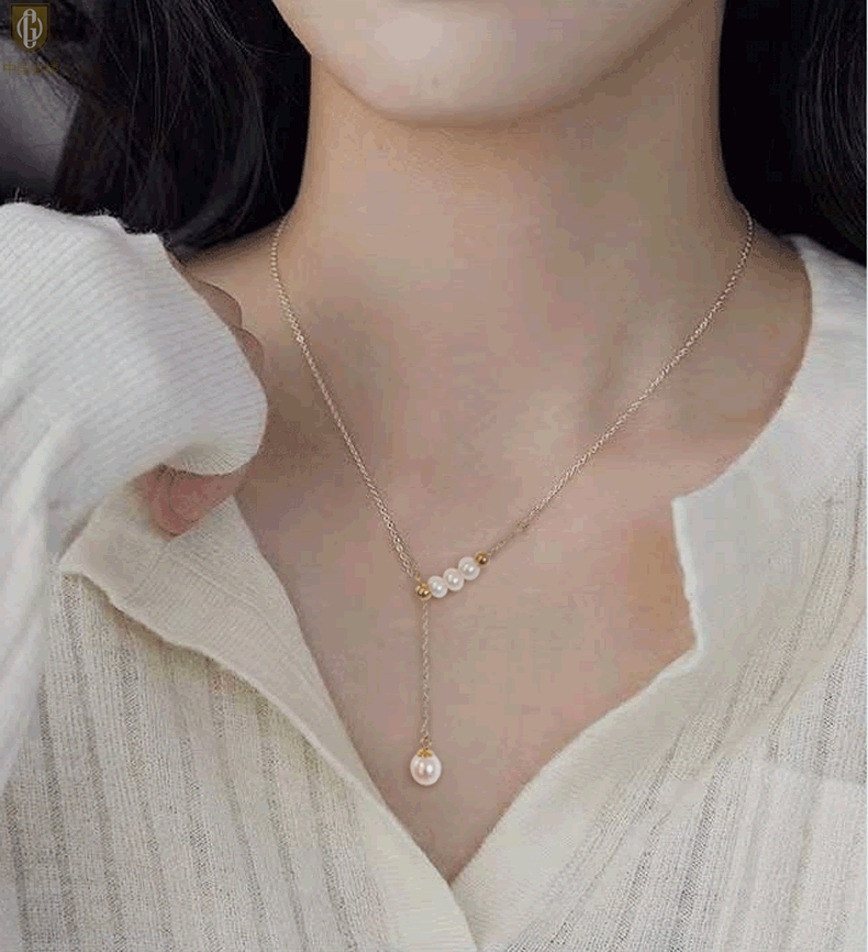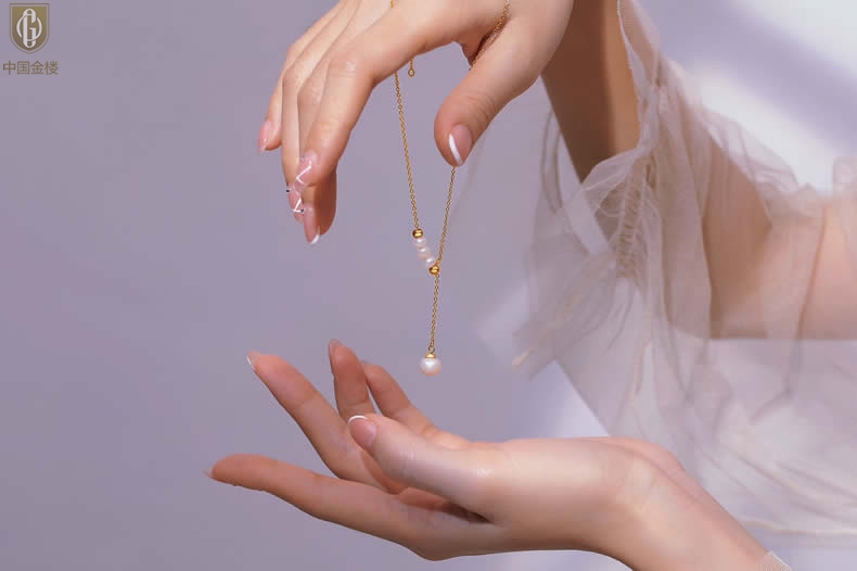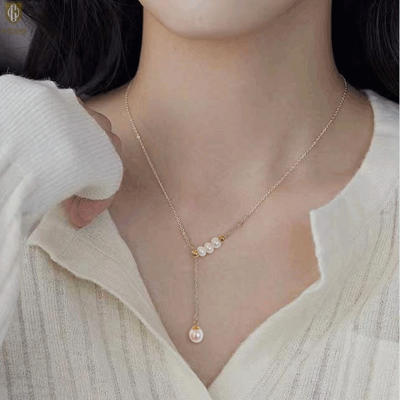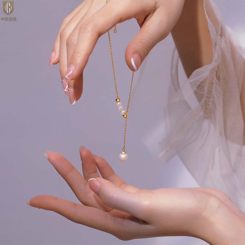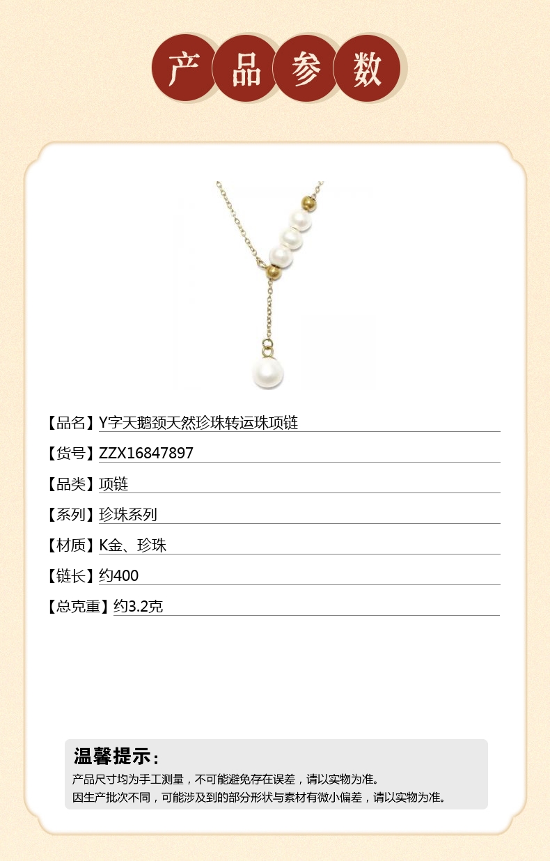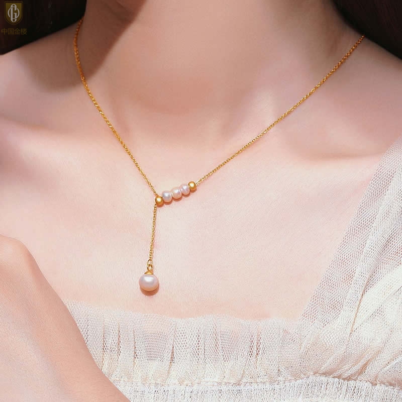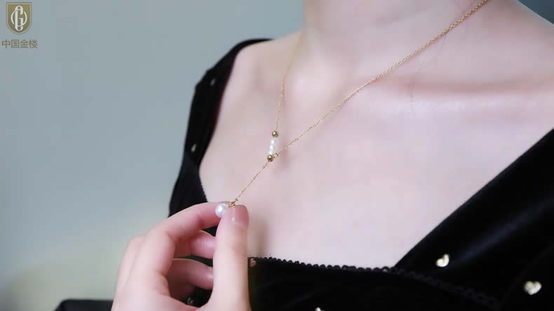 【品名】中国金楼Y字天鹅颈天然珍珠转运珠项链