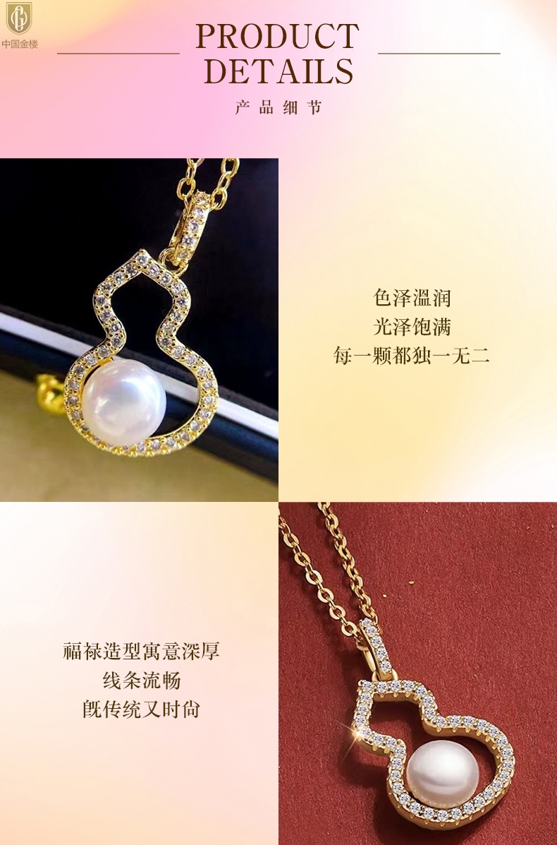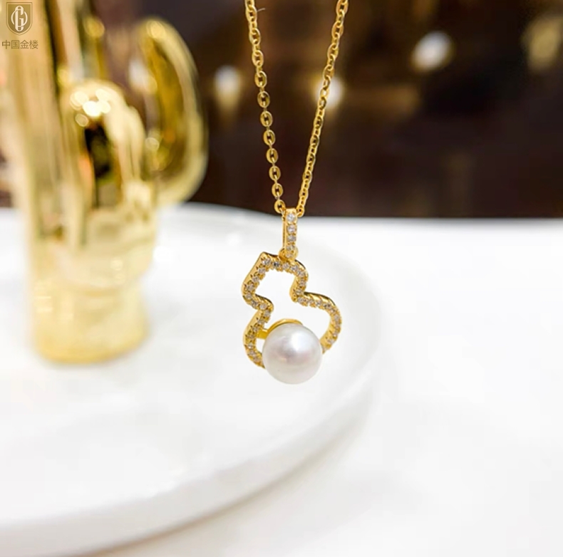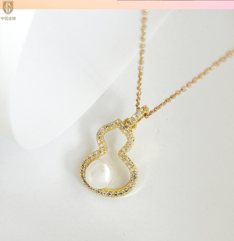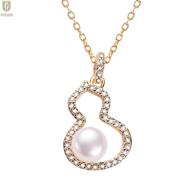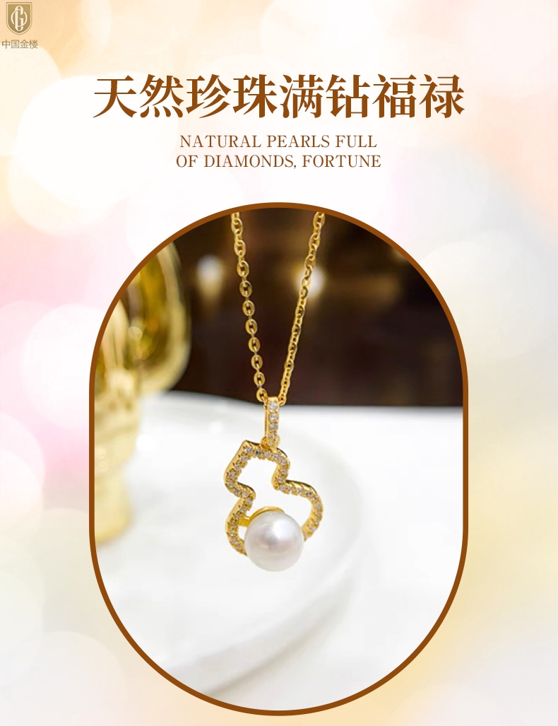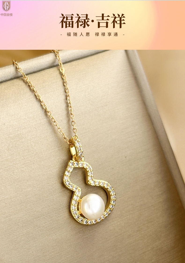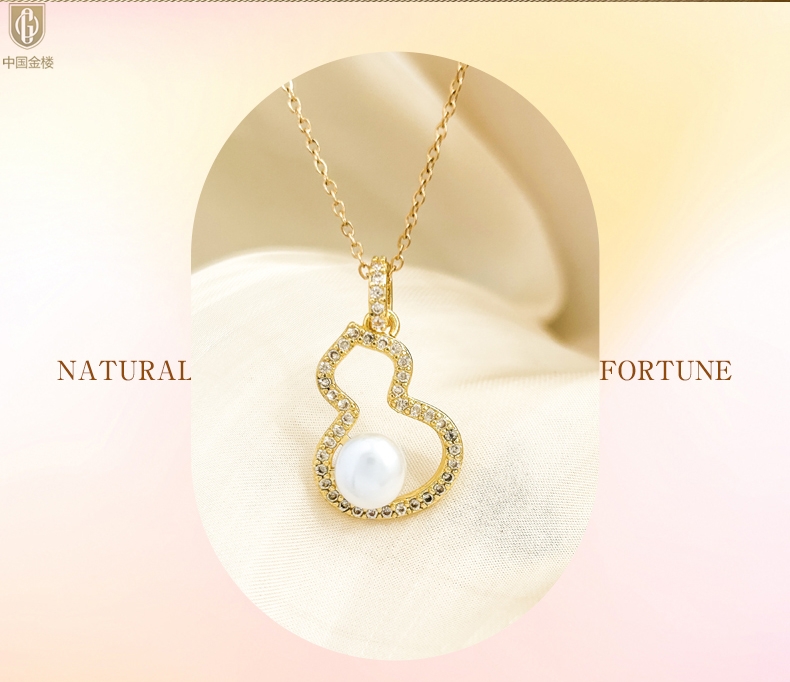 【品名】中国金楼天然珍珠满钻福禄吊坠(附赠K金项链)