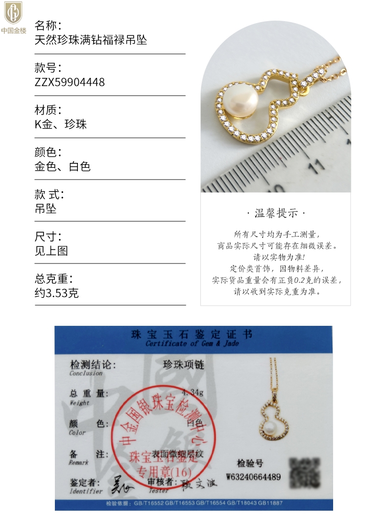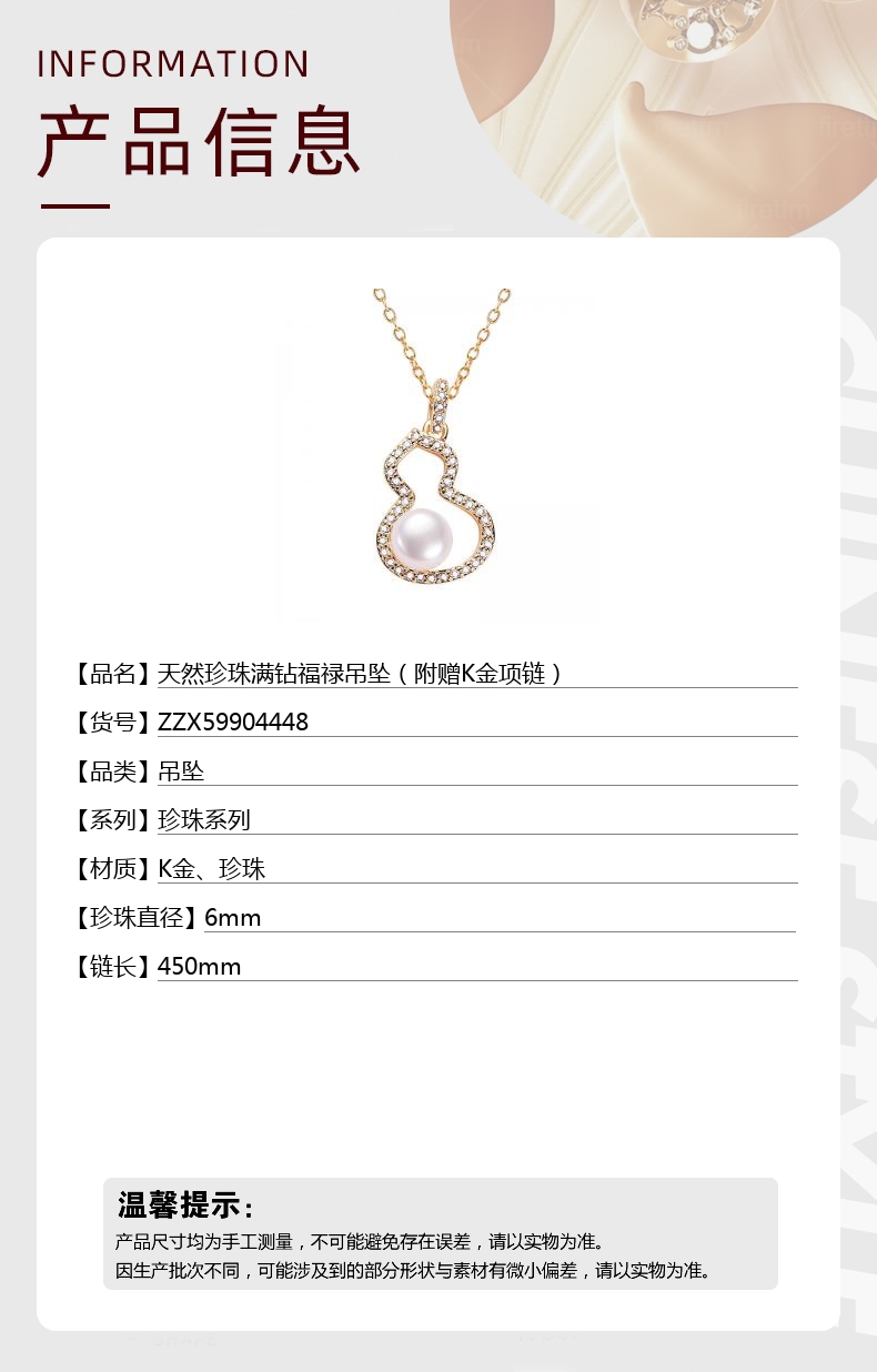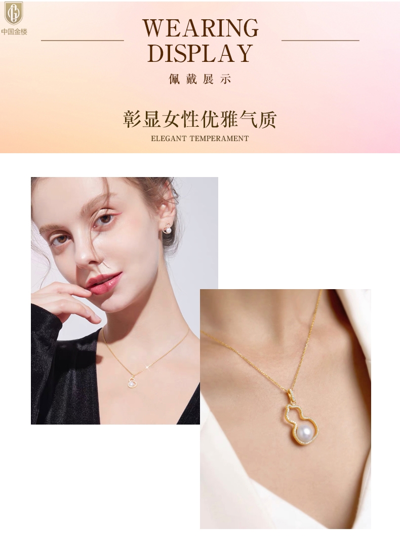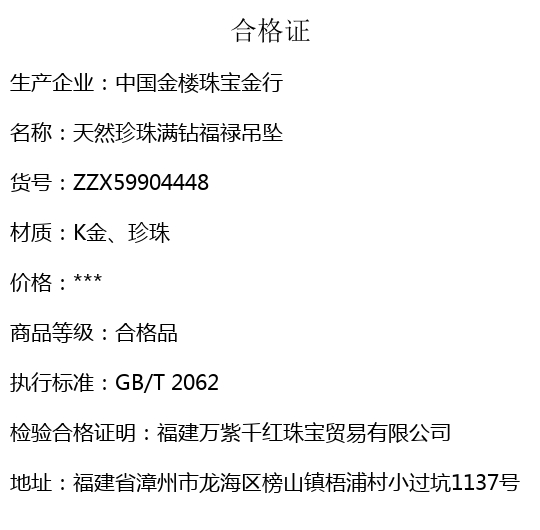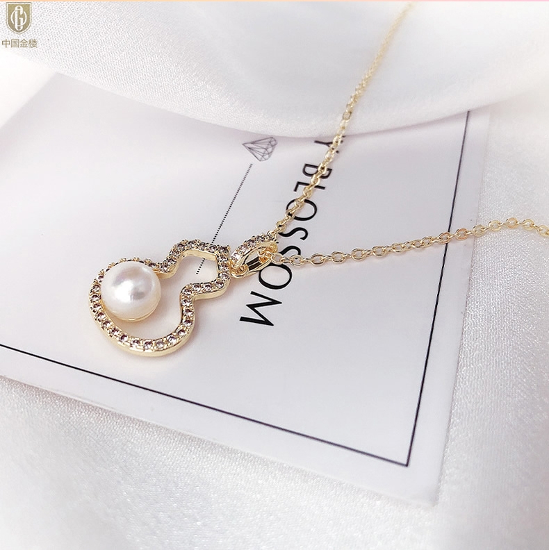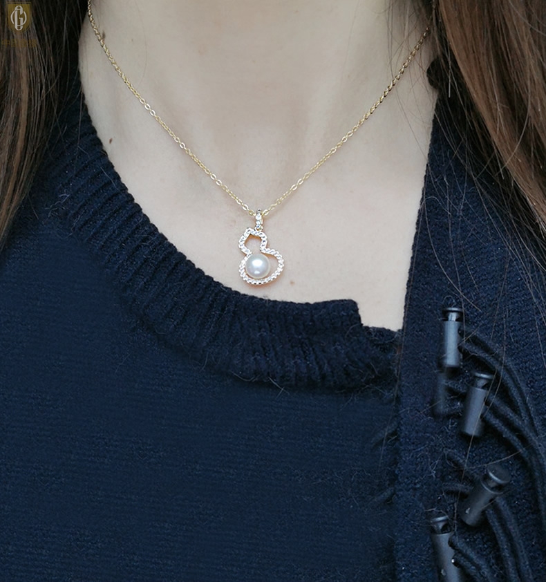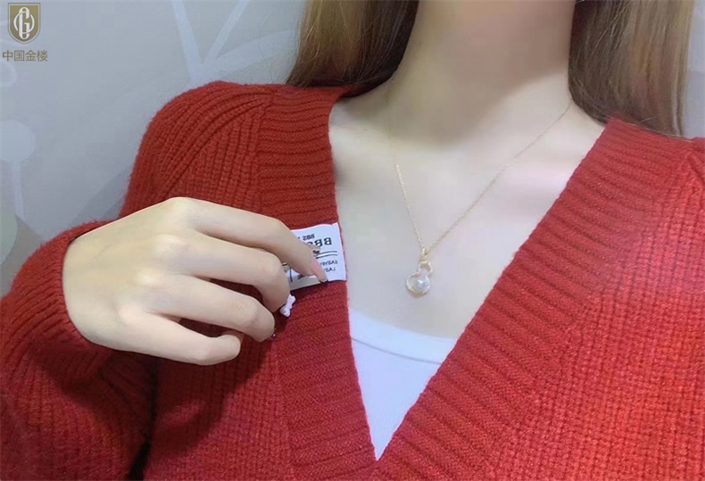 【品名】中国金楼天然珍珠满钻福禄吊坠(附赠K金项链)