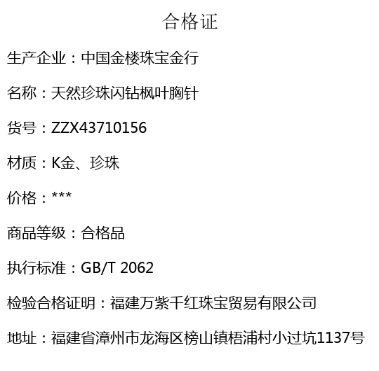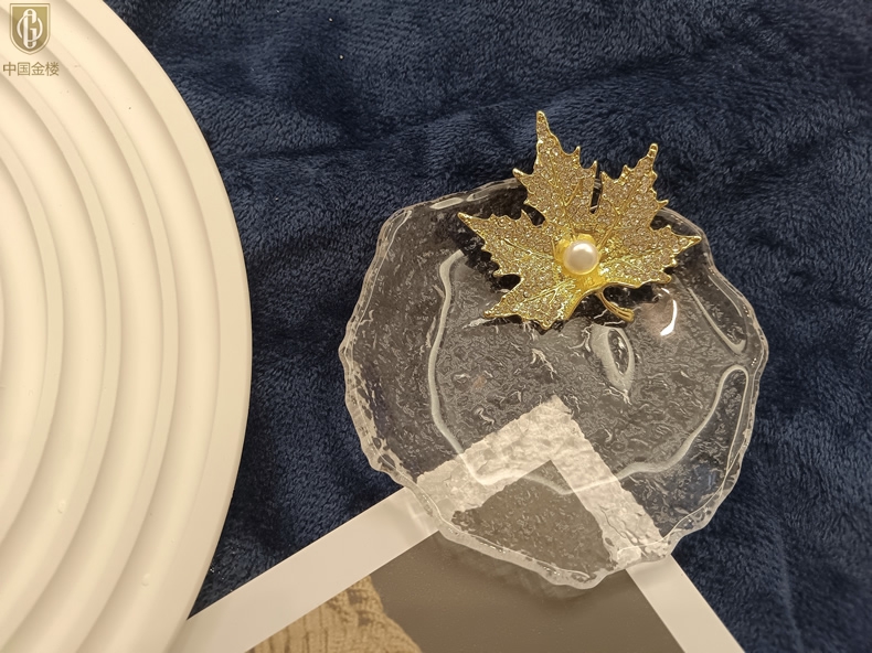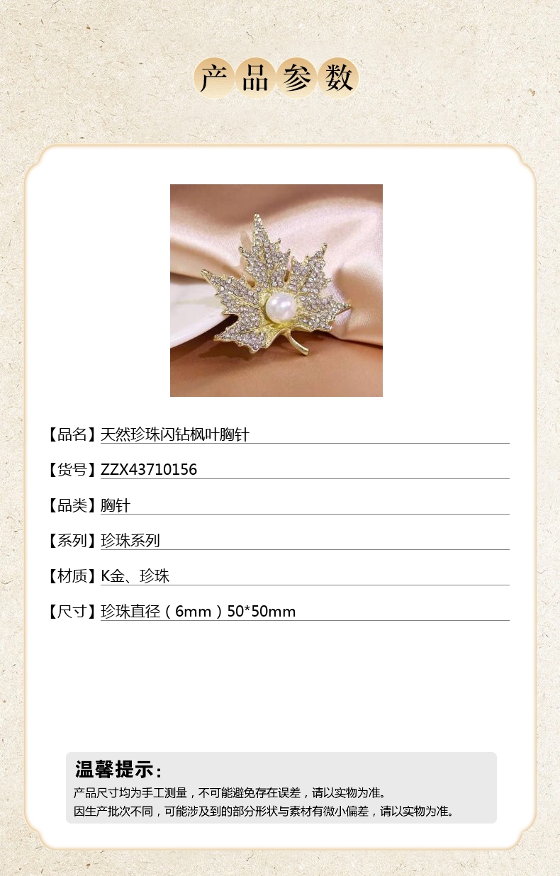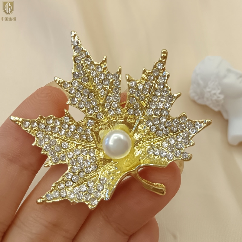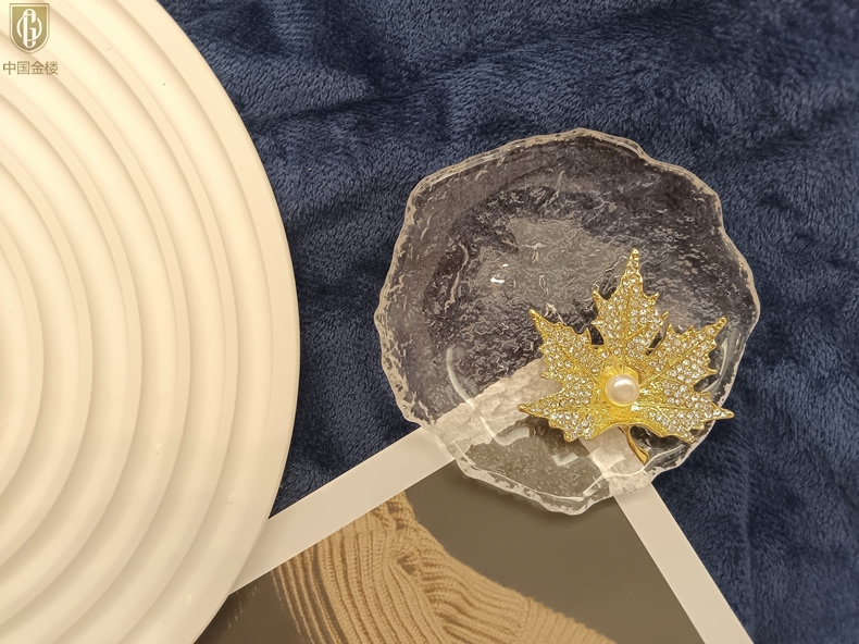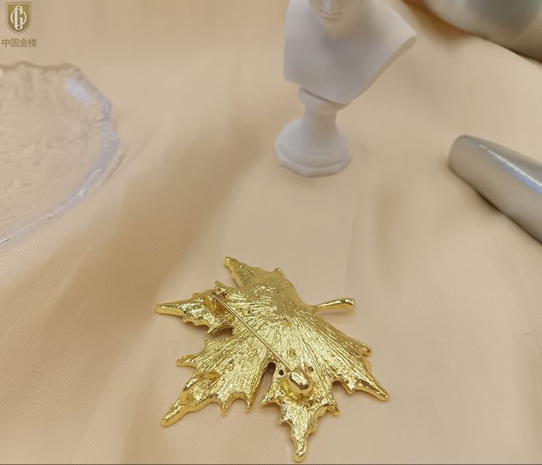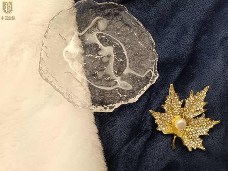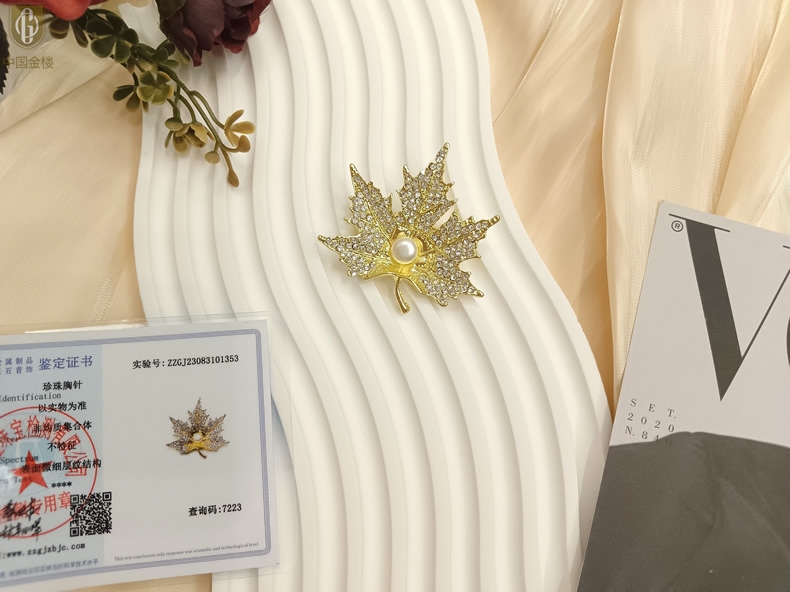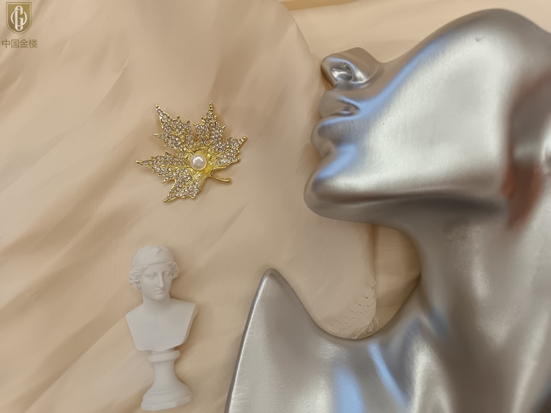 【品名】中国金楼天然珍珠闪钻枫叶胸针