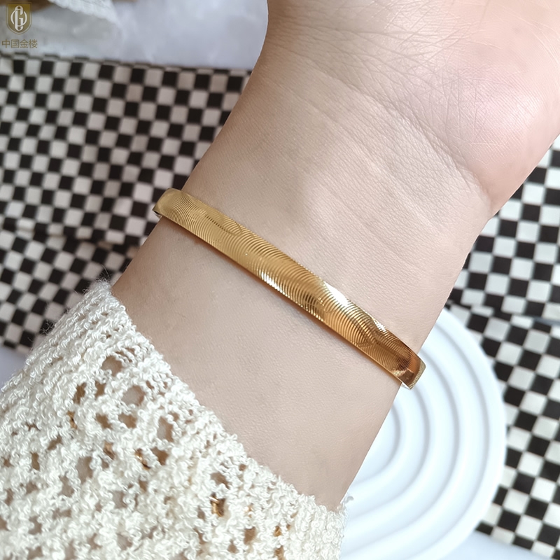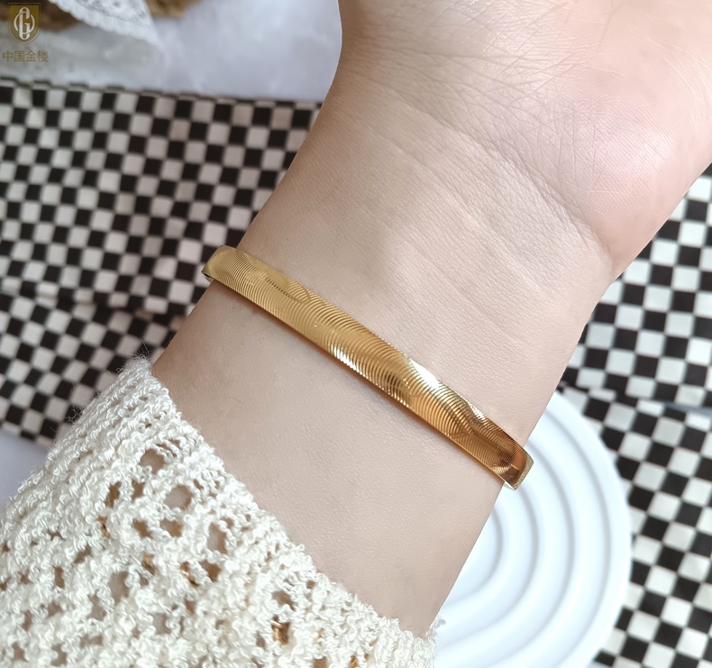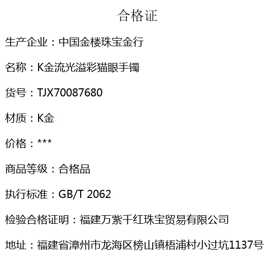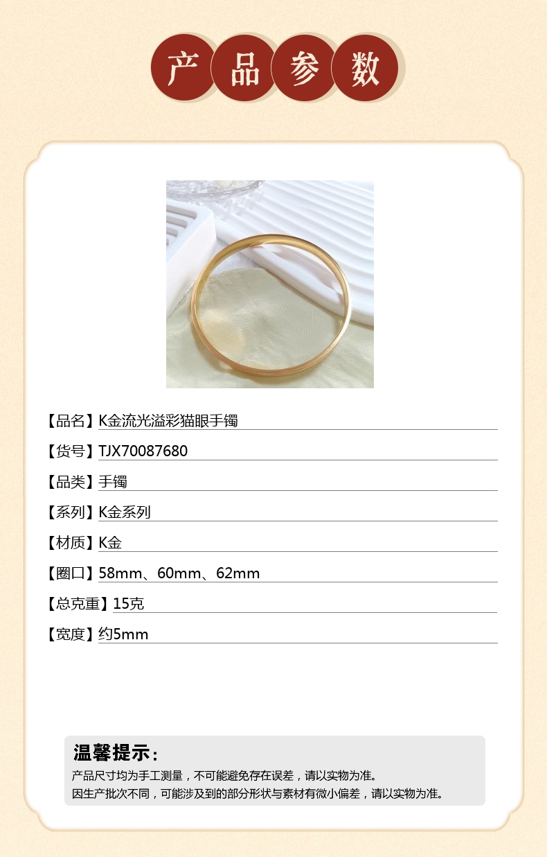 【品名】中国金楼K金流光溢彩猫眼手镯