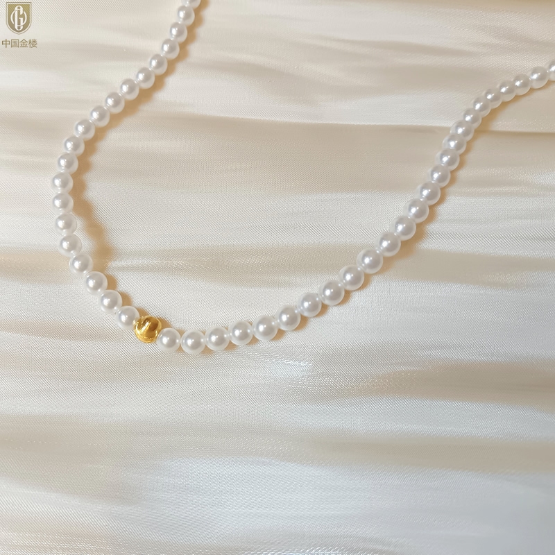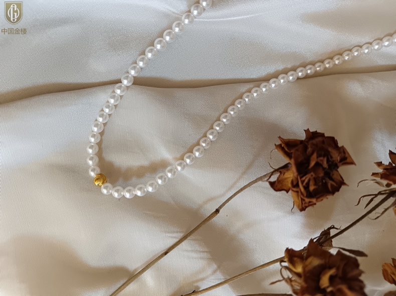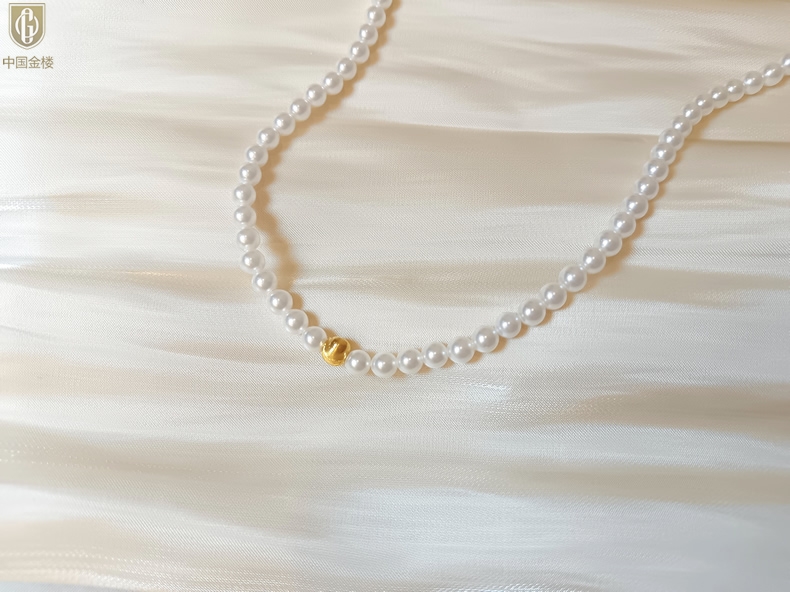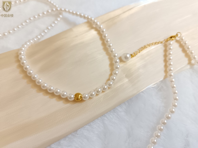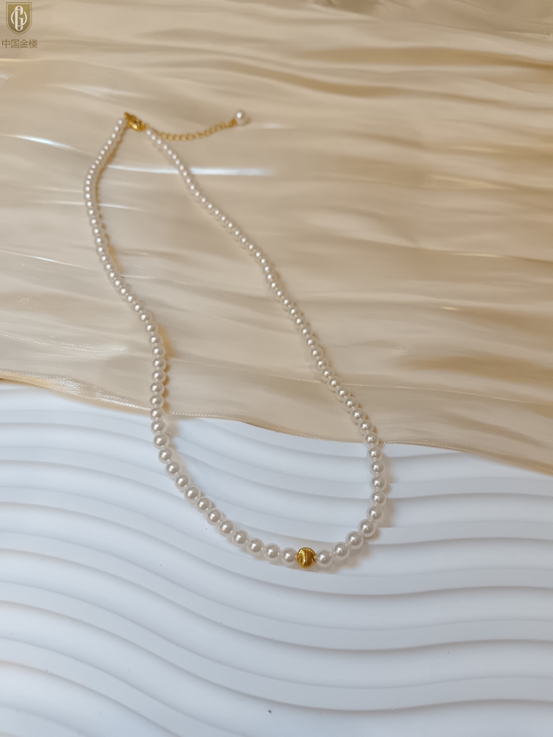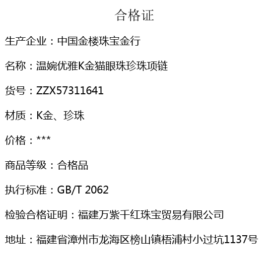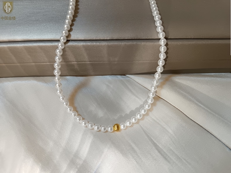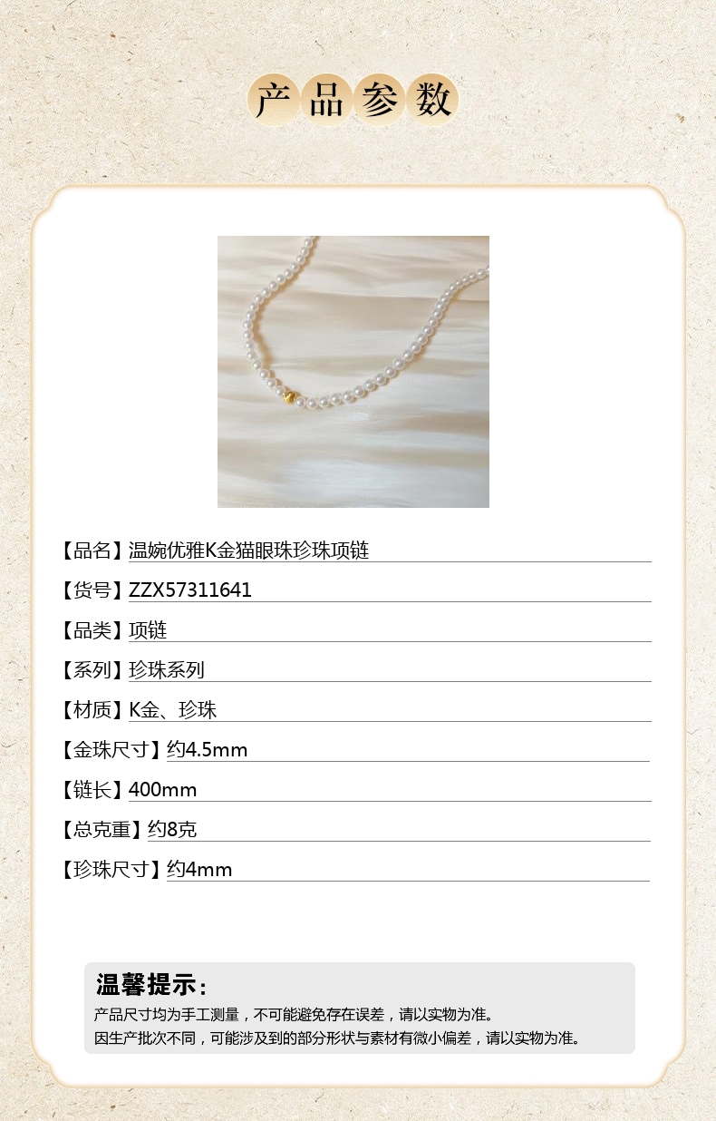 【品名】中国金楼温婉优雅K金猫眼珠珍珠项链