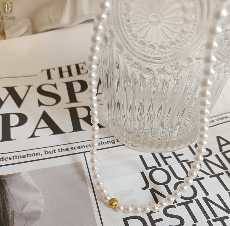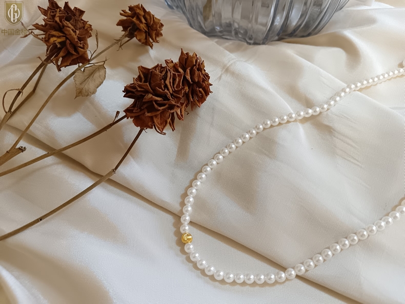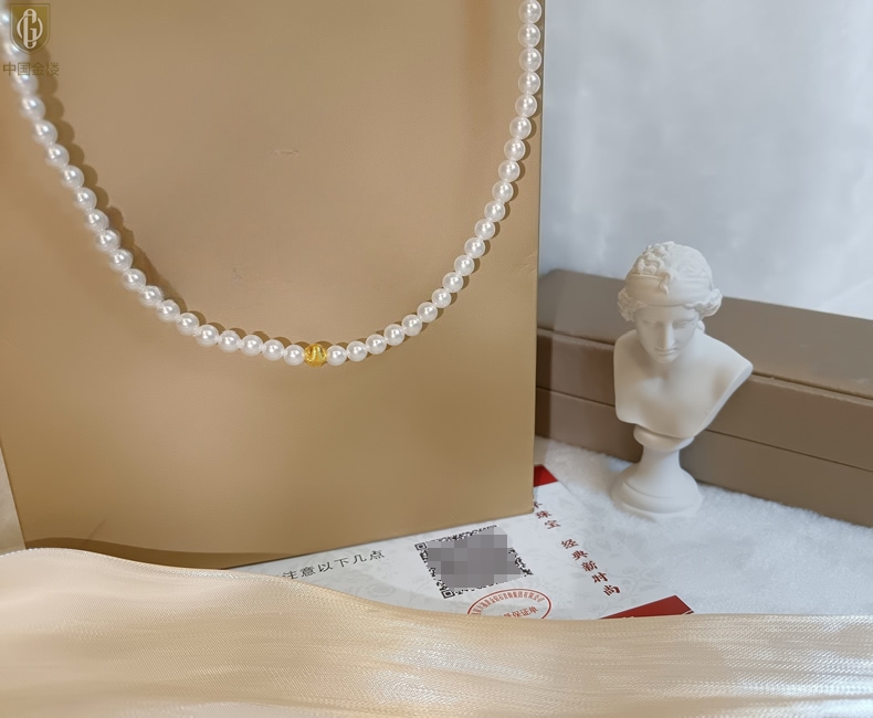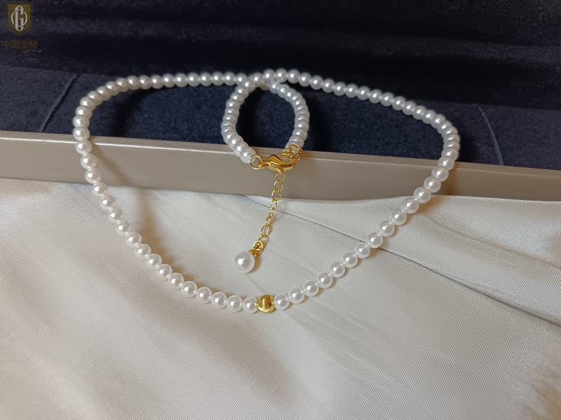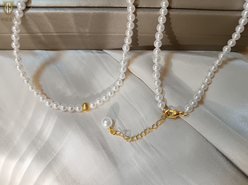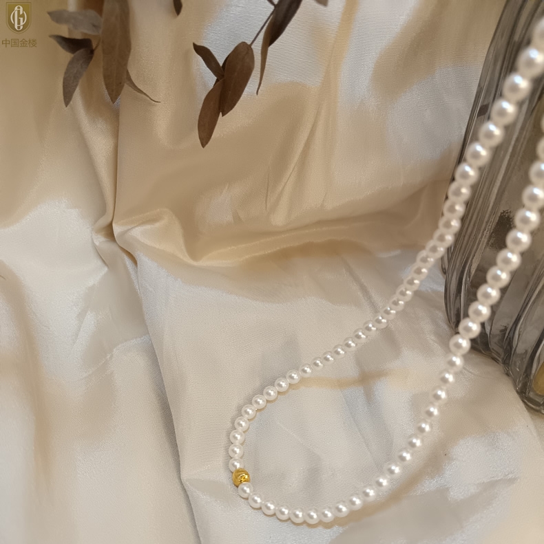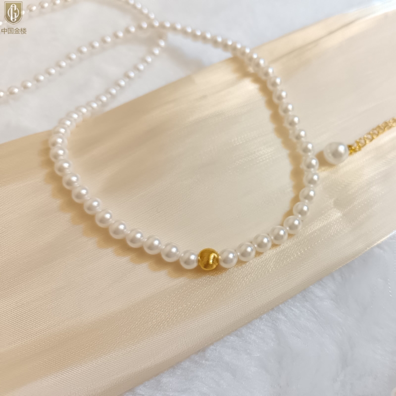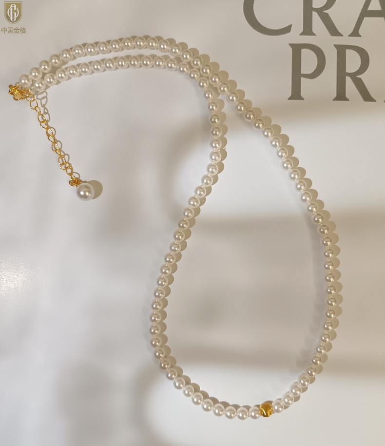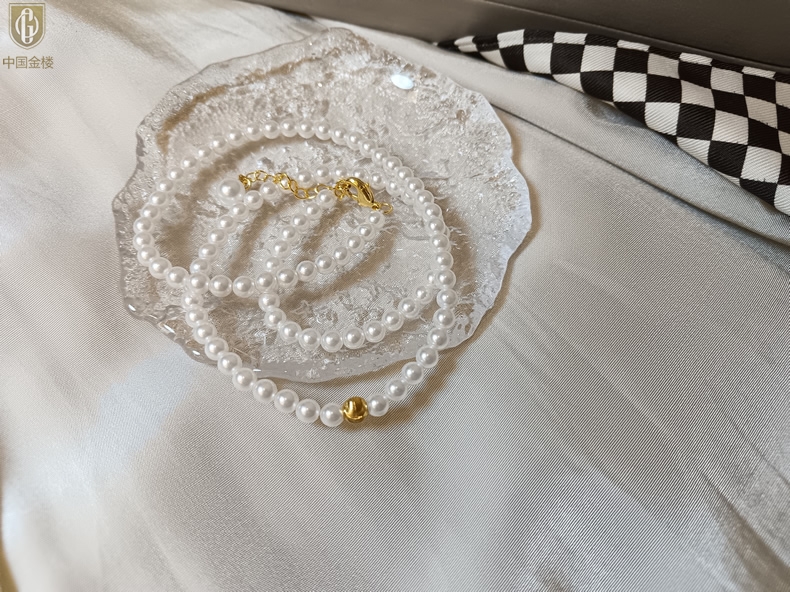 【品名】中国金楼温婉优雅K金猫眼珠珍珠项链