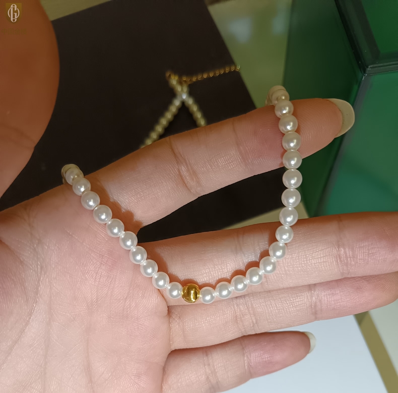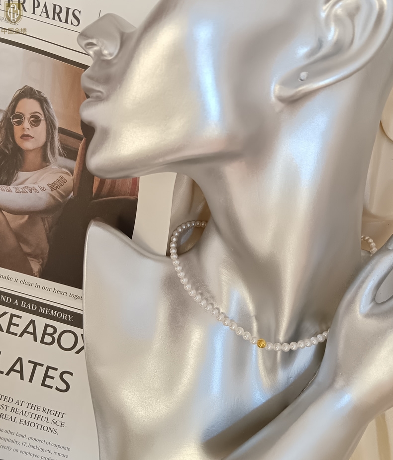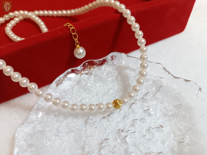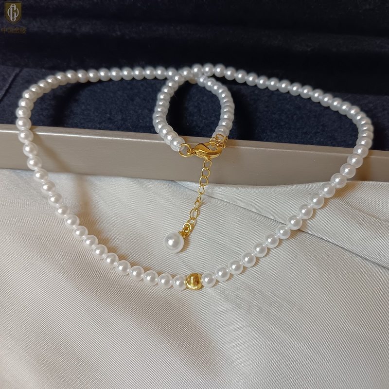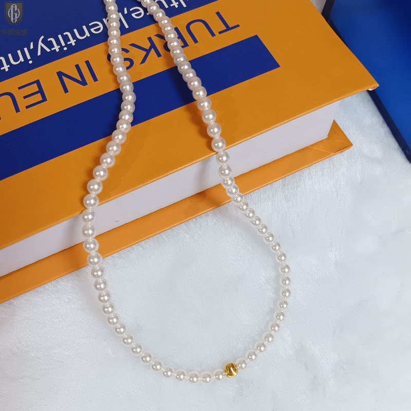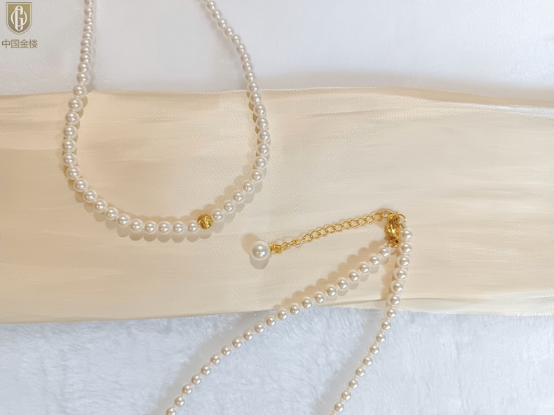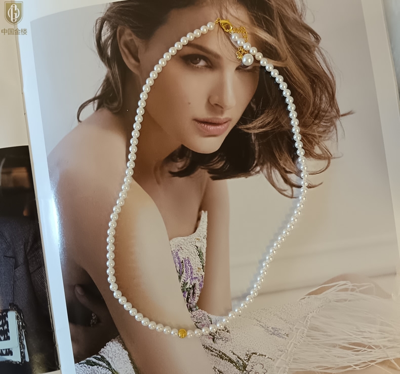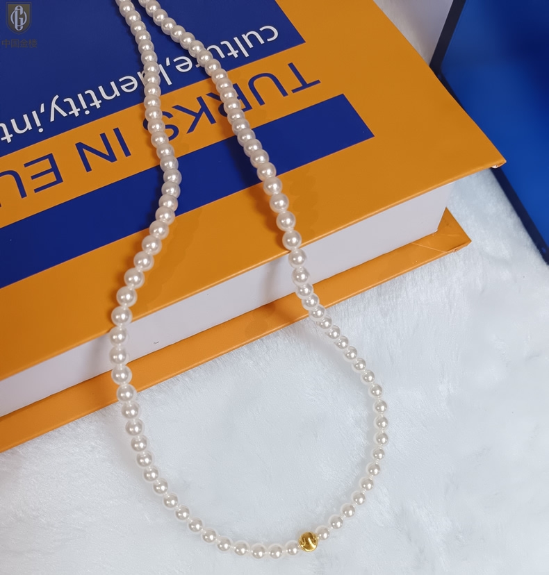 【品名】中国金楼温婉优雅K金猫眼珠珍珠项链
