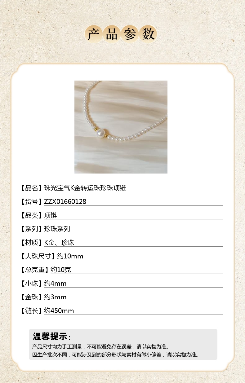 【品名】中国金楼珠光宝气K金转运珠珍珠项链