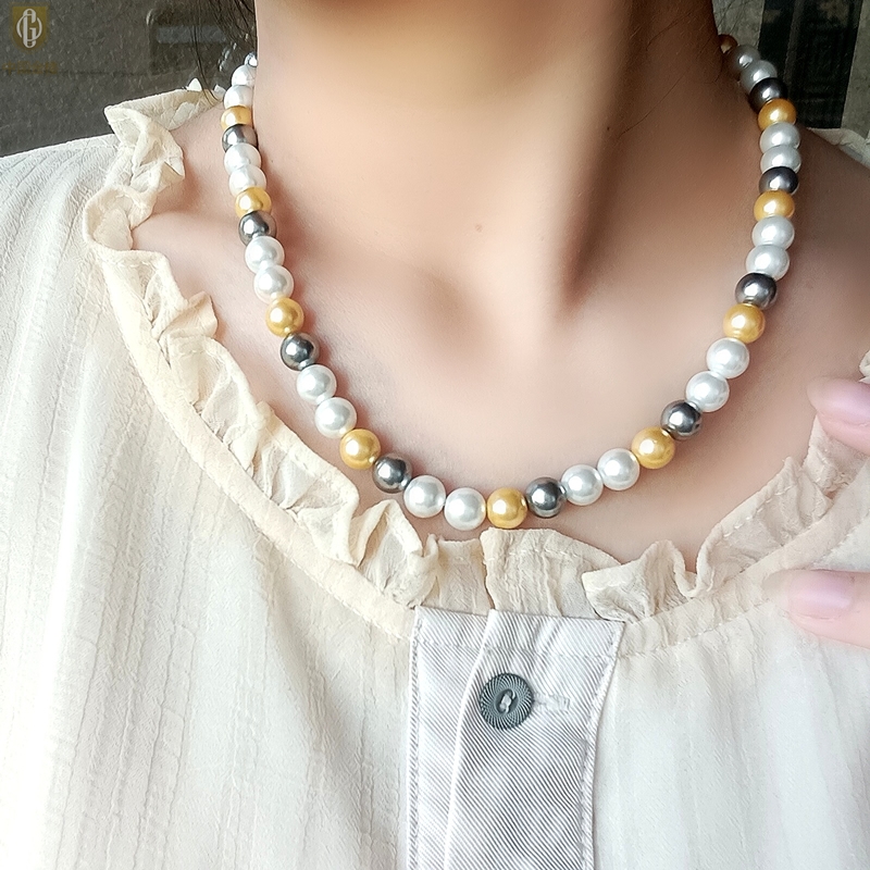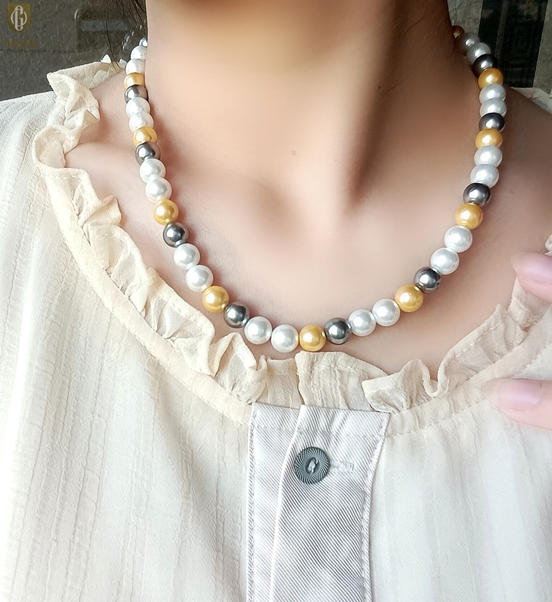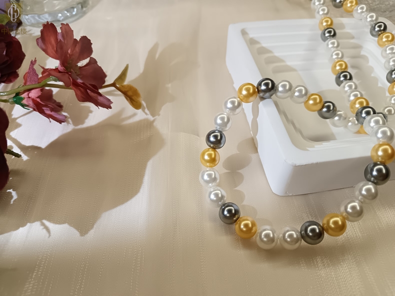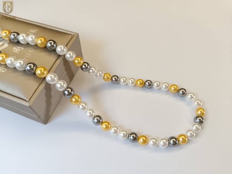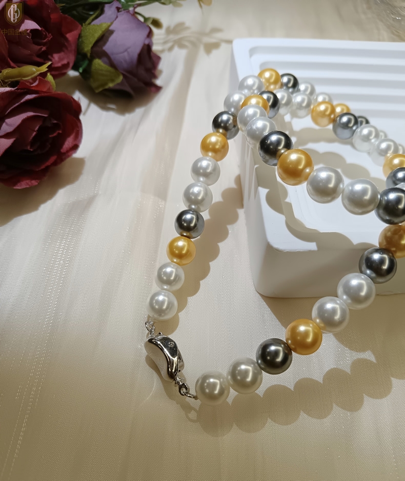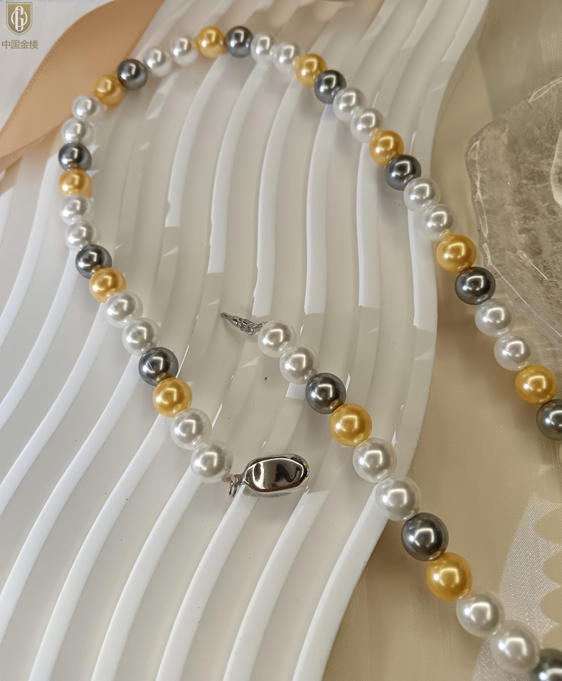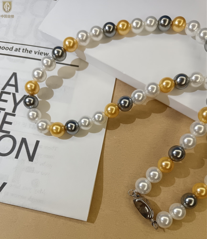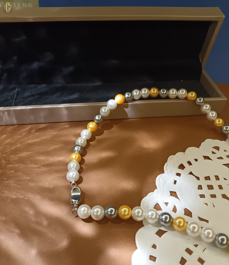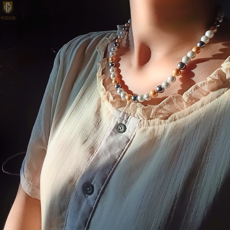 【品名】中国金楼彩虹多巴胺南洋进口珍珠项链8mm