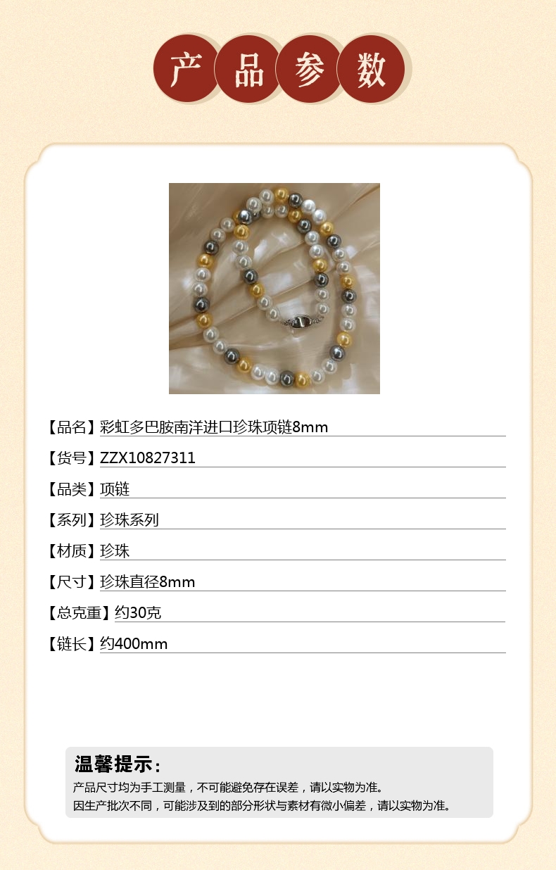 尺寸:珍珠直径8mm