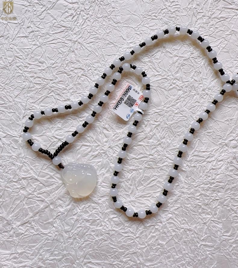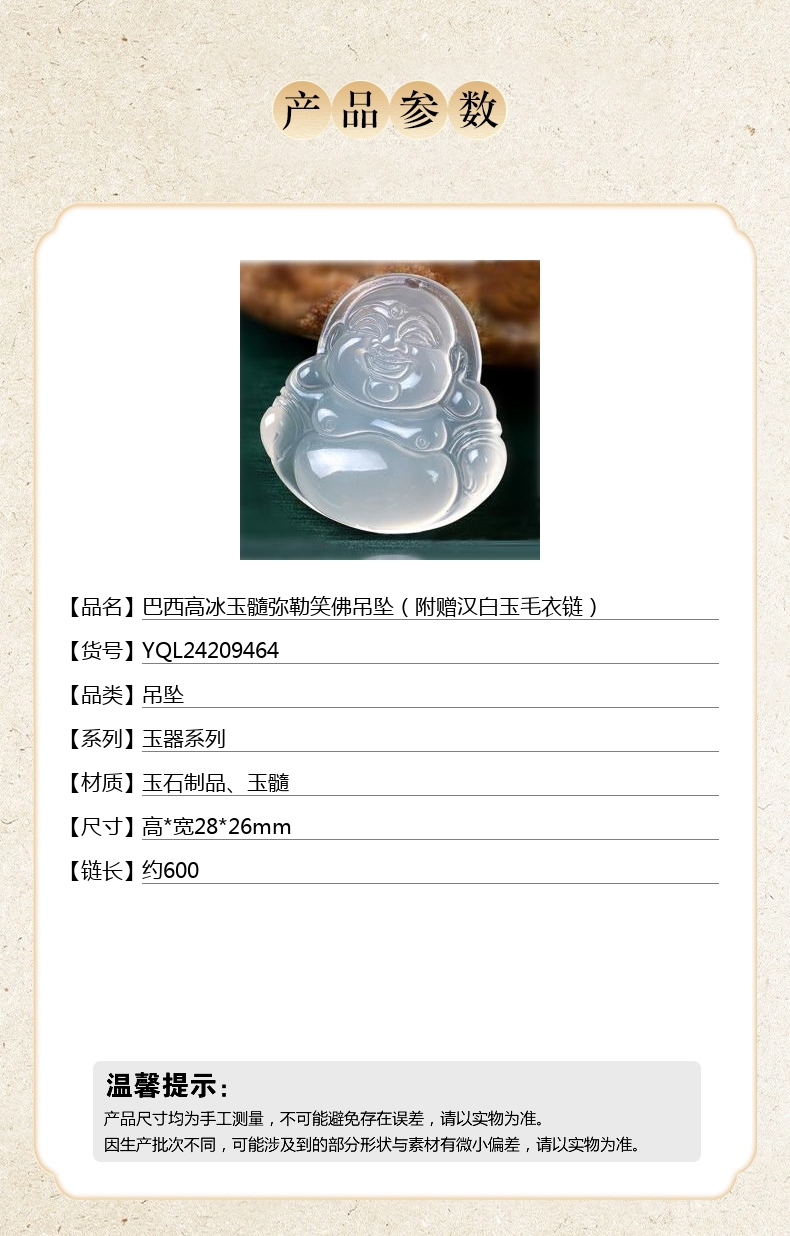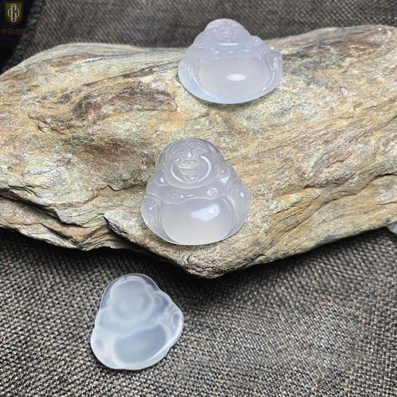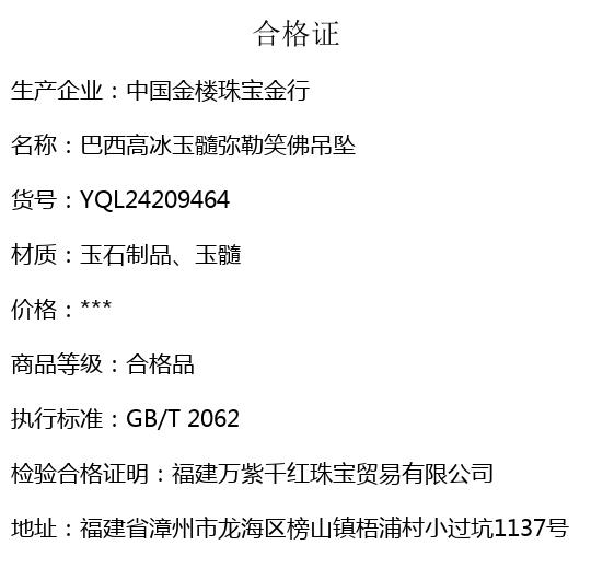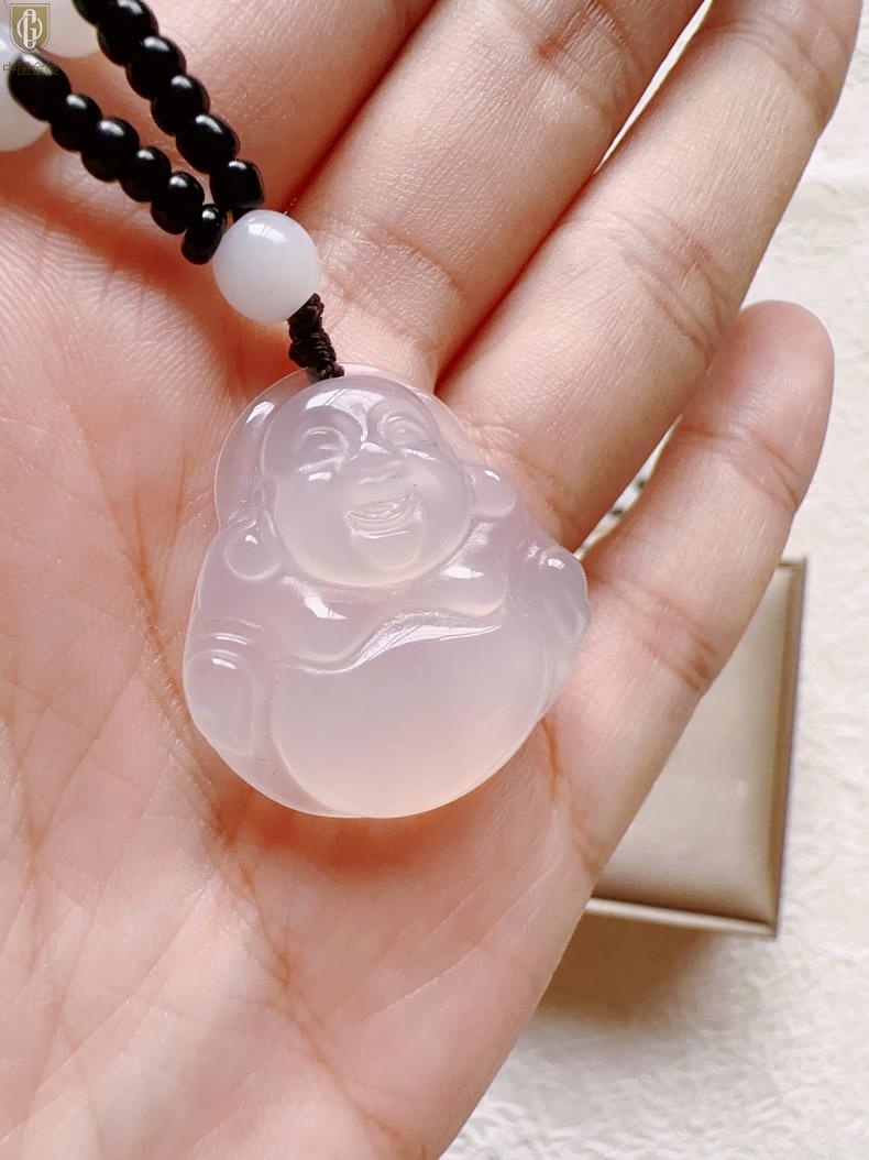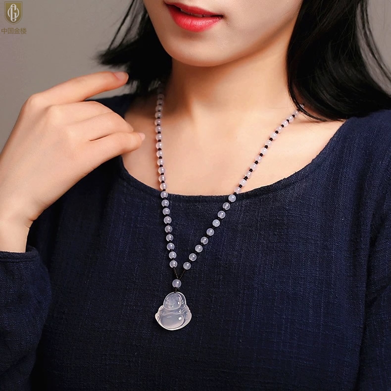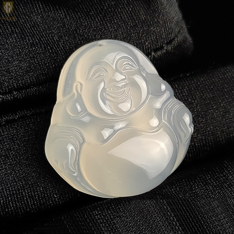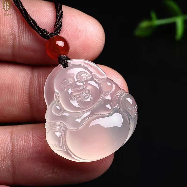 【品名】中国金楼巴西高冰玉髓弥勒笑佛吊坠(附赠汉白玉毛衣链)