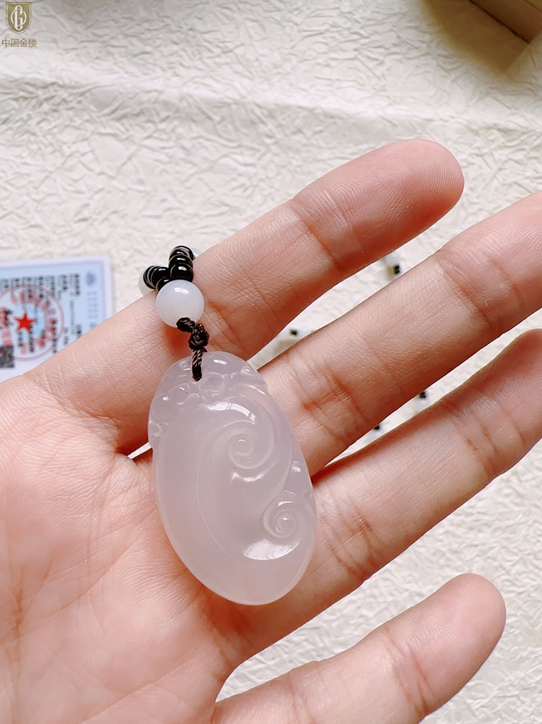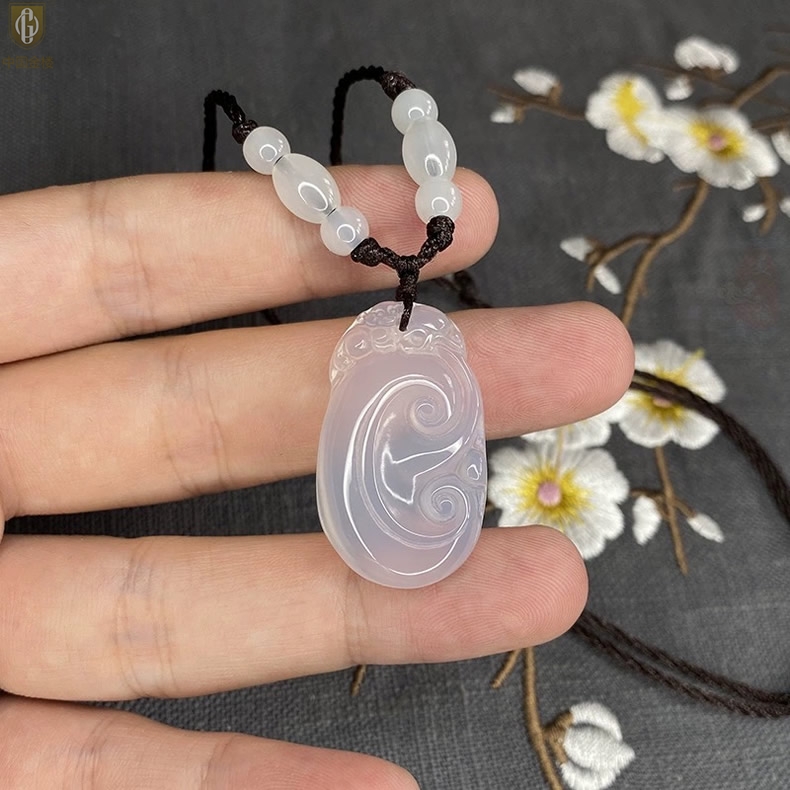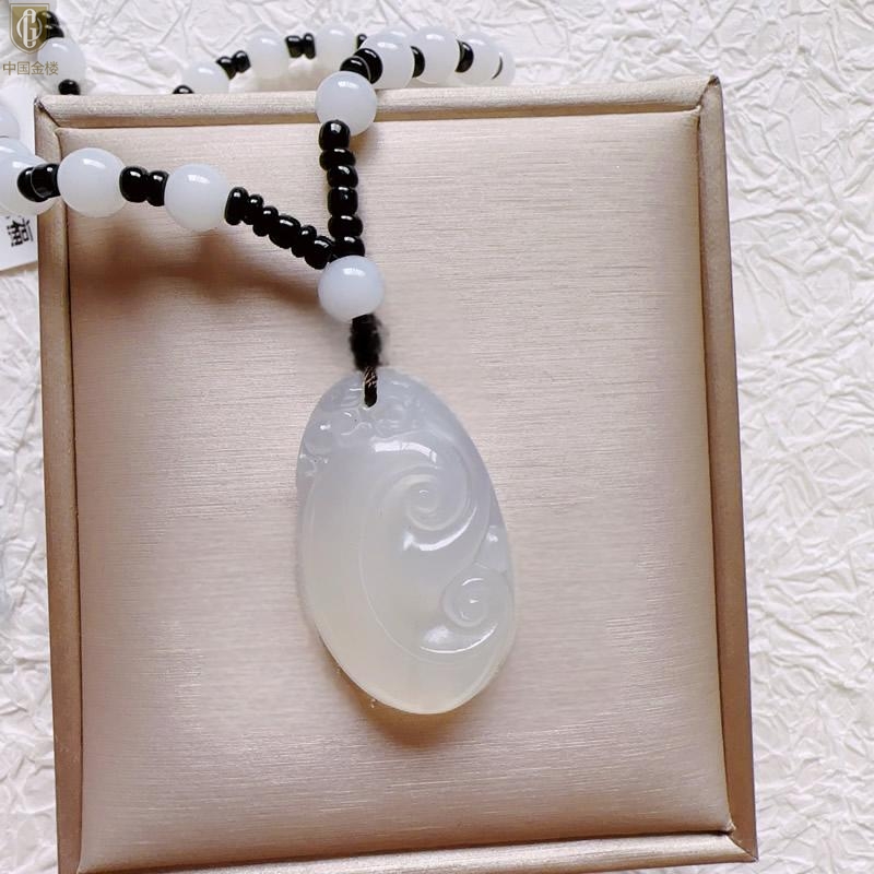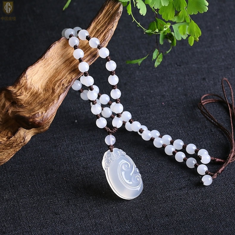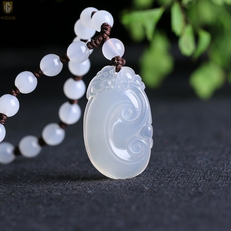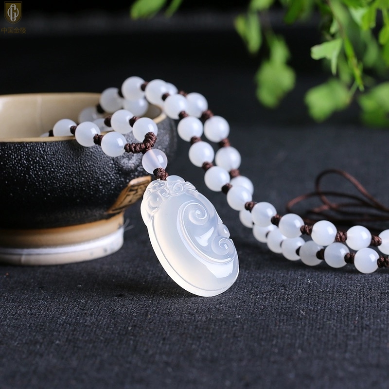 【品名】中国金楼巴西高冰玉髓吉祥如意吊坠(附赠汉白玉毛衣链)