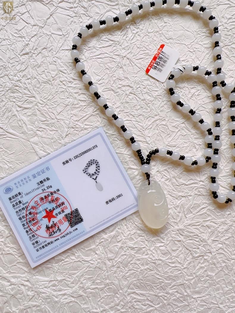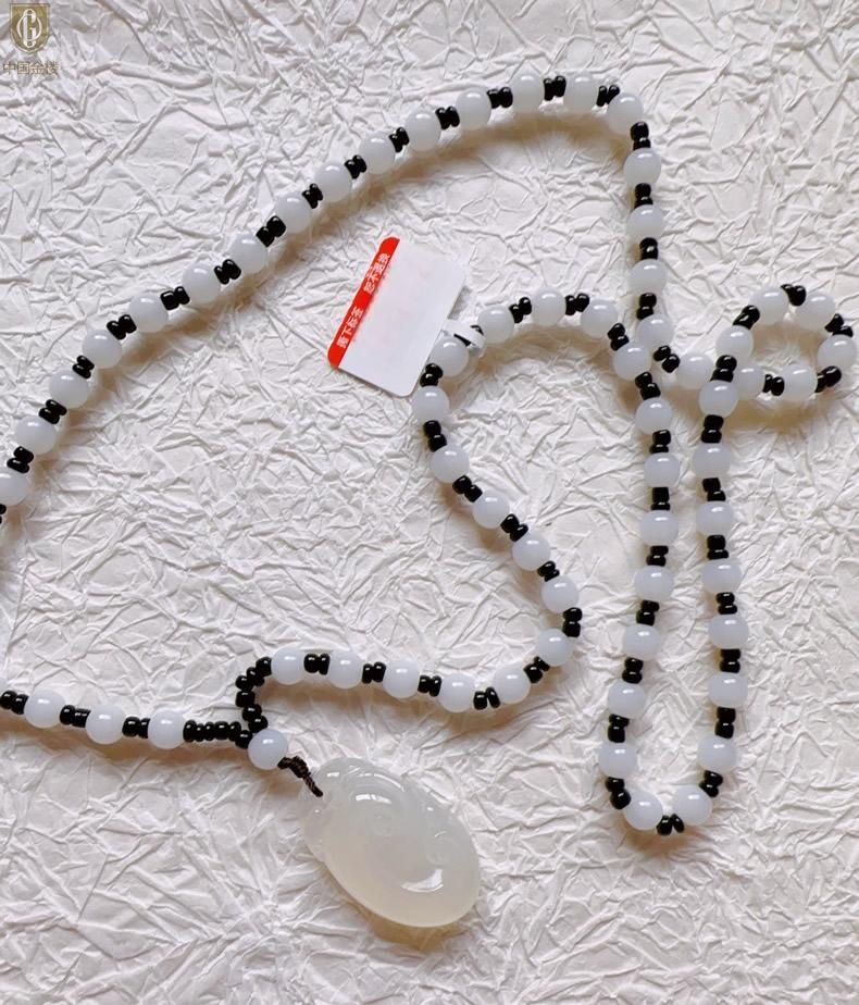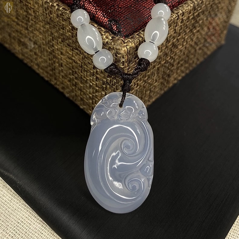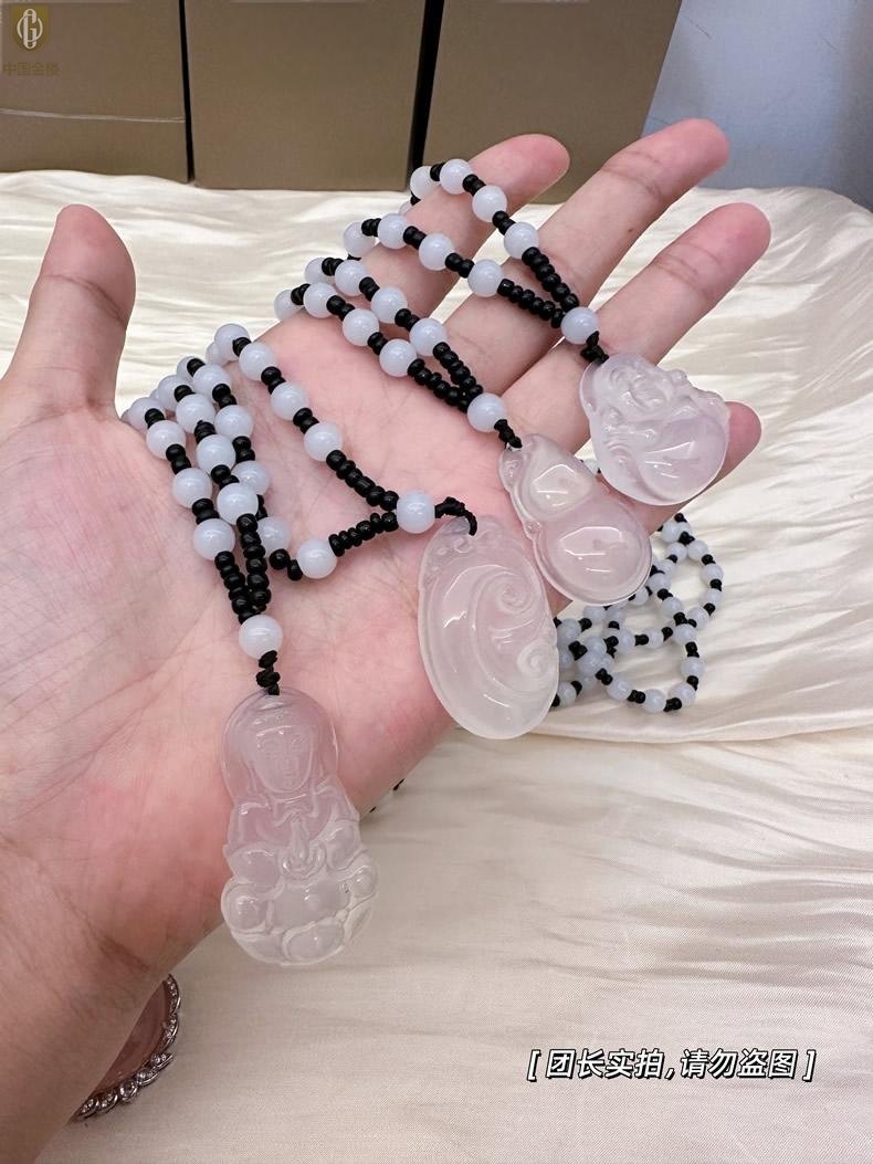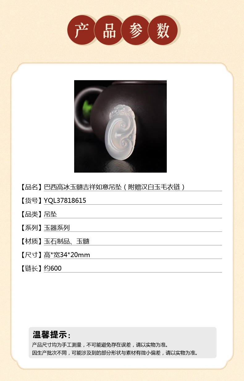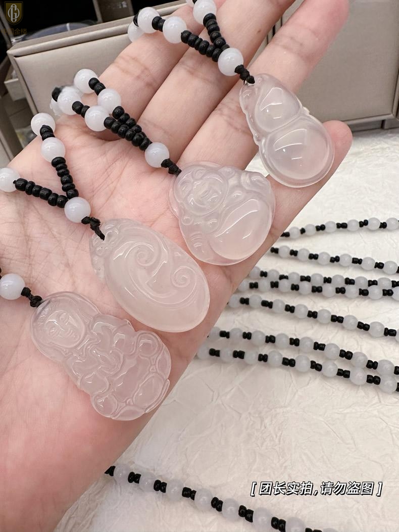 【品名】中国金楼巴西高冰玉髓吉祥如意吊坠(附赠汉白玉毛衣链)