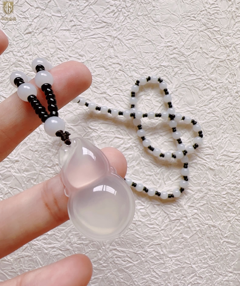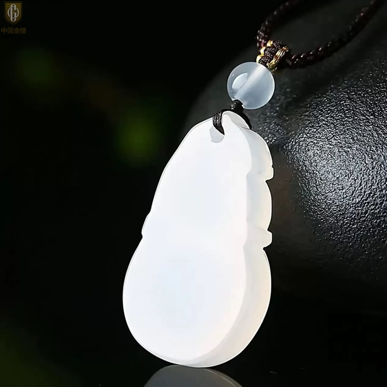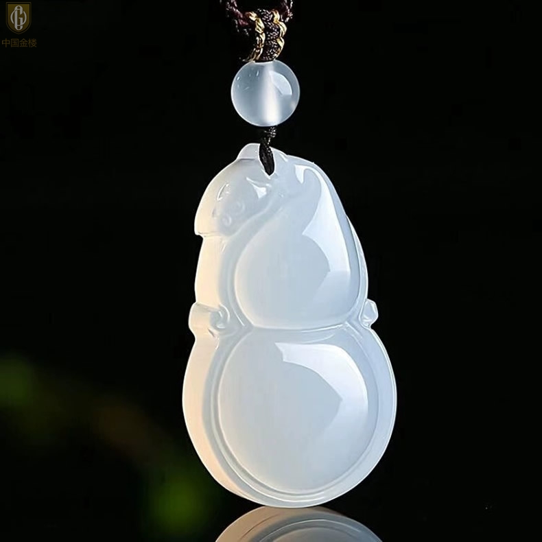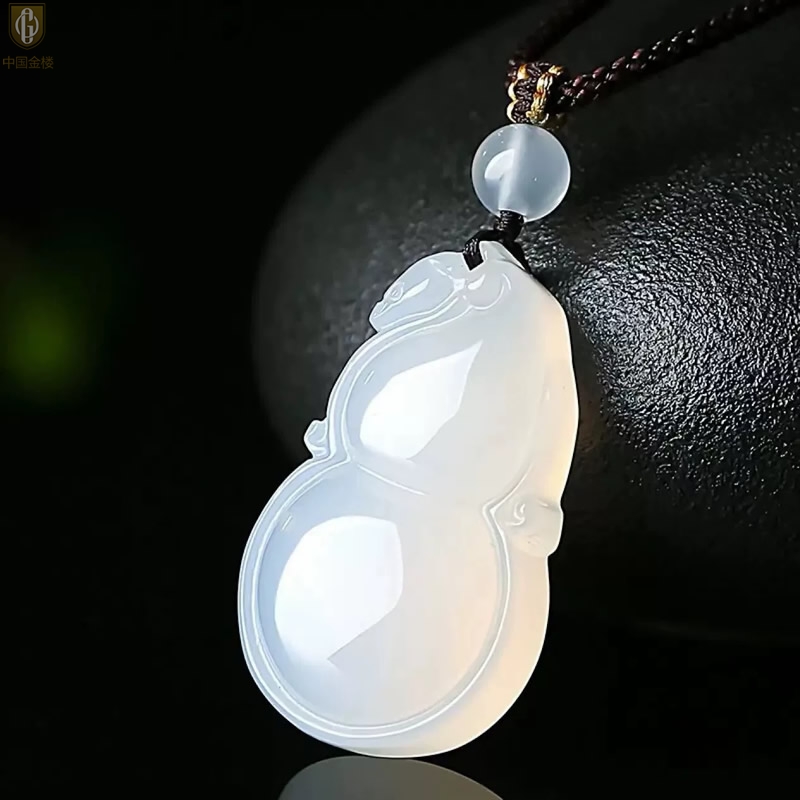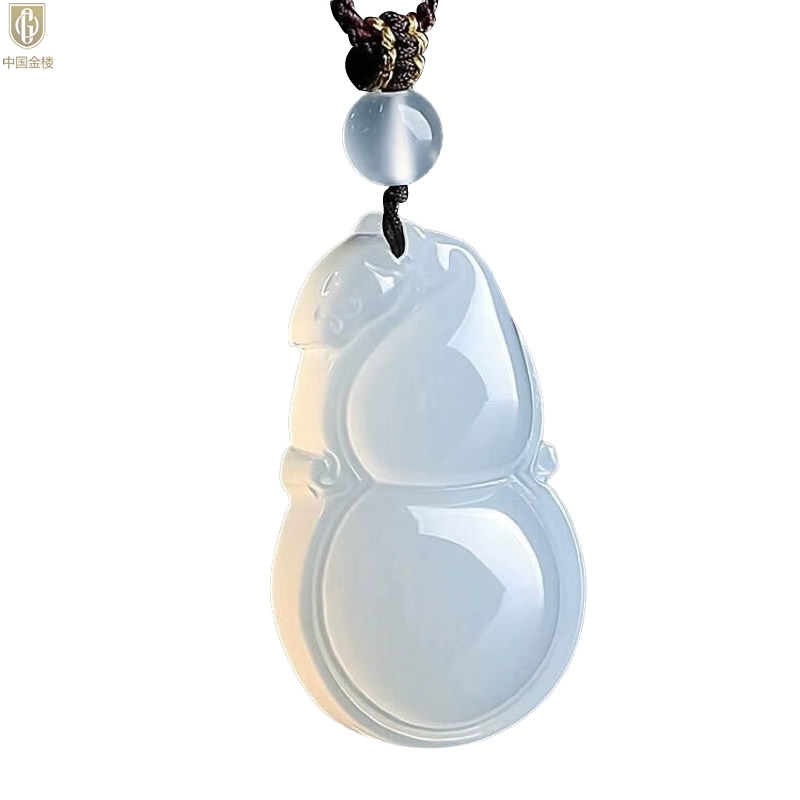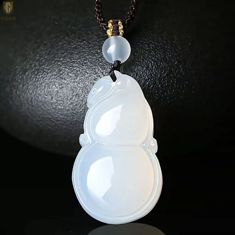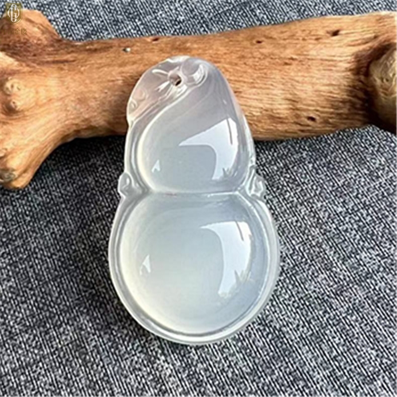 【品名】中国金楼巴西高冰玉髓福禄葫芦吊坠(附赠汉白玉毛衣链)