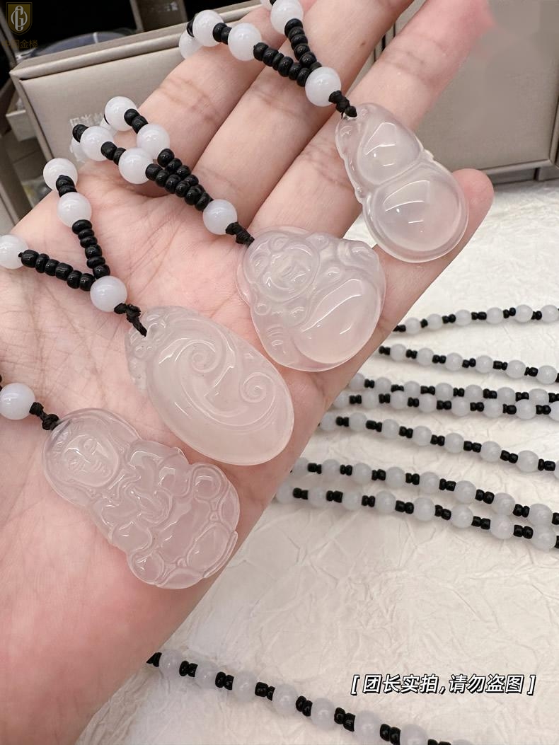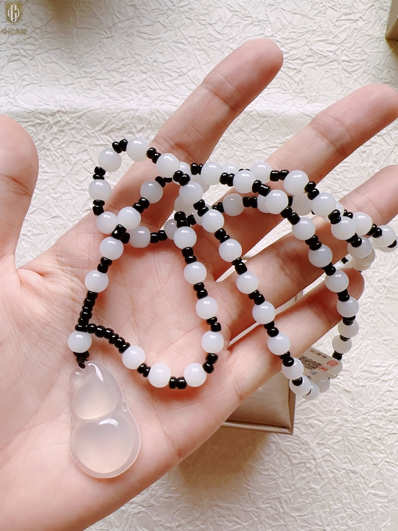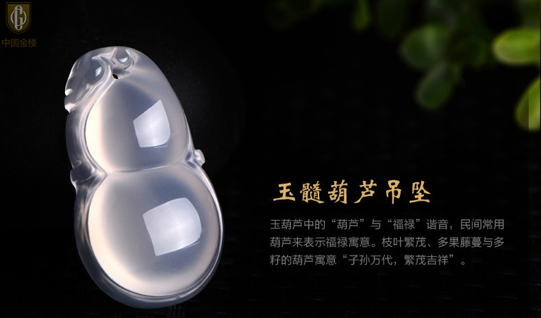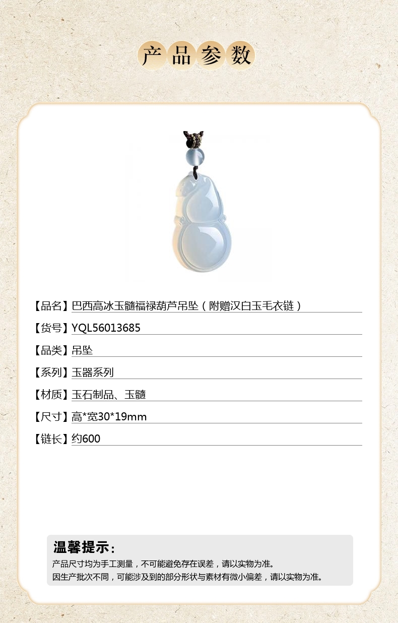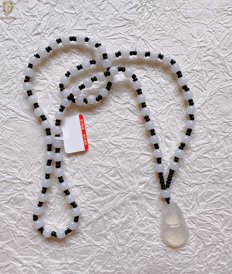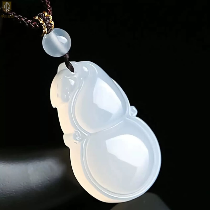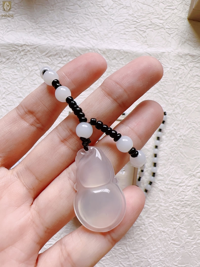 【品名】中国金楼巴西高冰玉髓福禄葫芦吊坠(附赠汉白玉毛衣链)