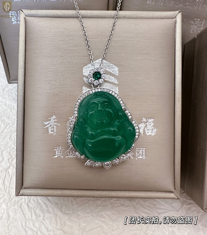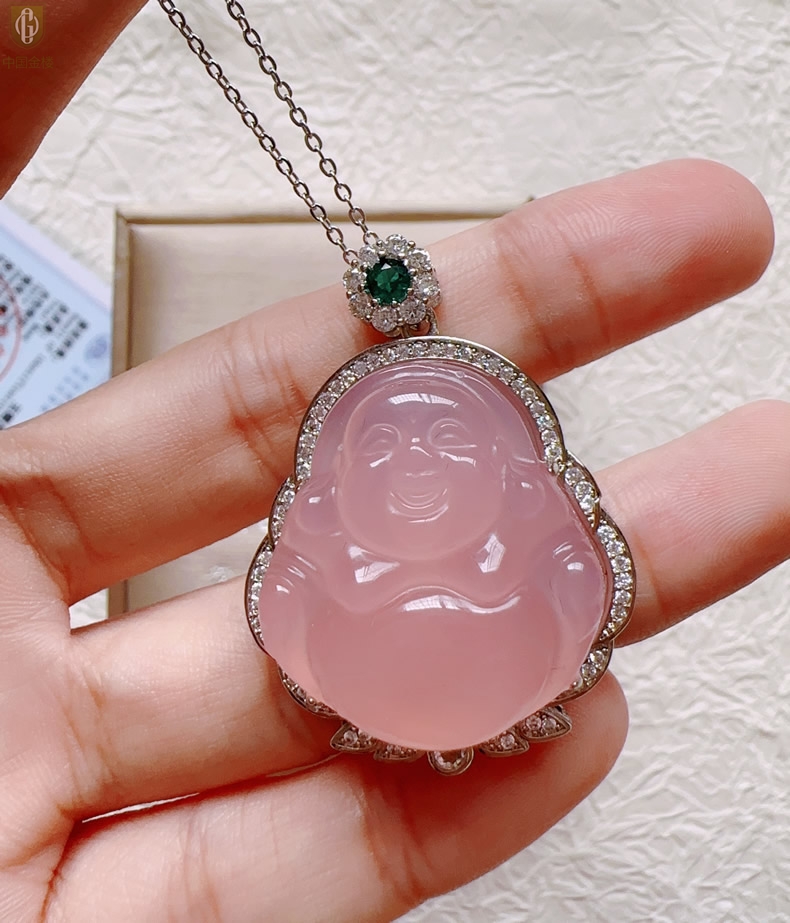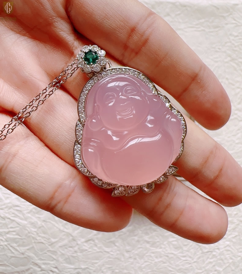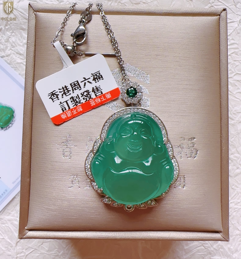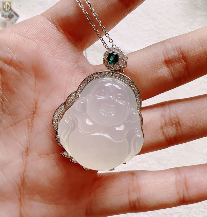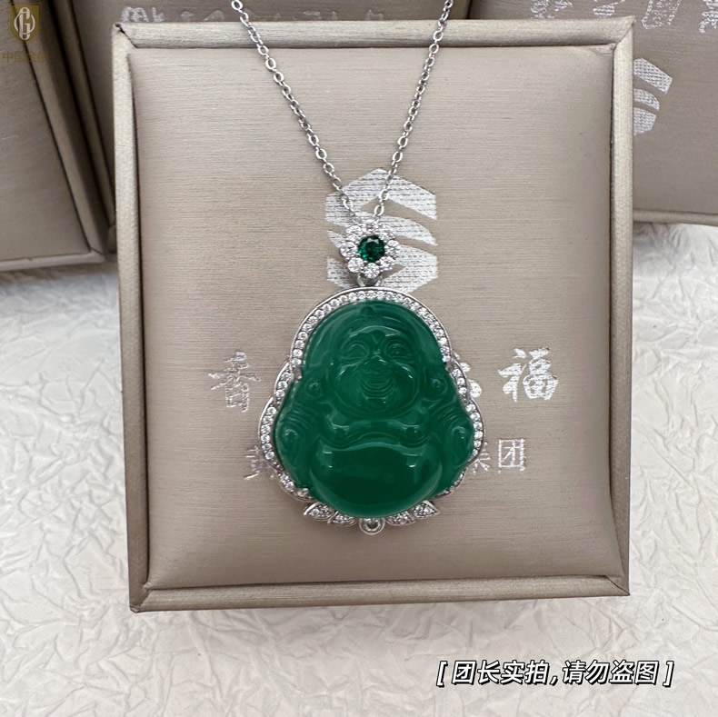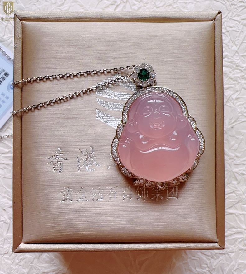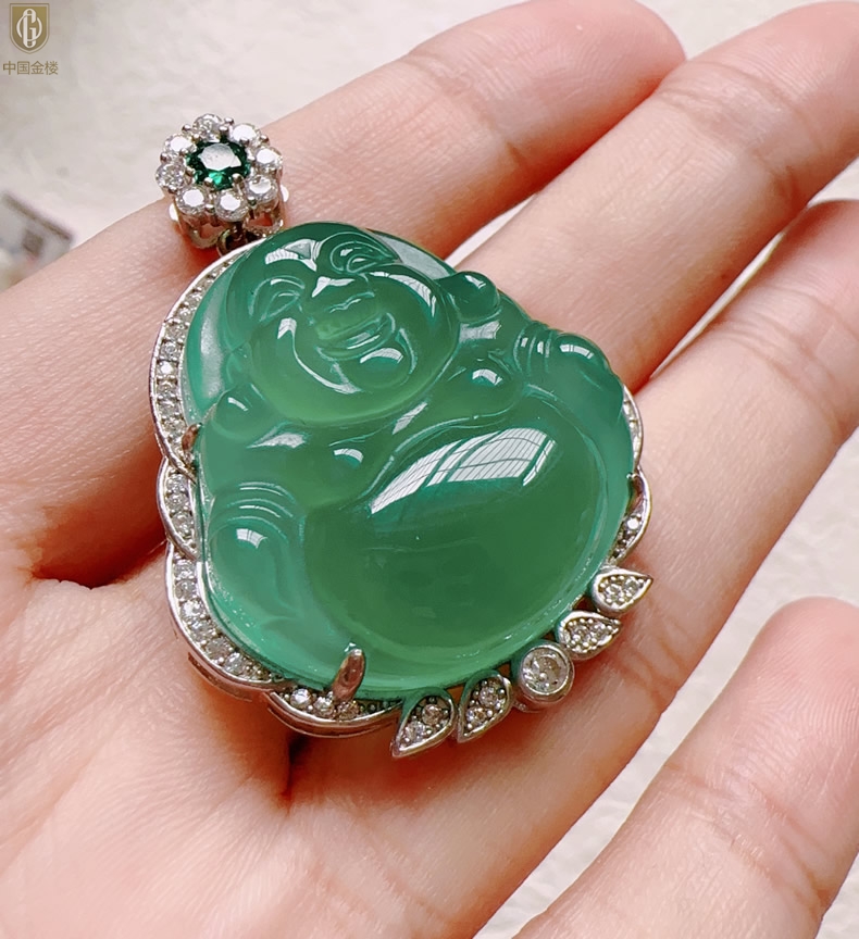 【品名】中国金楼巴西高冰玉髓豪镶满钻弥勒笑佛吊坠