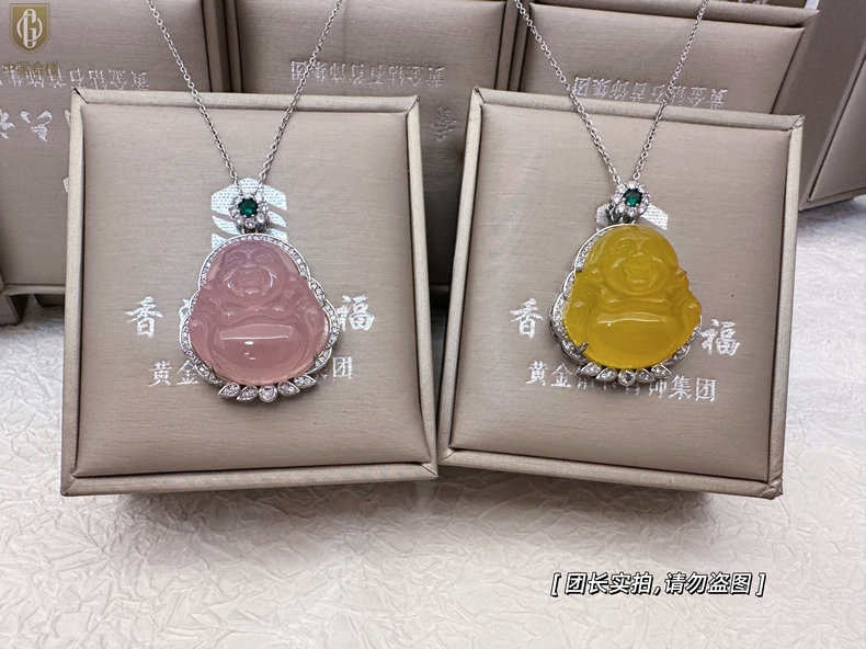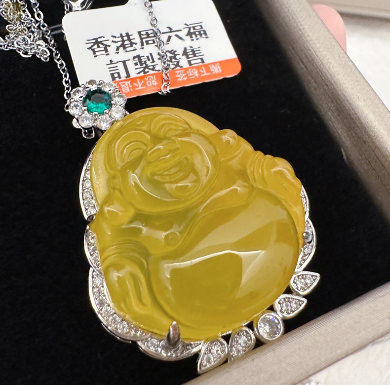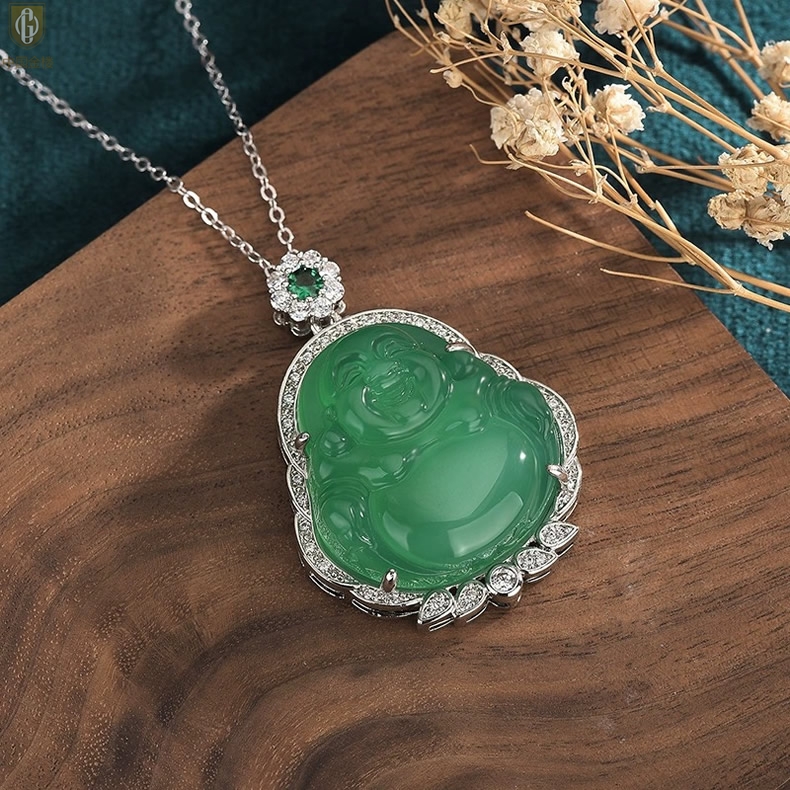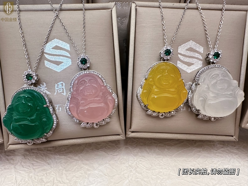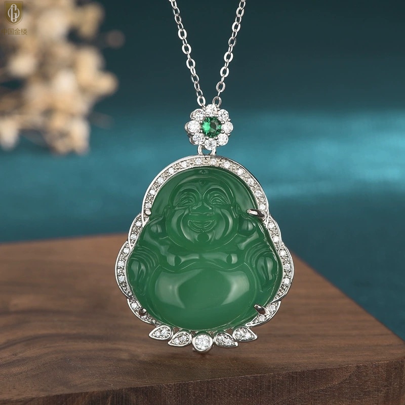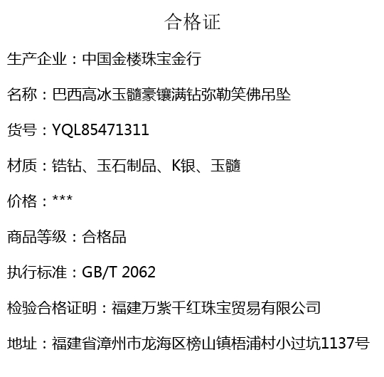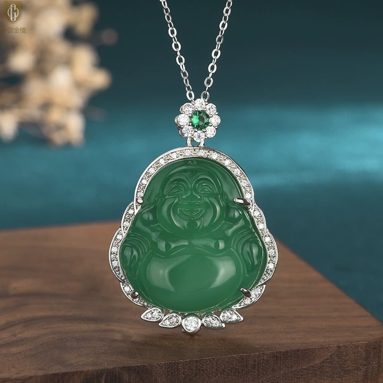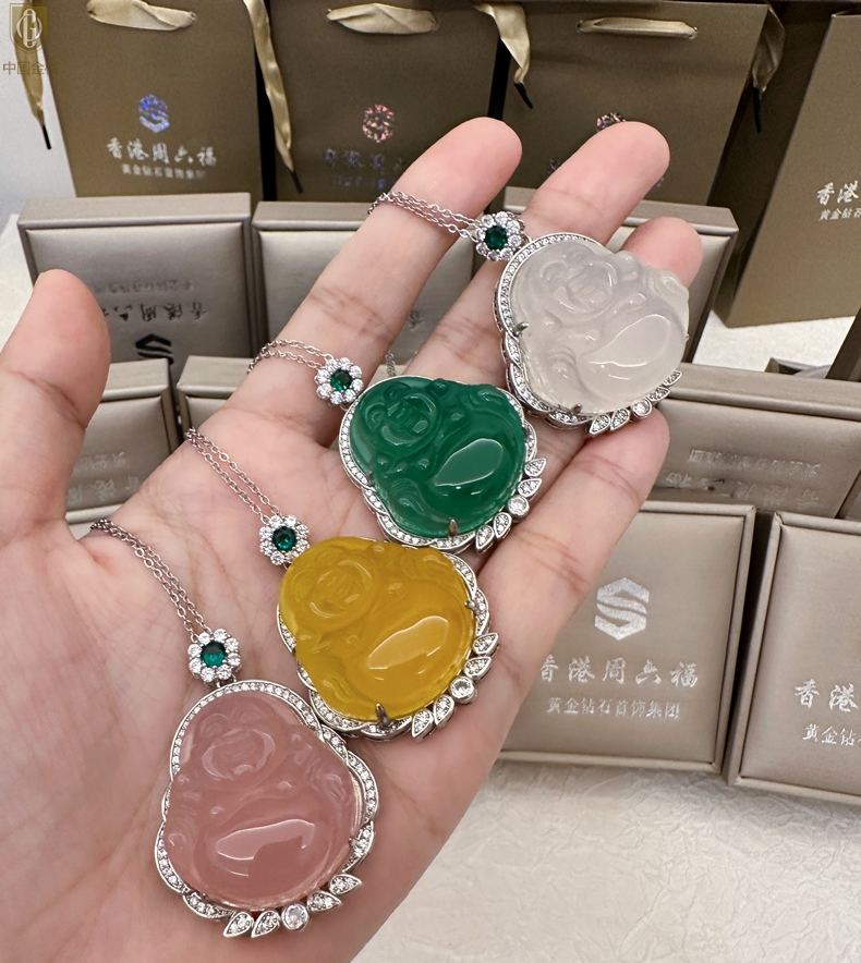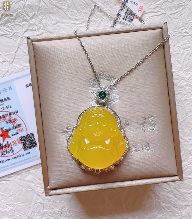 【品名】中国金楼巴西高冰玉髓豪镶满钻弥勒笑佛吊坠