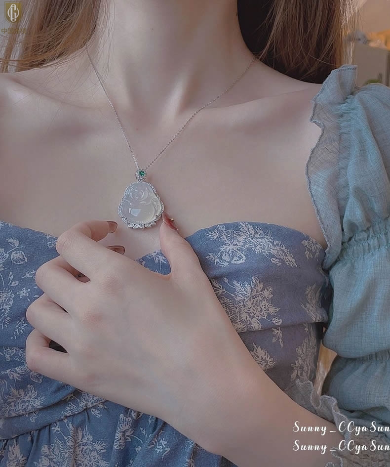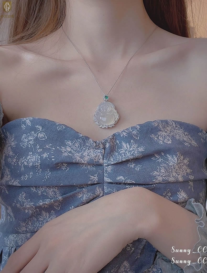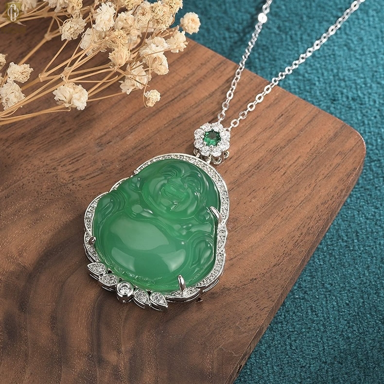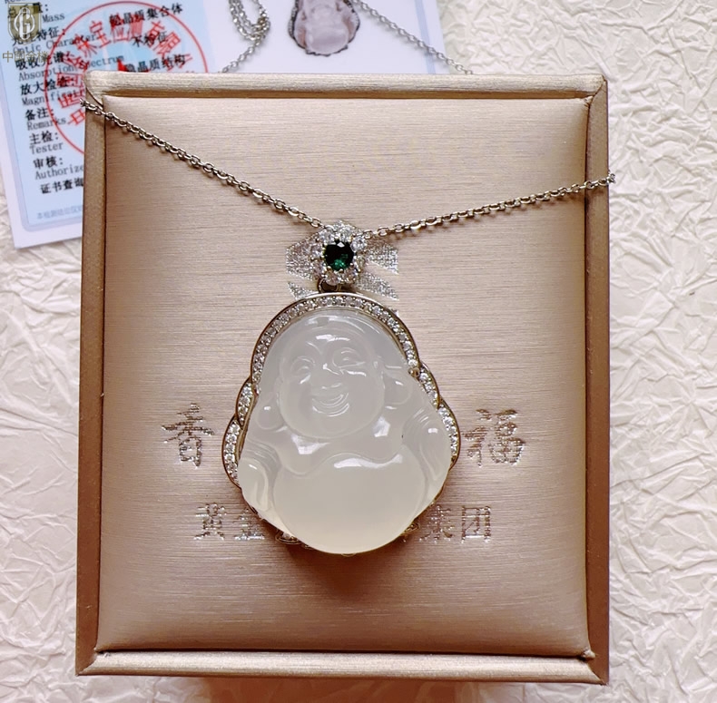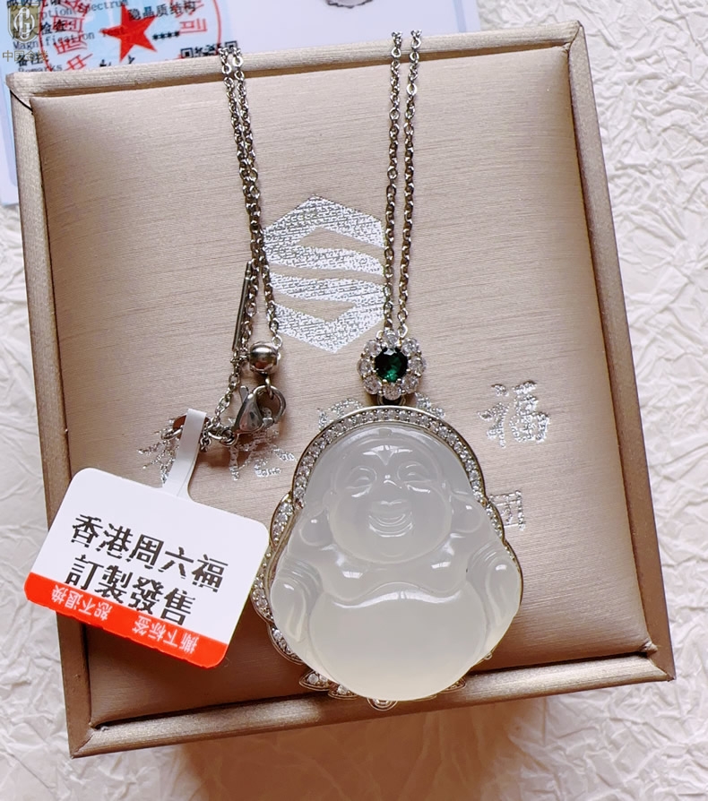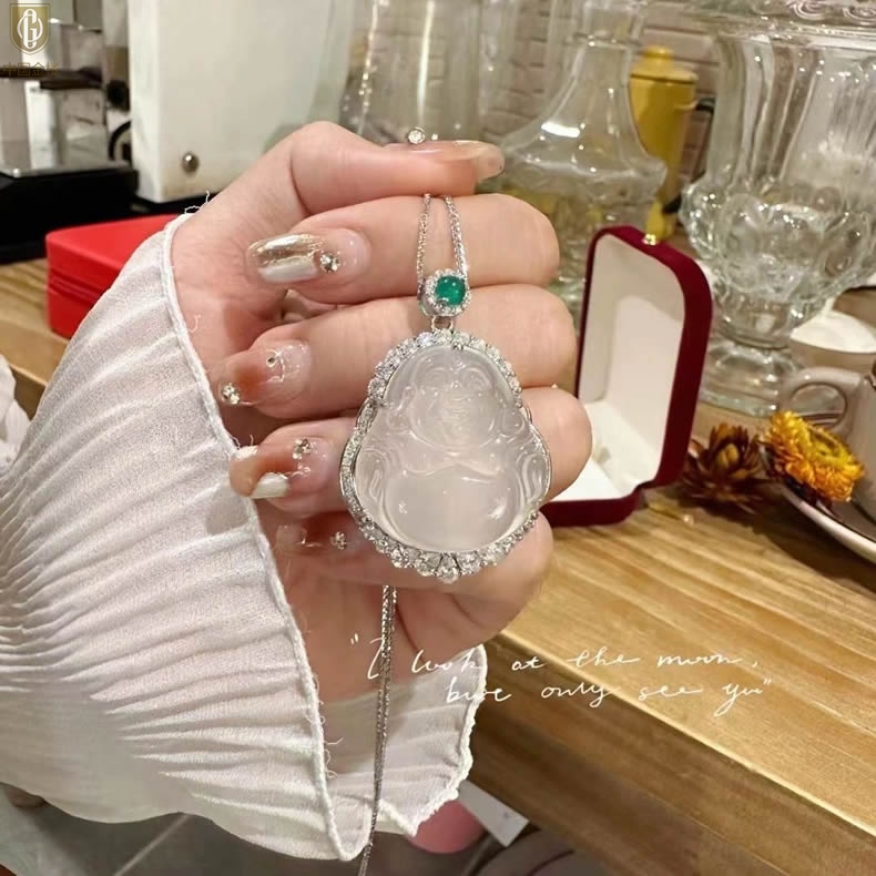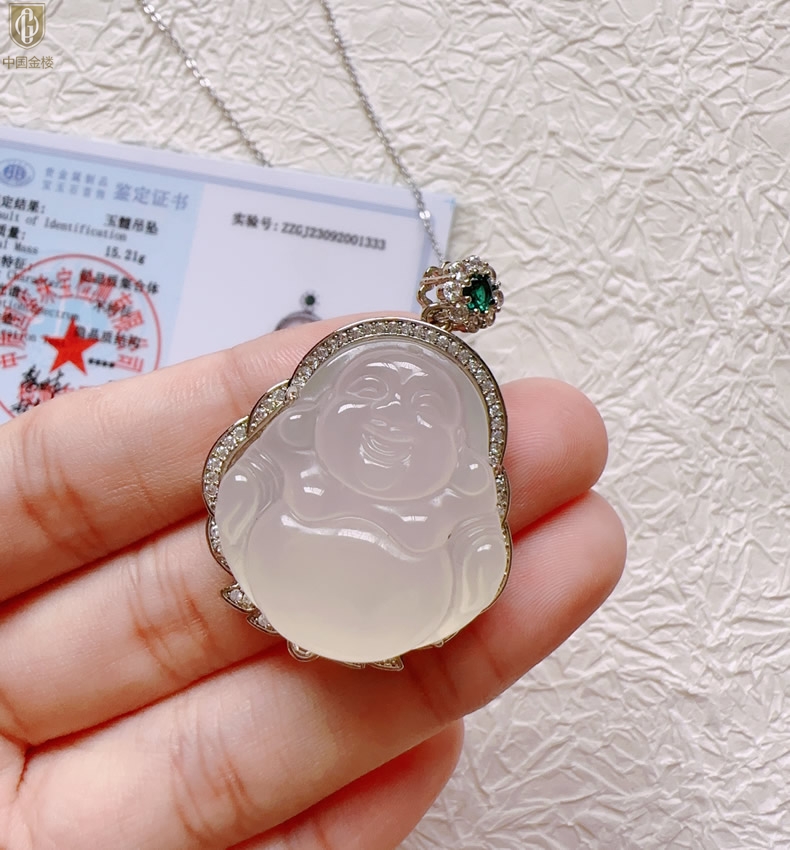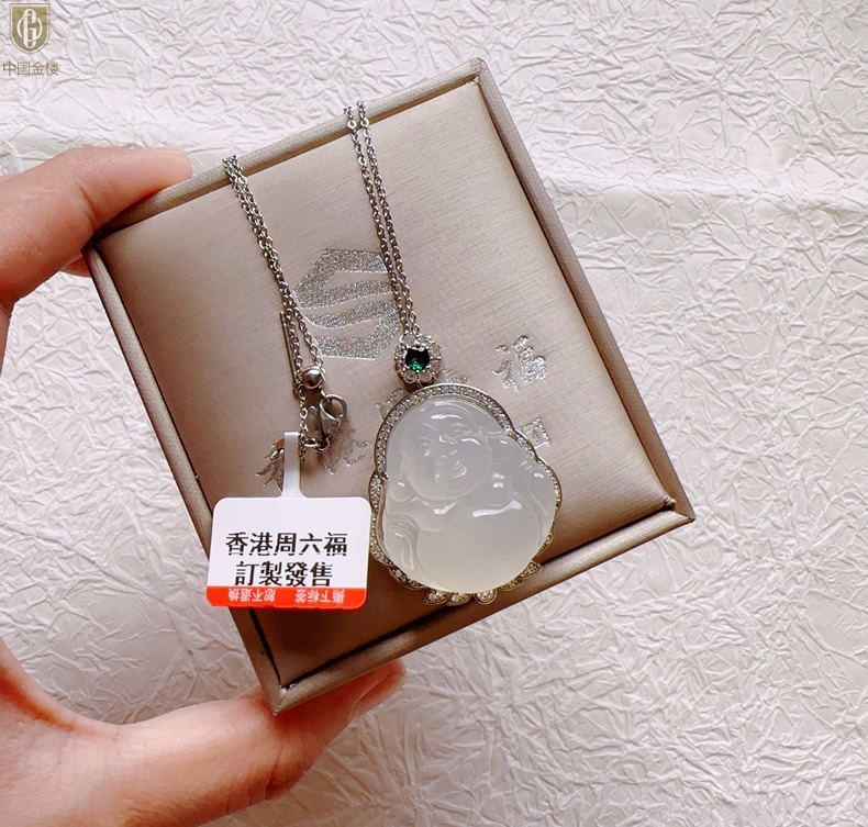 【品名】中国金楼巴西高冰玉髓豪镶满钻弥勒笑佛吊坠