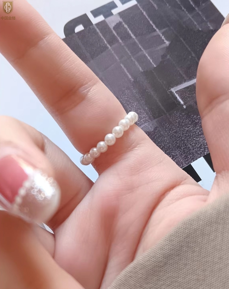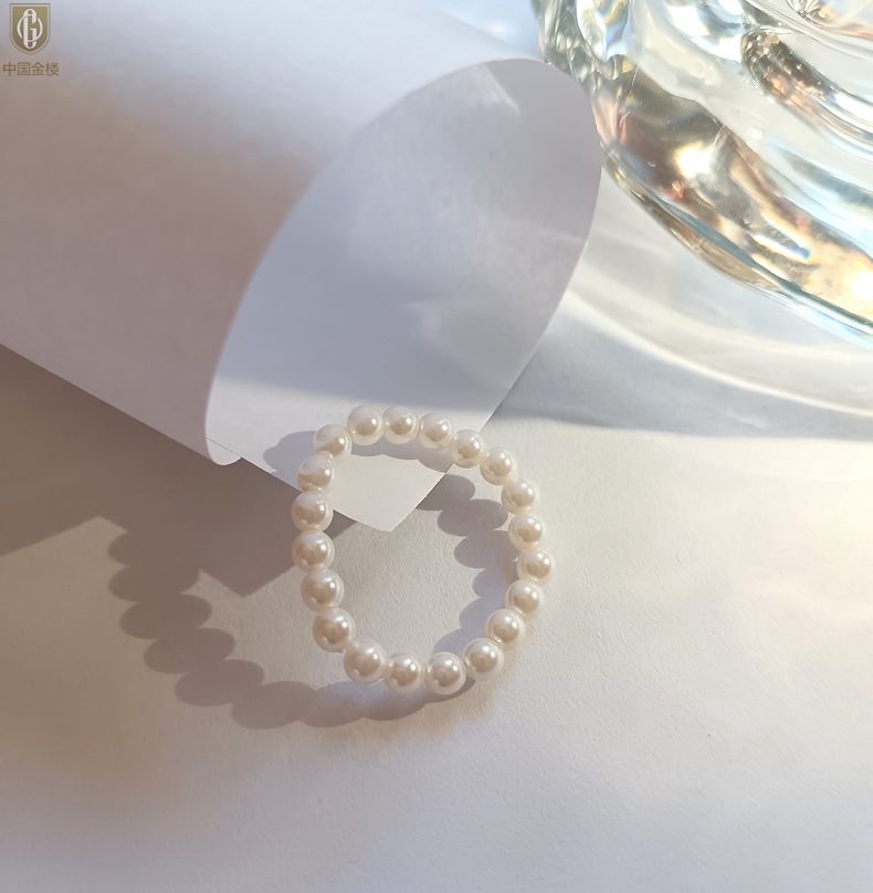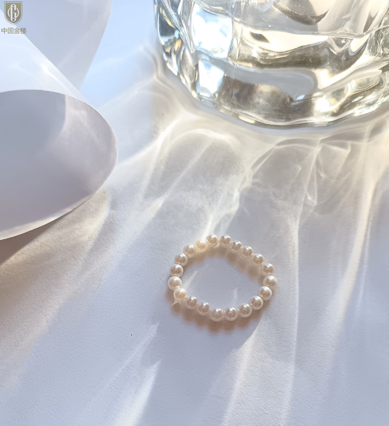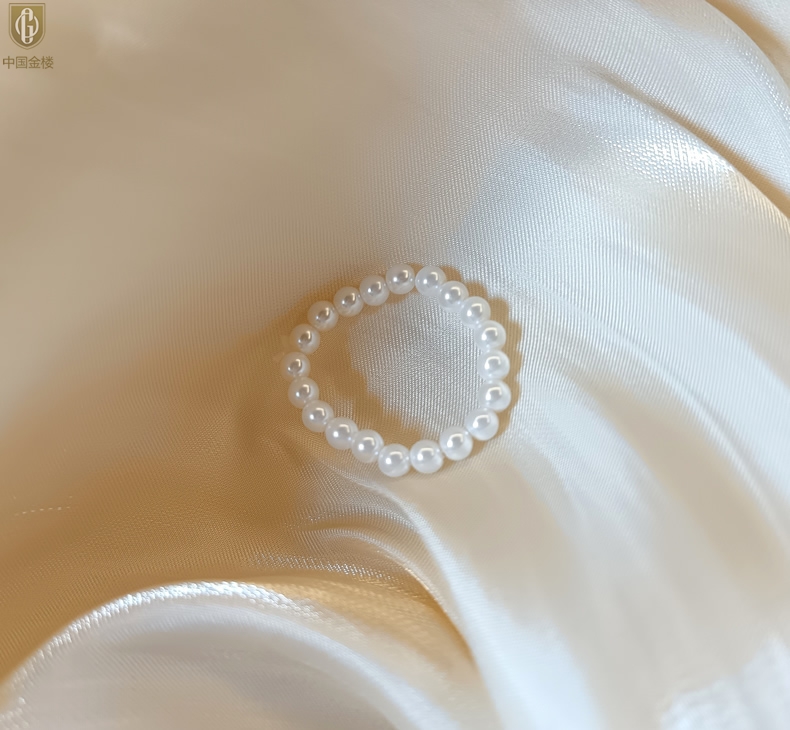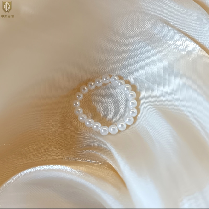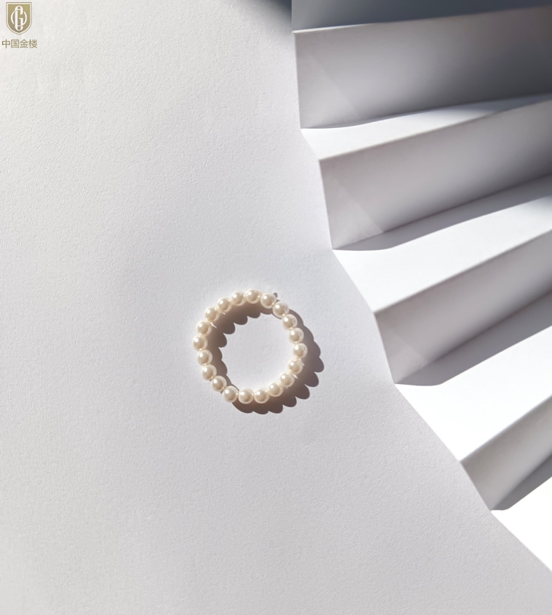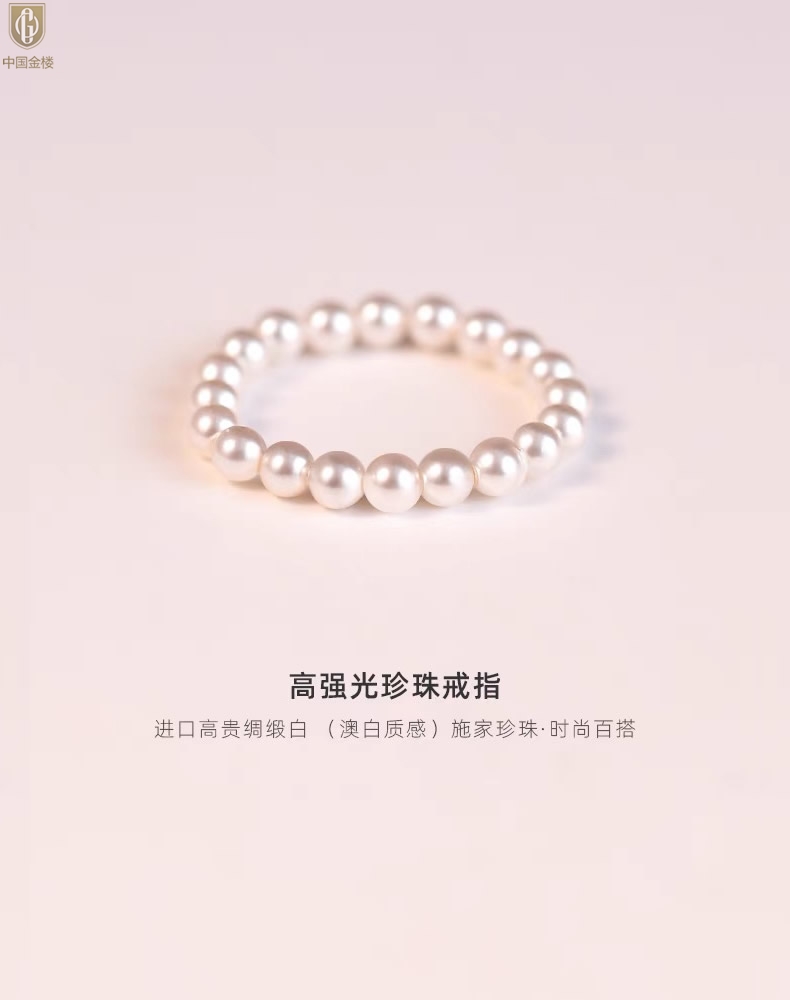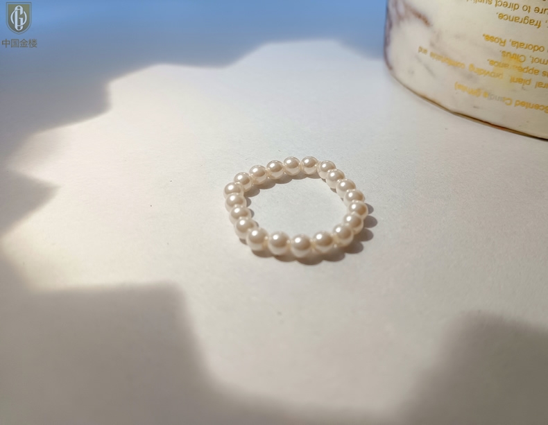 【品名】中国金楼奥地利进口正圆极光无暇奶油珍珠戒指