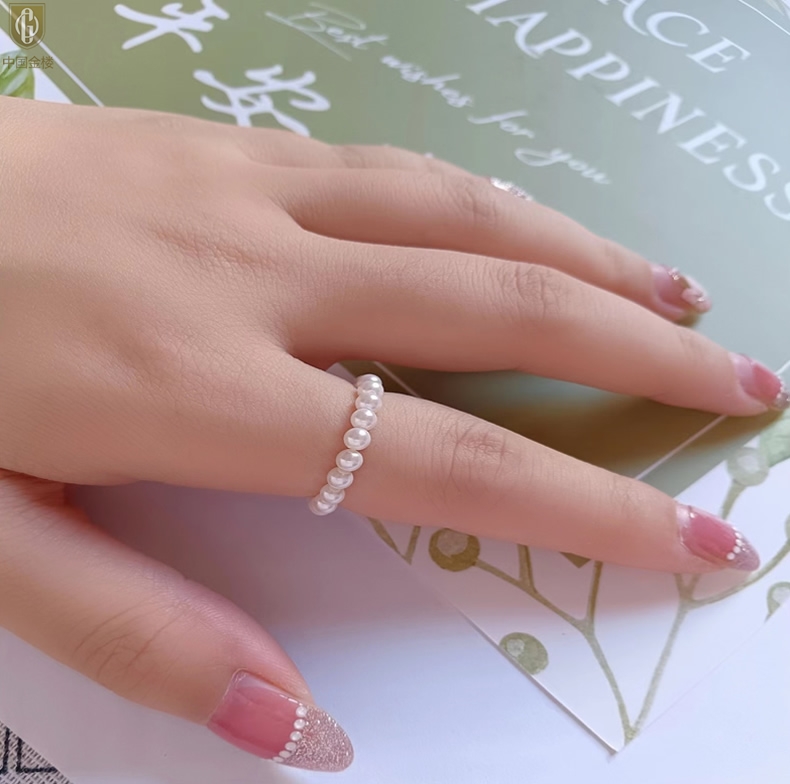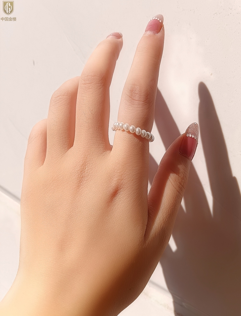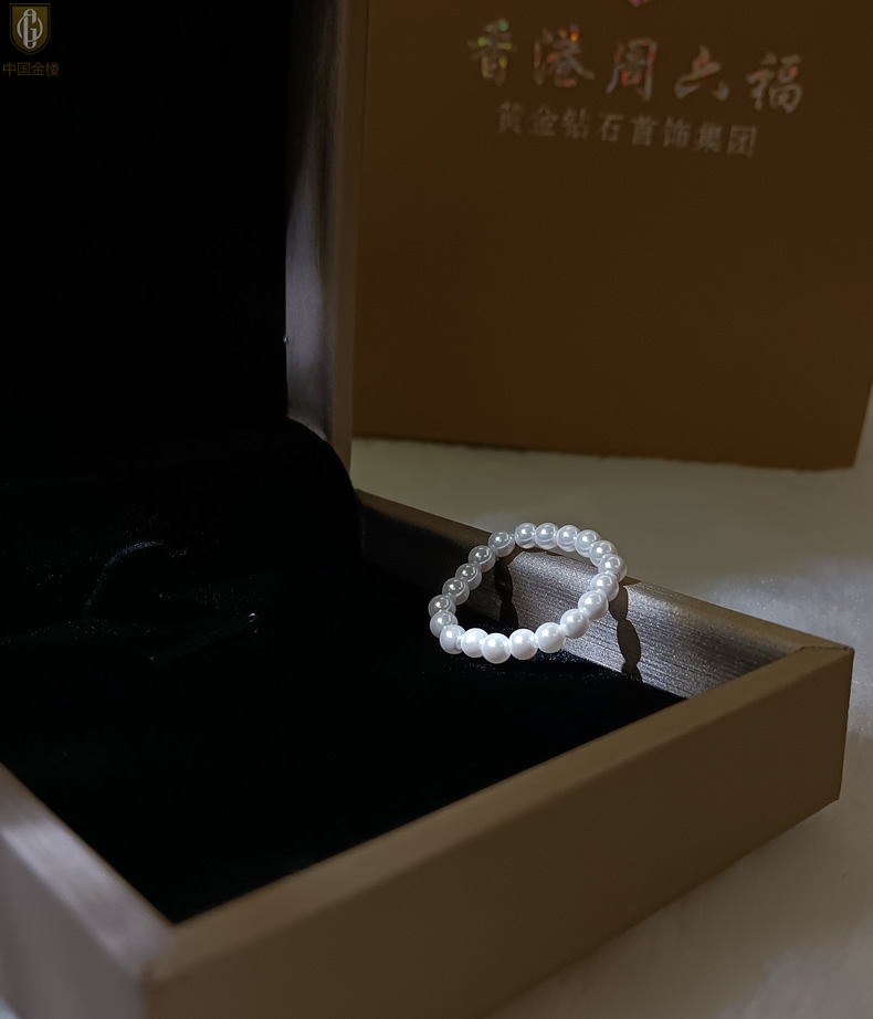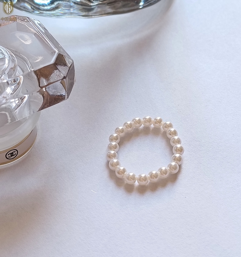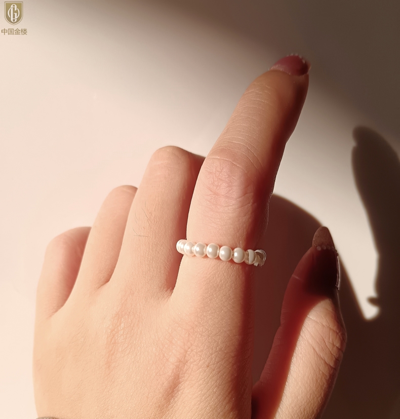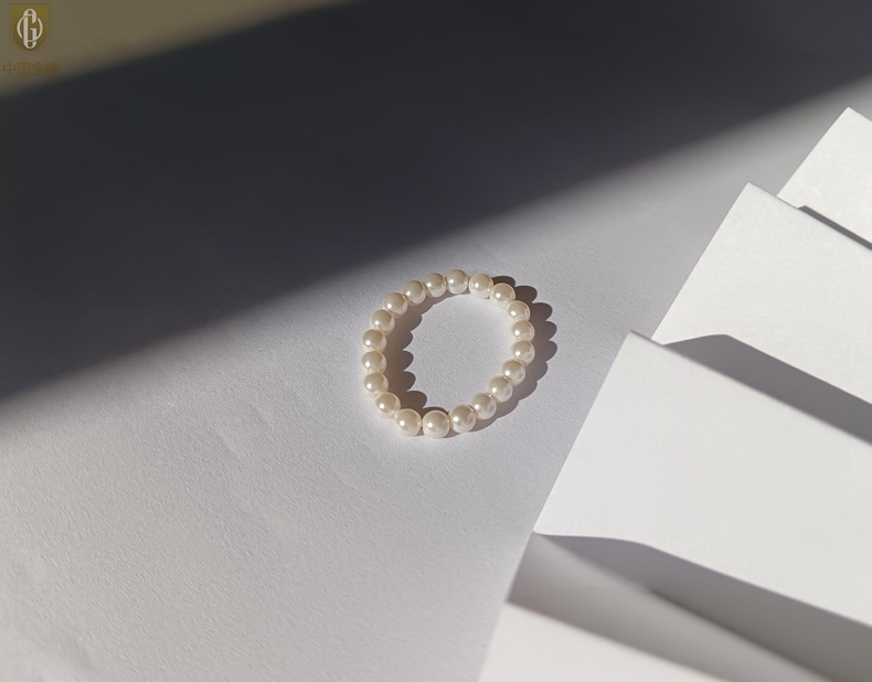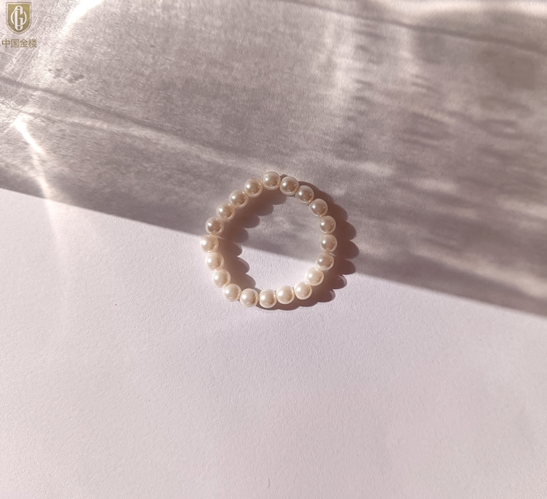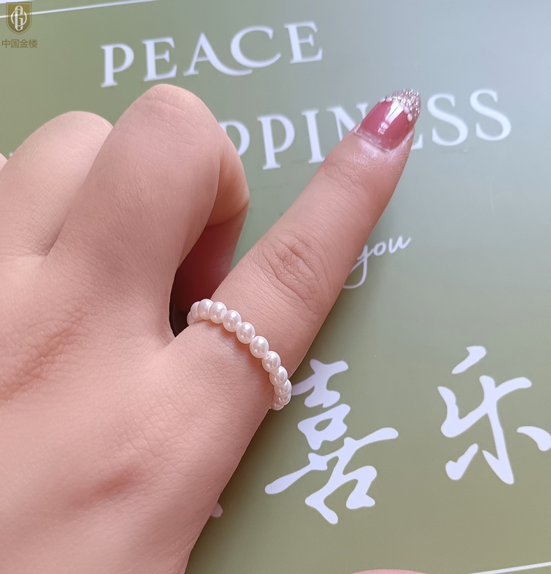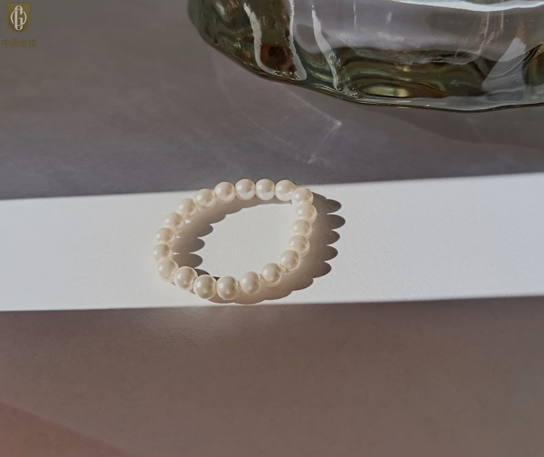 【品名】中国金楼奥地利进口正圆极光无暇奶油珍珠戒指