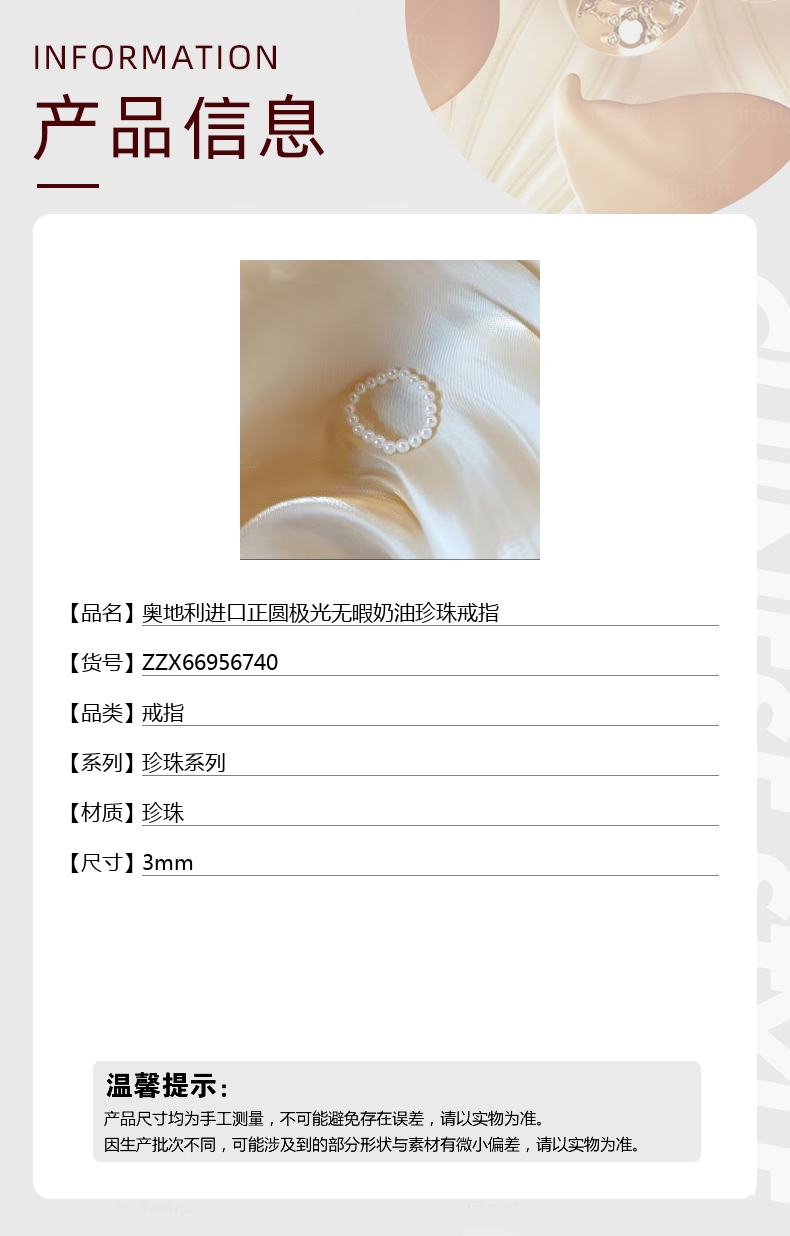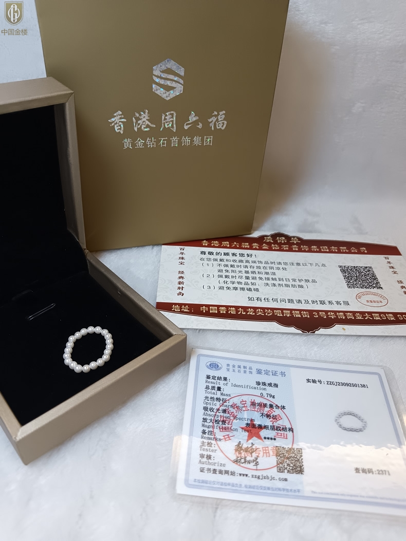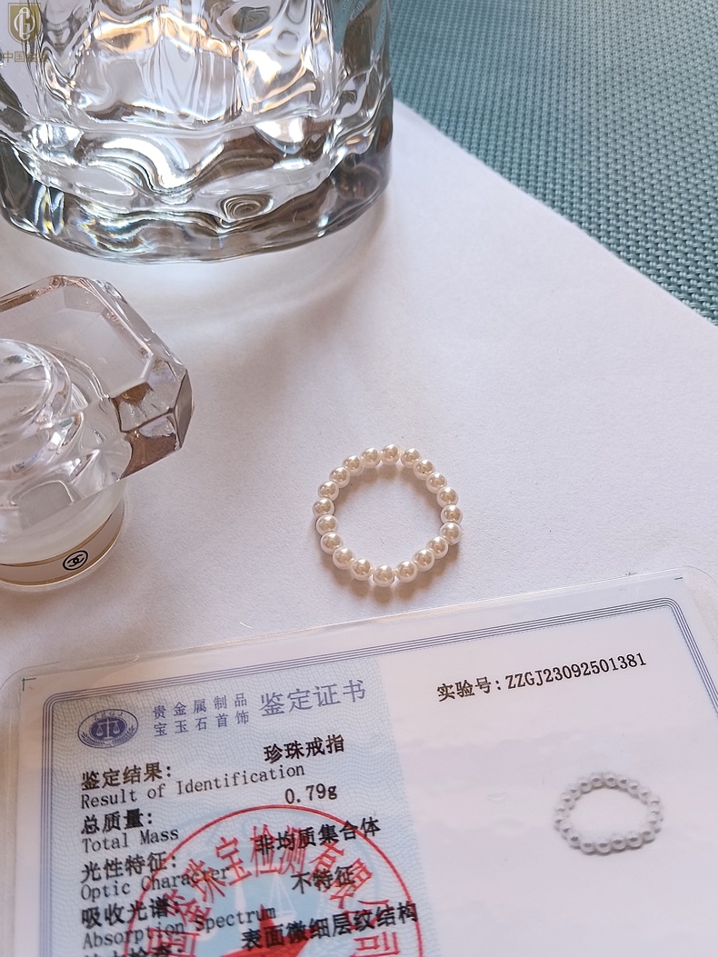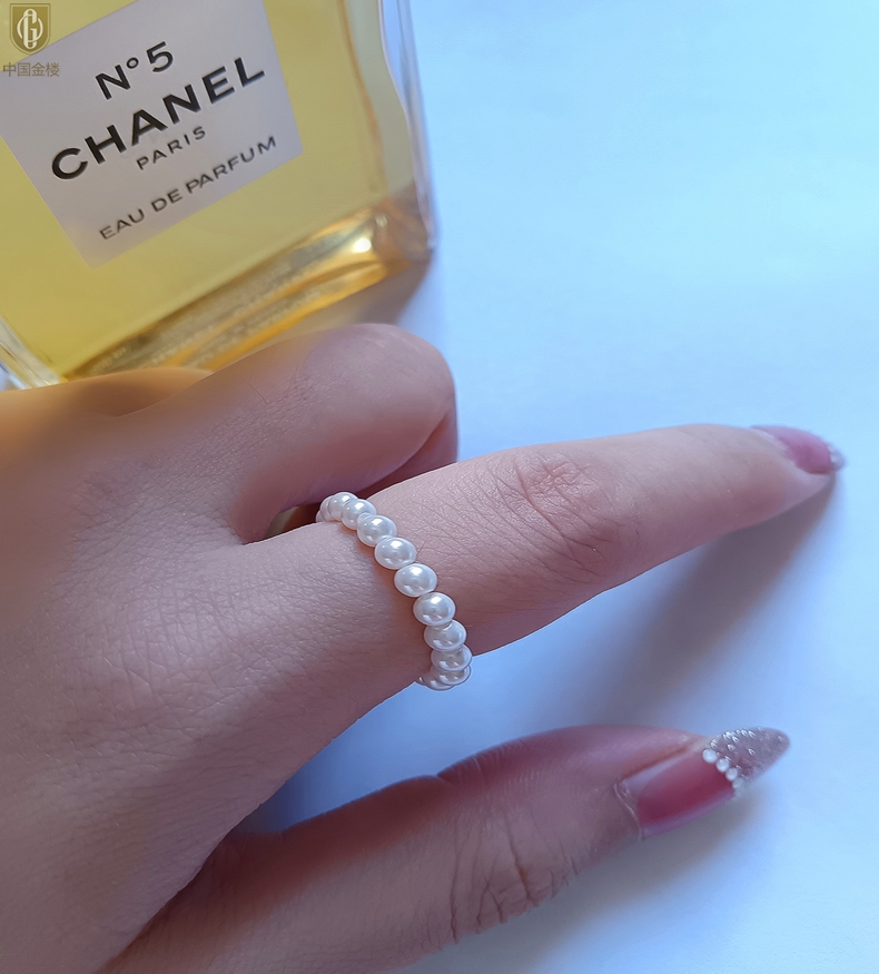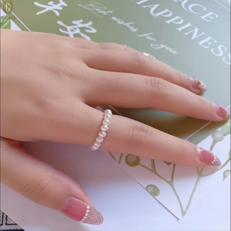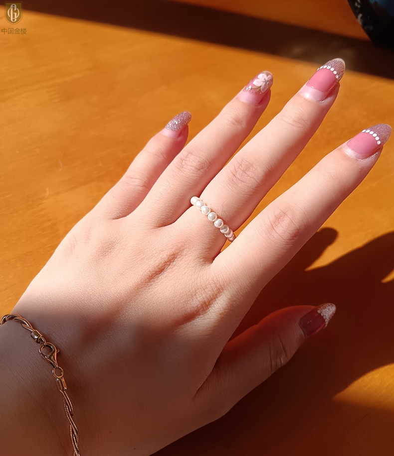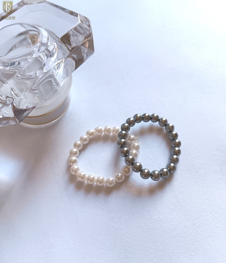 【品名】中国金楼奥地利进口正圆极光无暇奶油珍珠戒指
