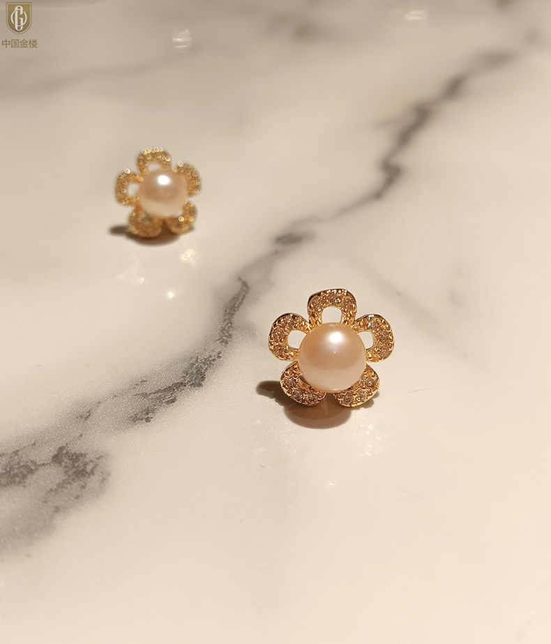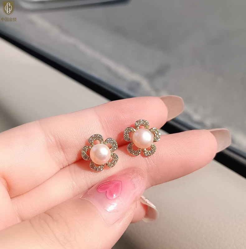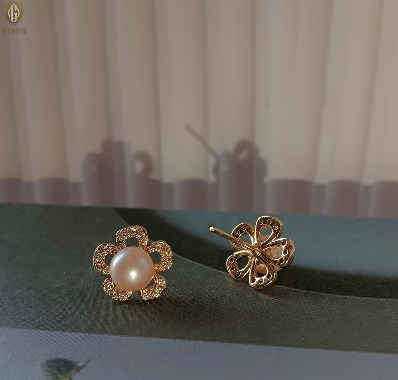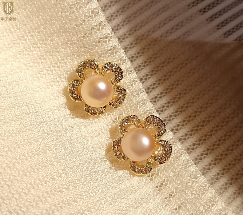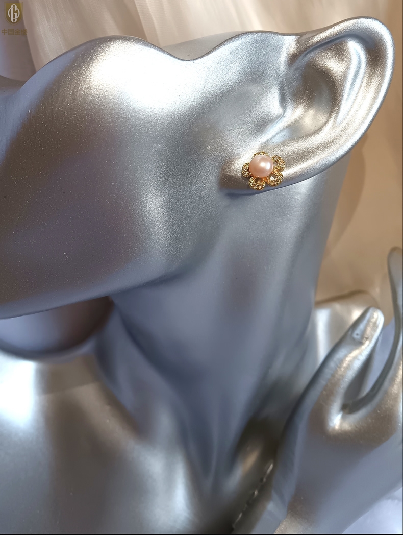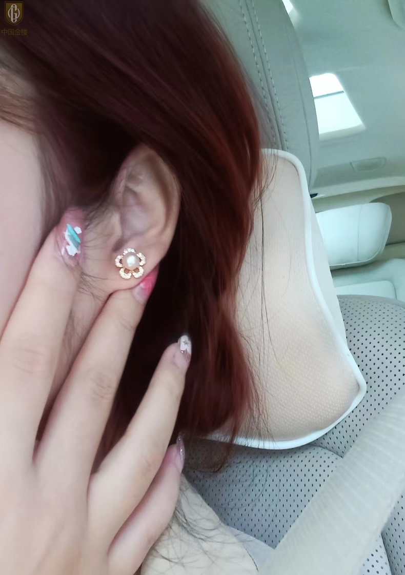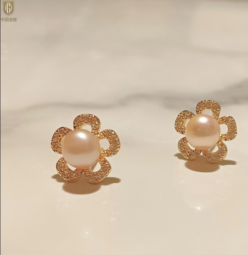 【品名】中国金楼天然珍珠豪镶满钻太阳花朵耳钉(对)