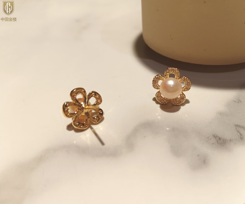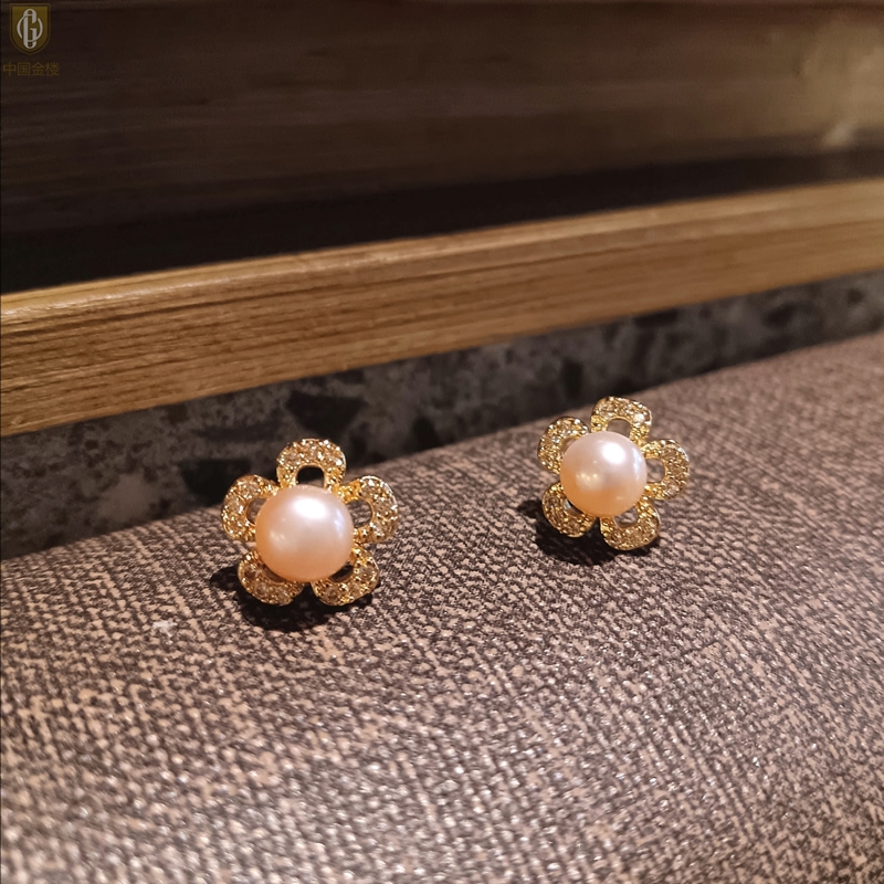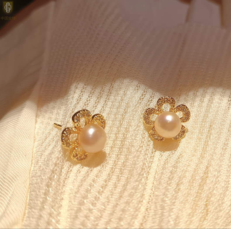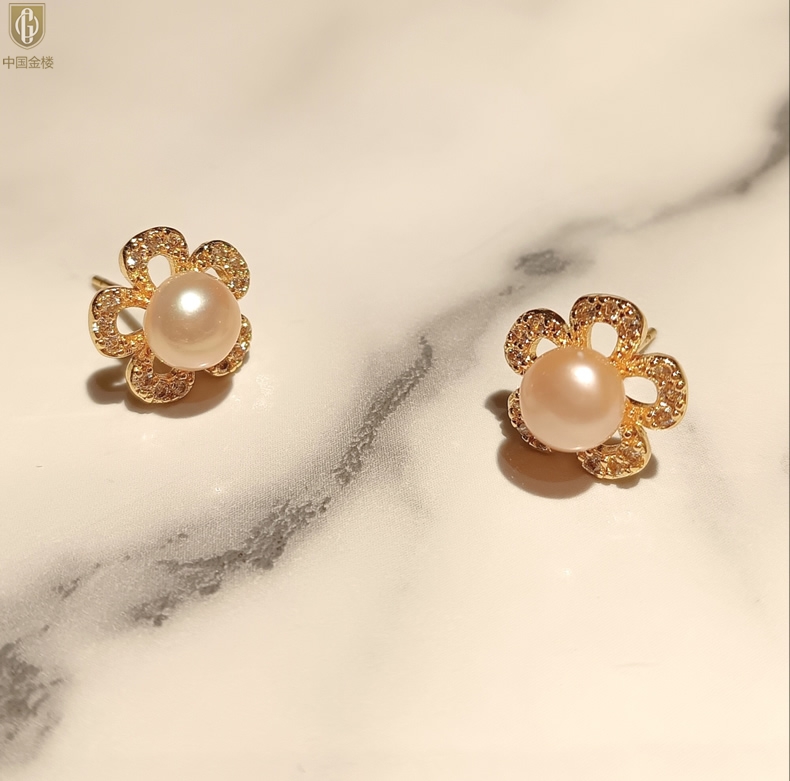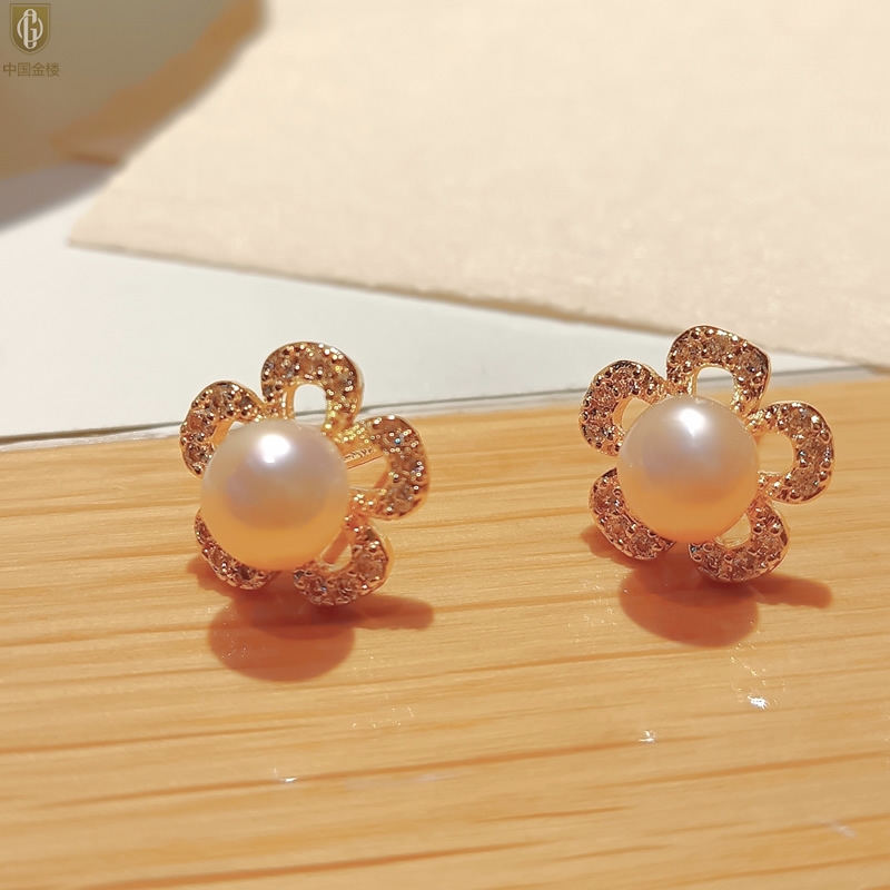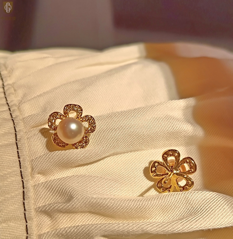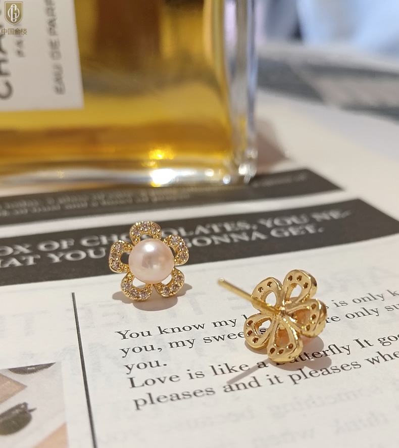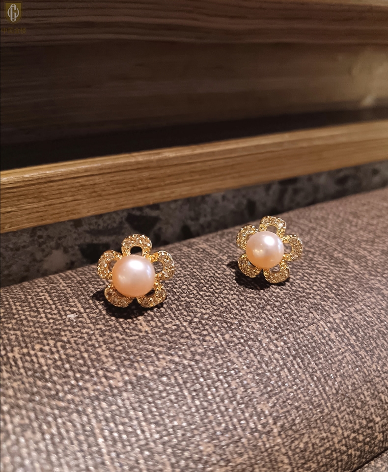 【品名】中国金楼天然珍珠豪镶满钻太阳花朵耳钉(对)