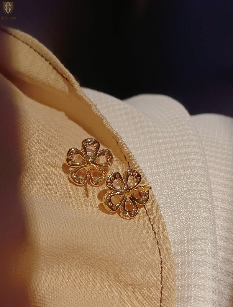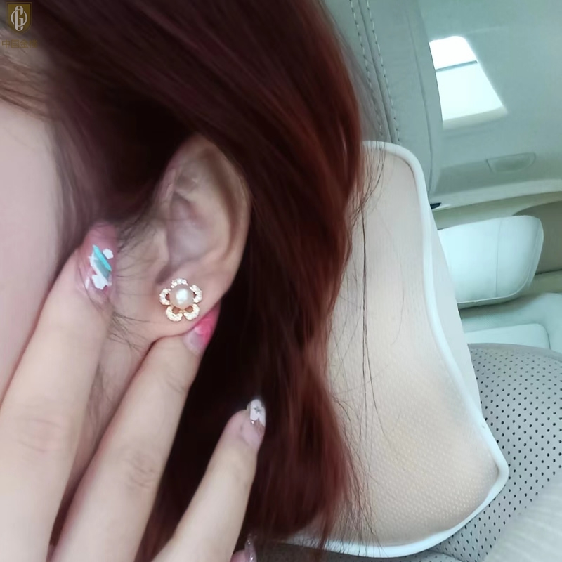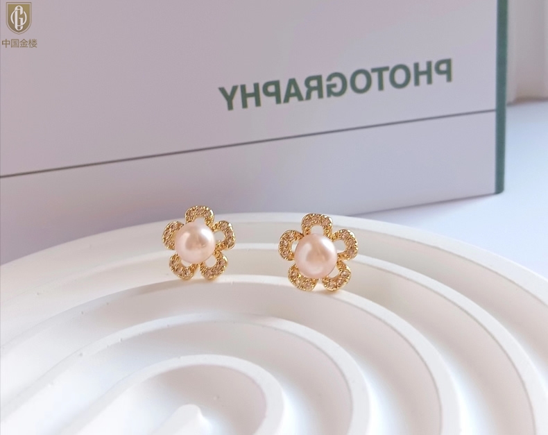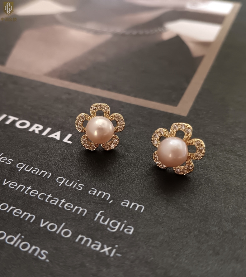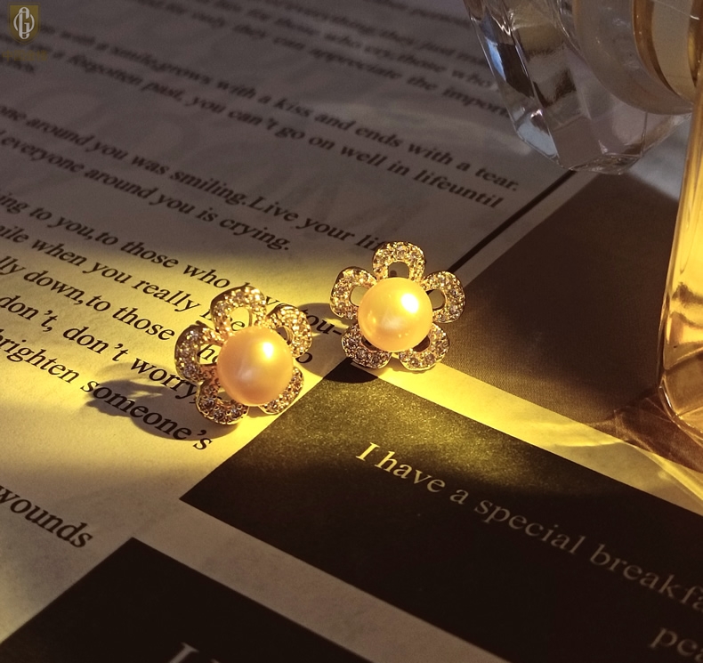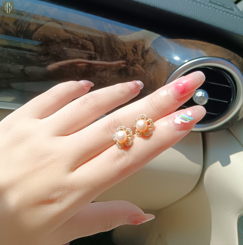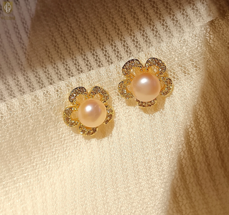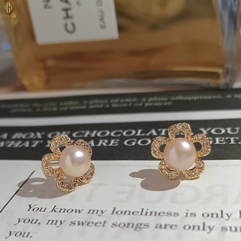 【品名】中国金楼天然珍珠豪镶满钻太阳花朵耳钉(对)