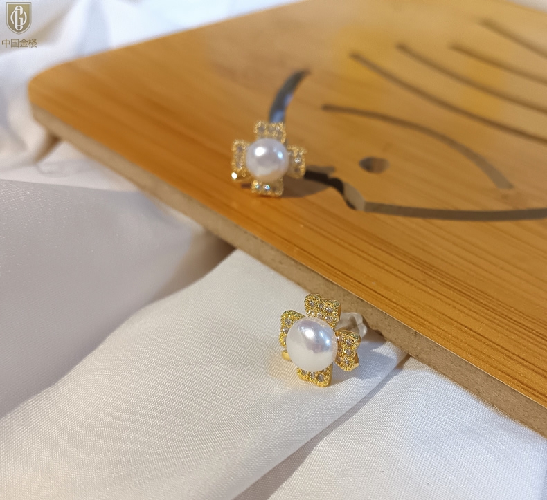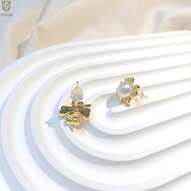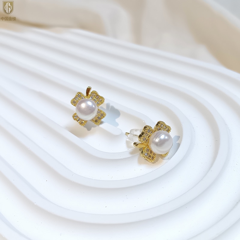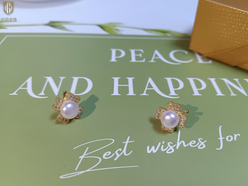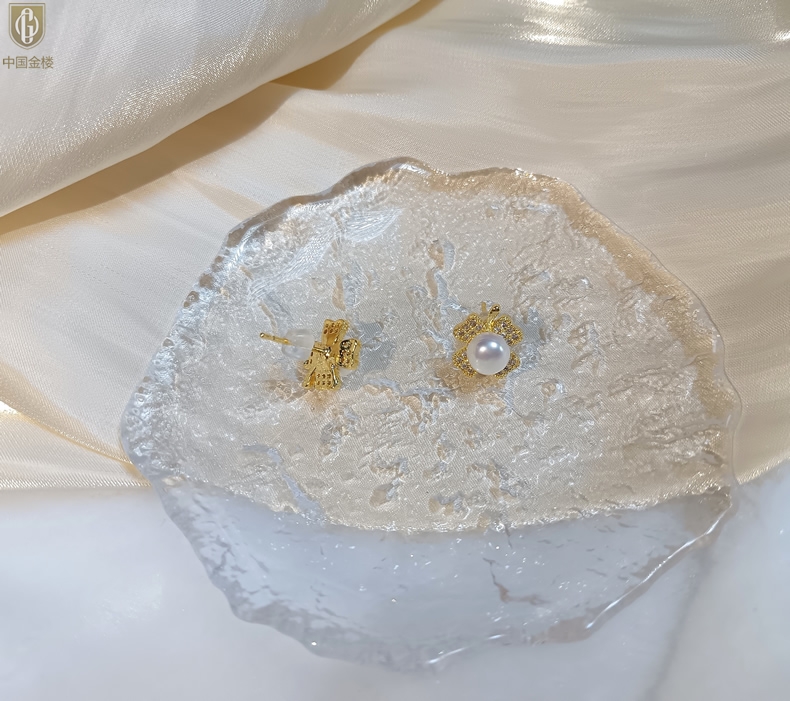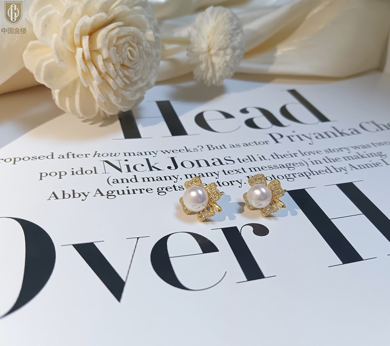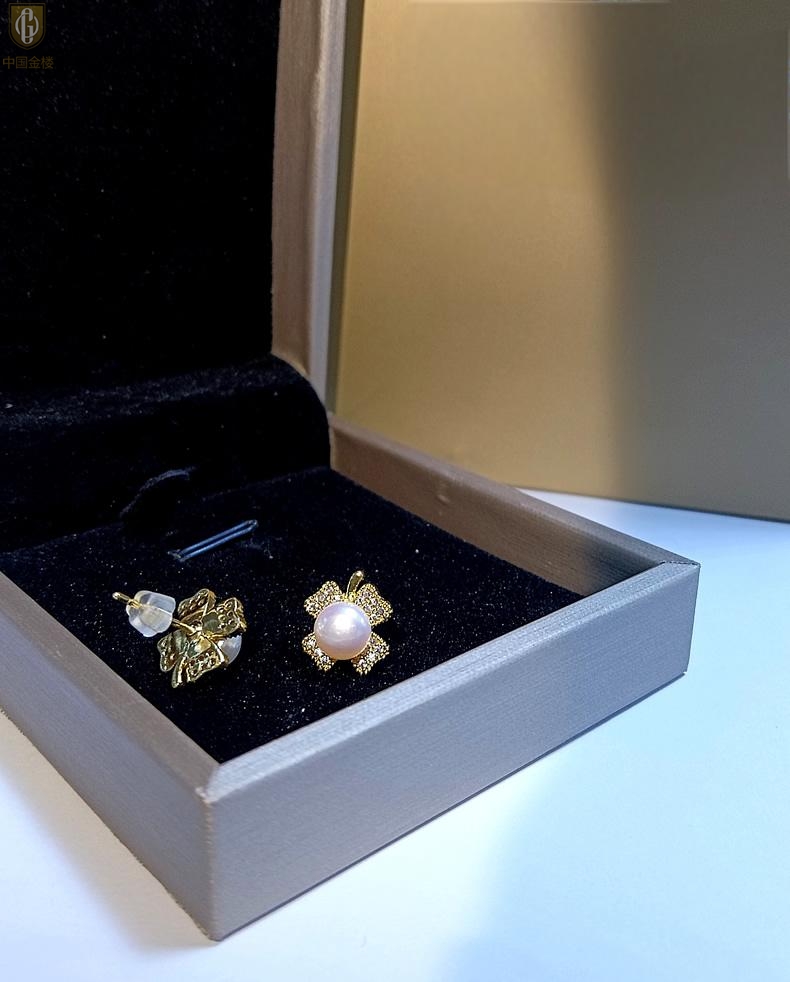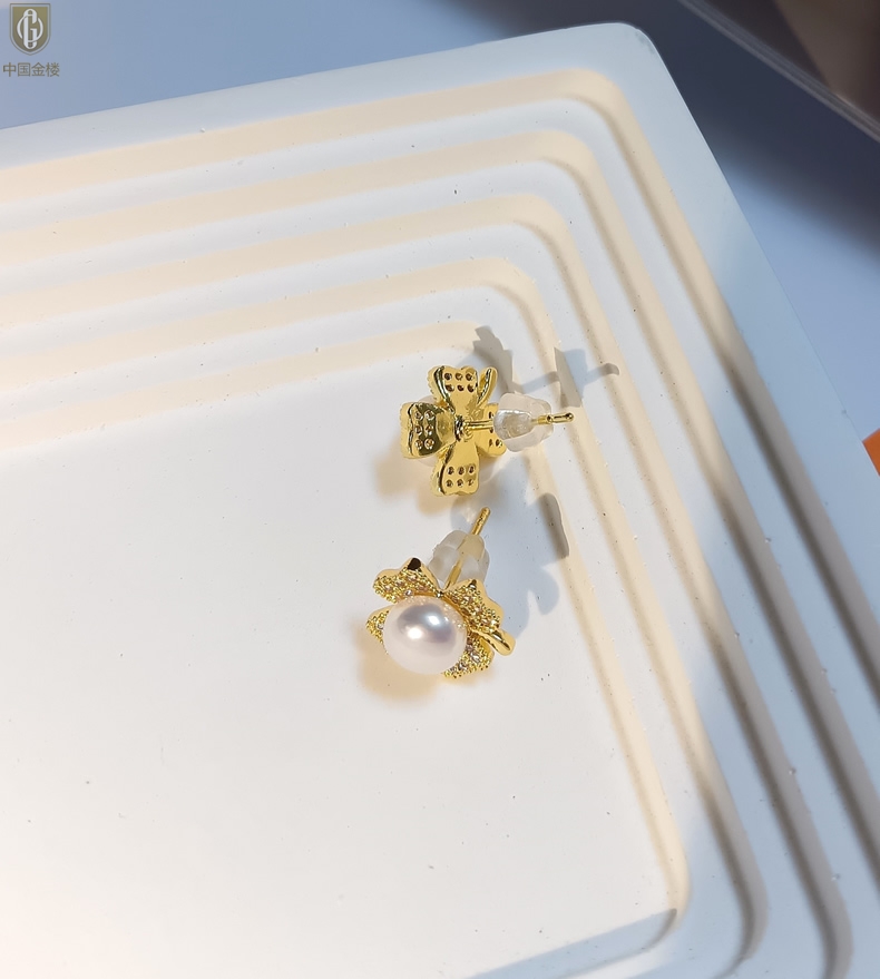 【品名】中国金楼天然珍珠豪镶满钻云南花耳钉(对)