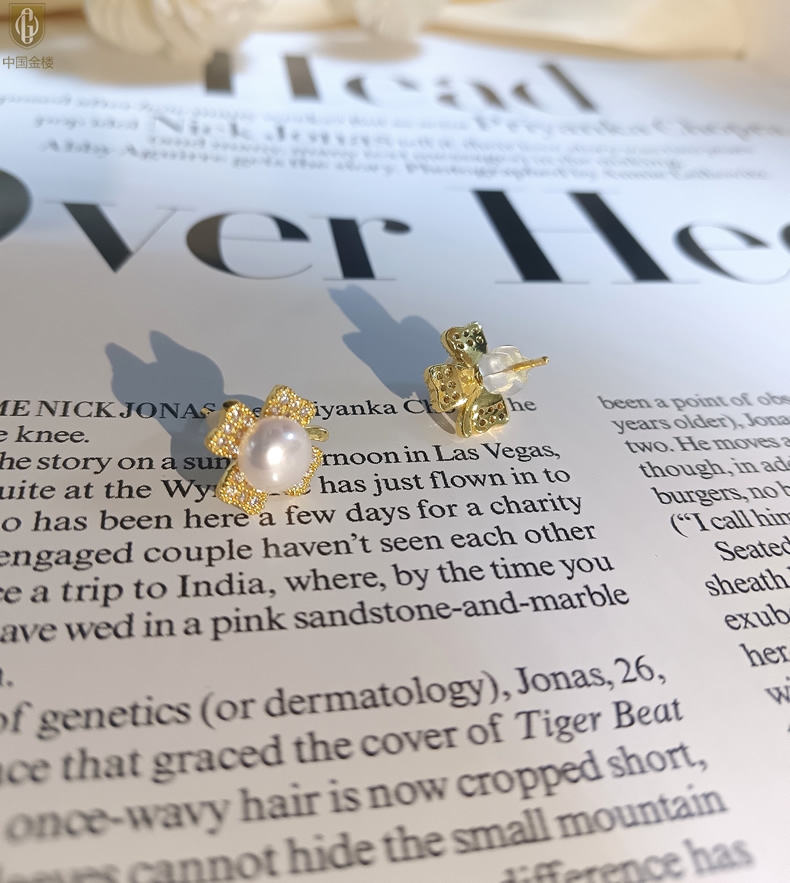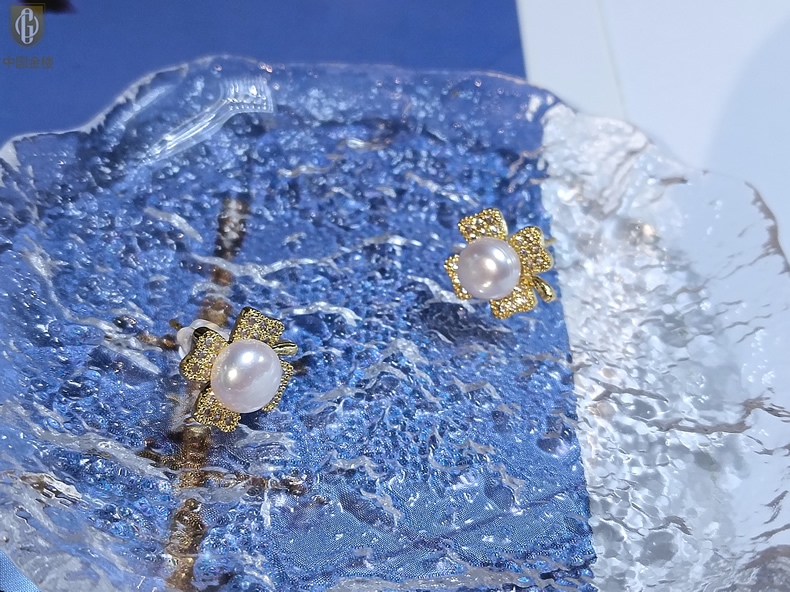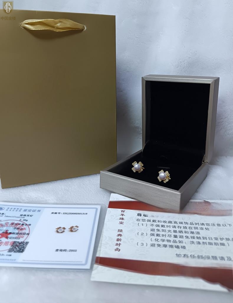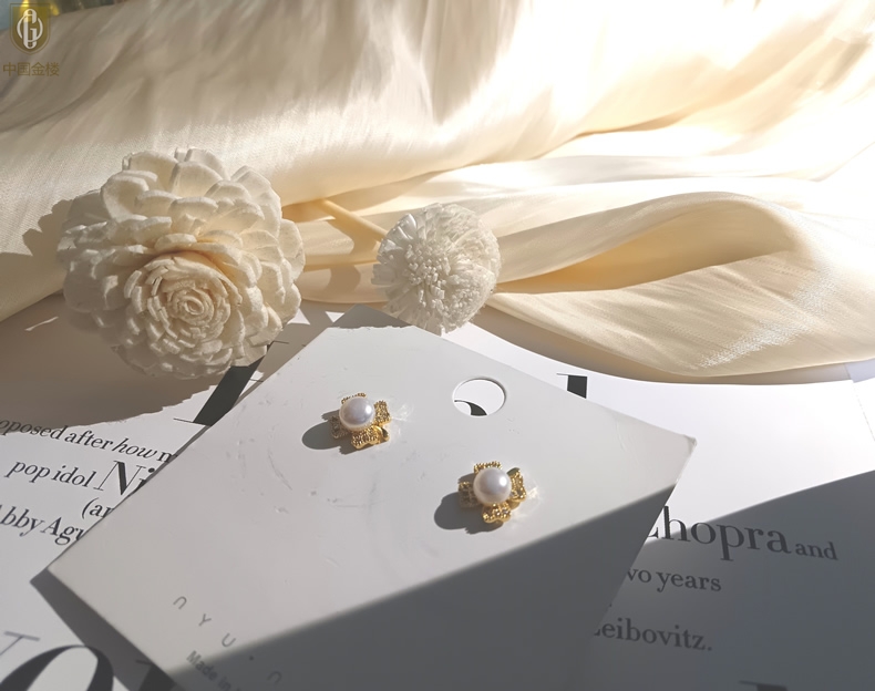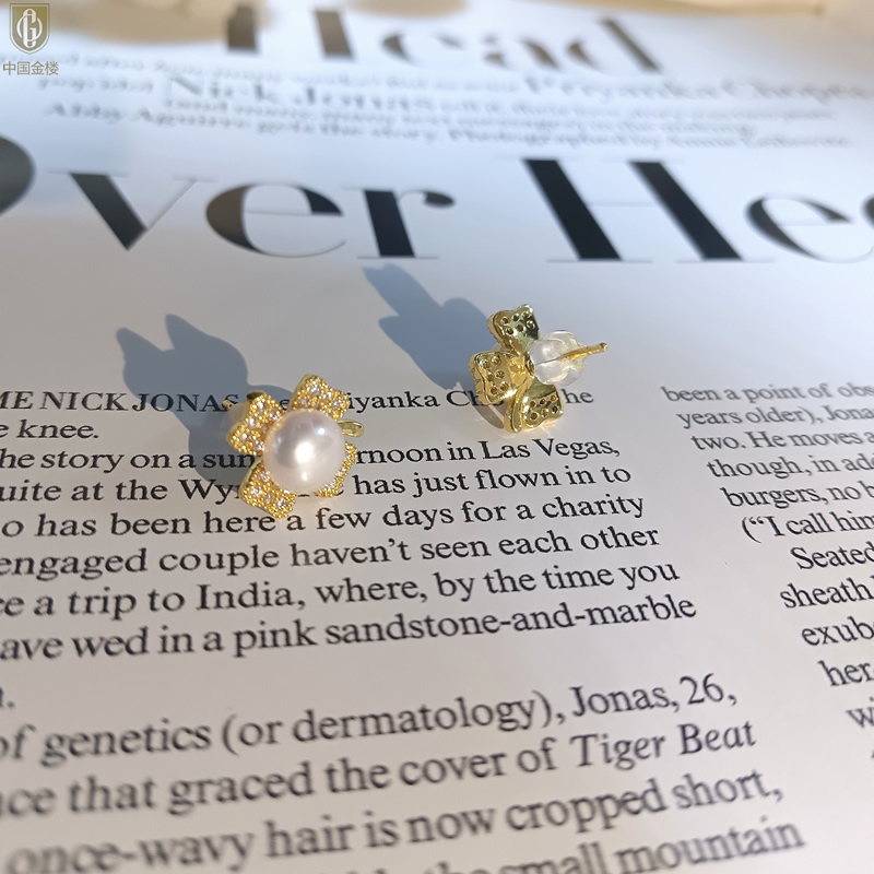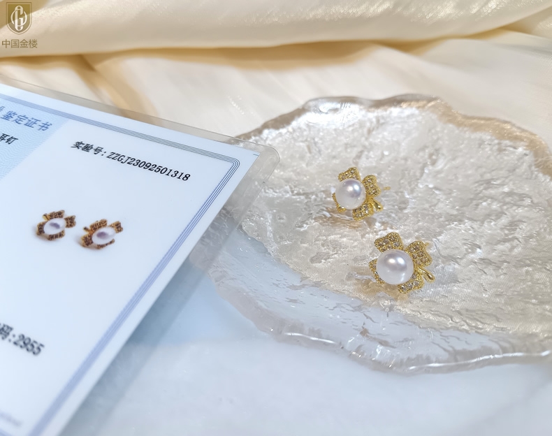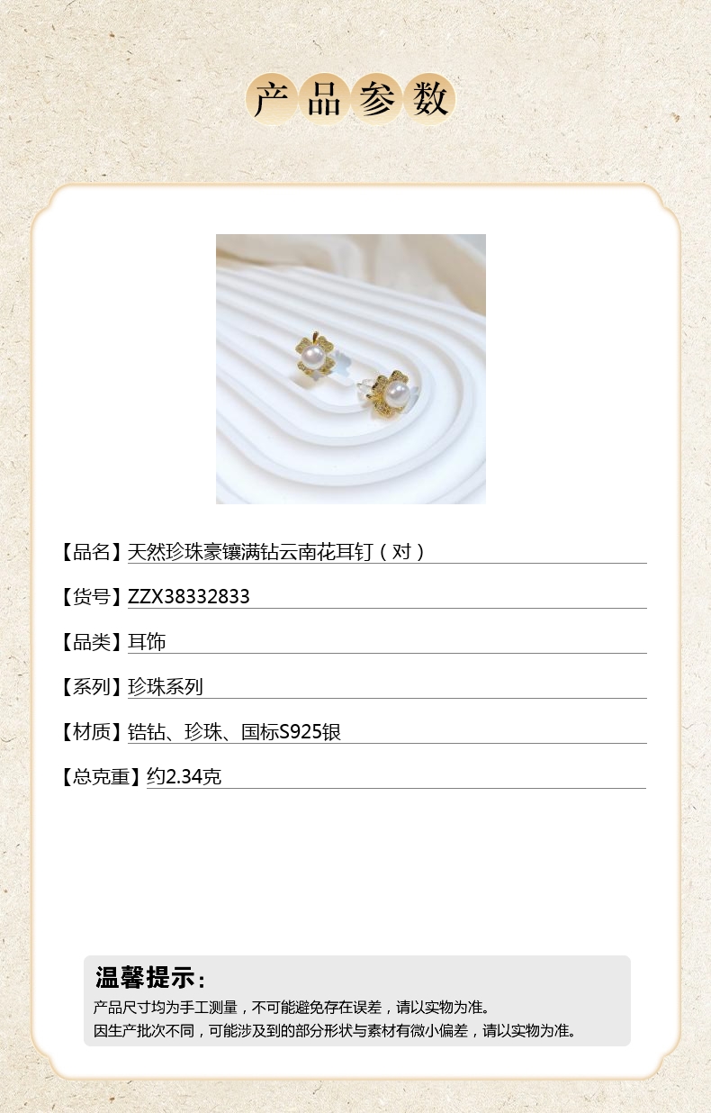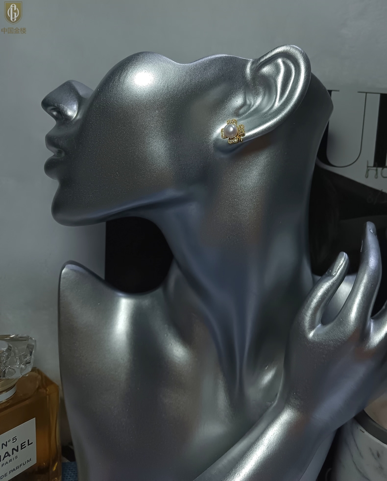 【品名】中国金楼天然珍珠豪镶满钻云南花耳钉(对)