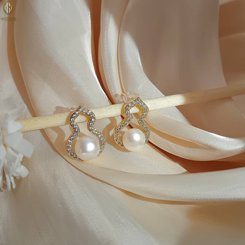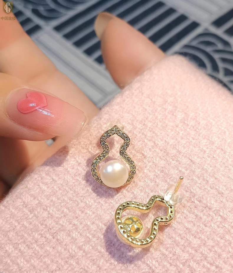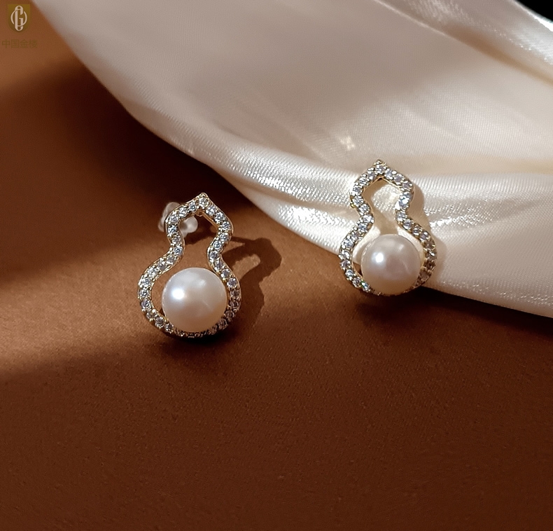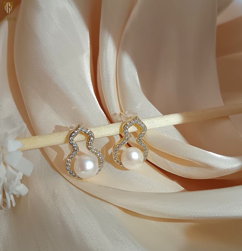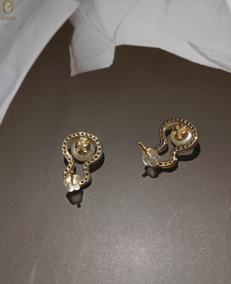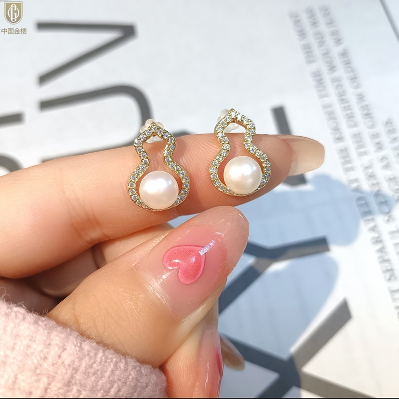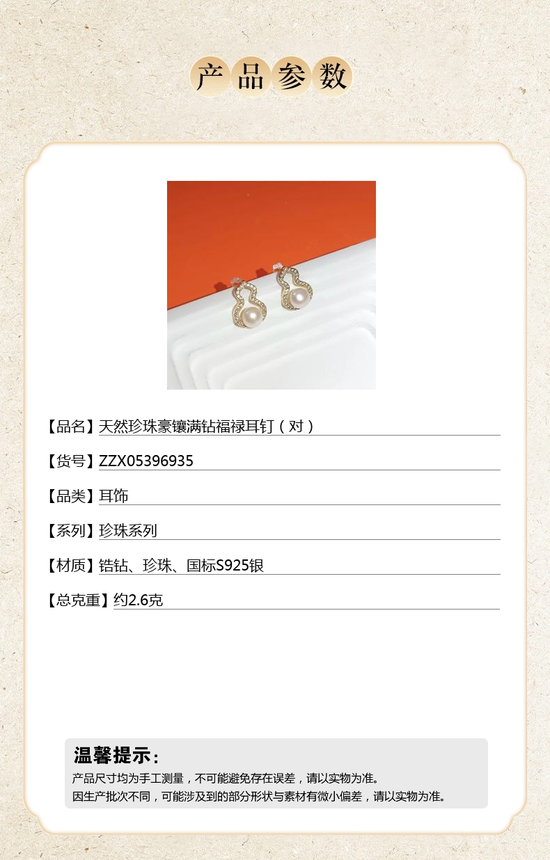 【品名】中国金楼天然珍珠豪镶满钻福禄耳钉(对)