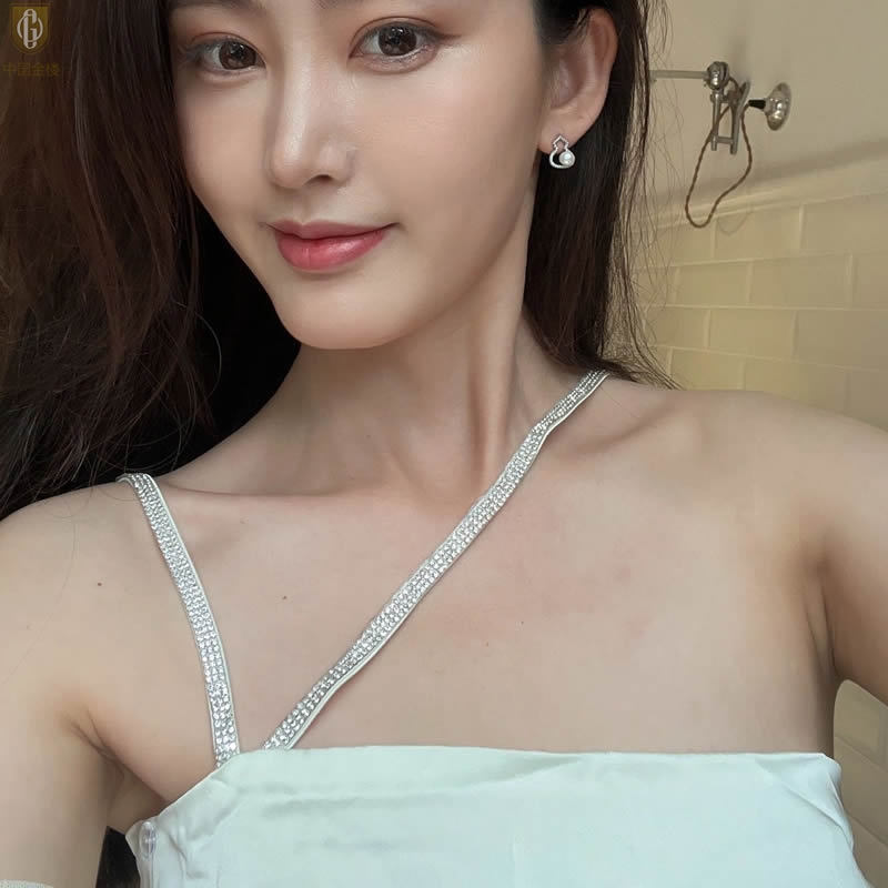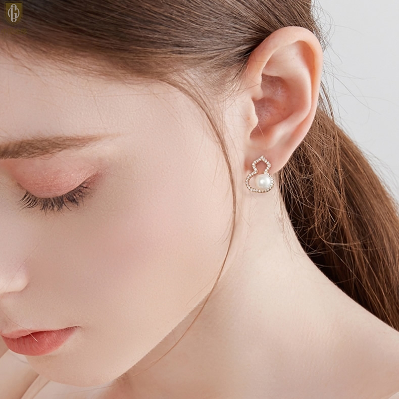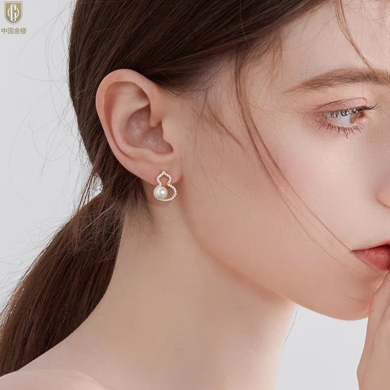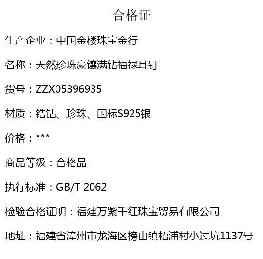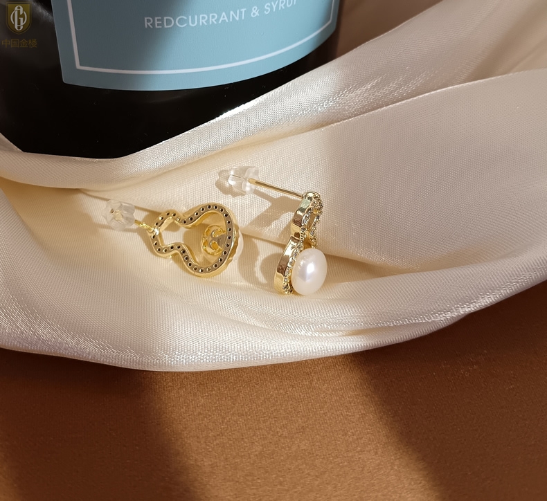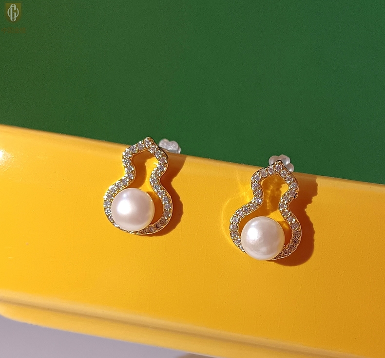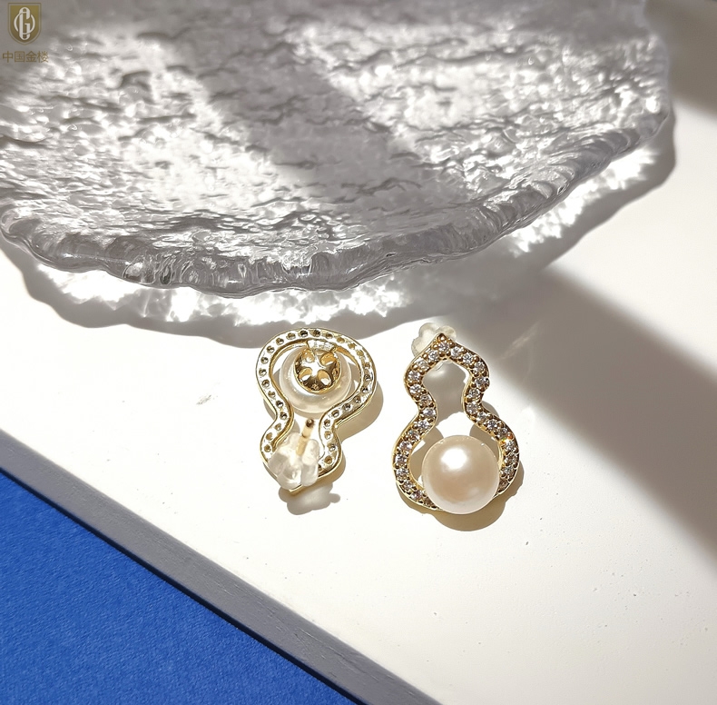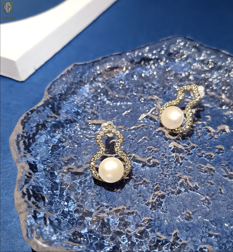 【品名】中国金楼天然珍珠豪镶满钻福禄耳钉(对)