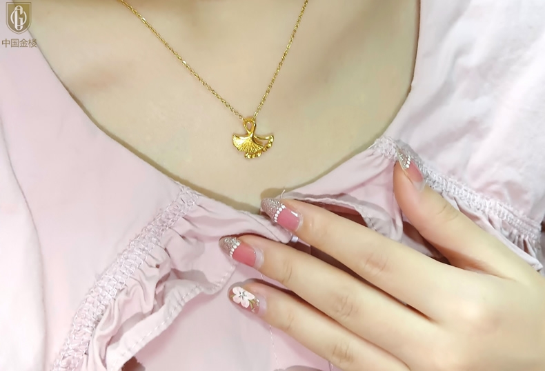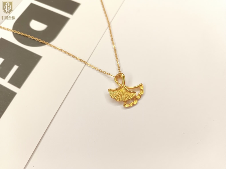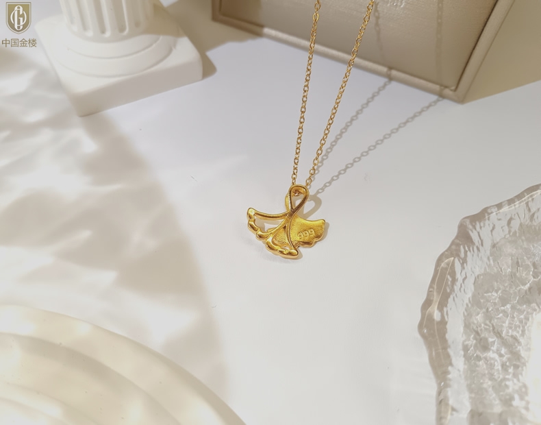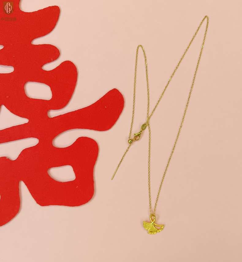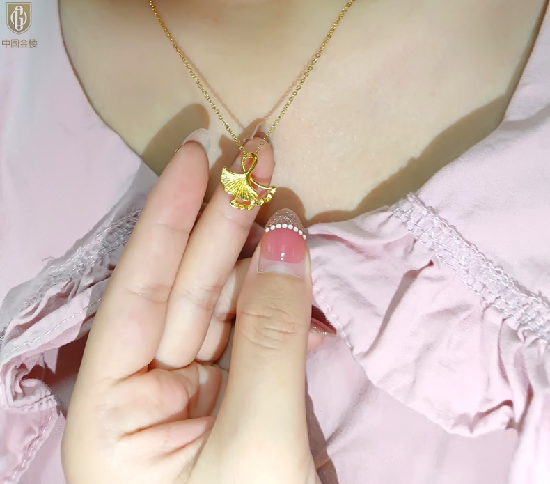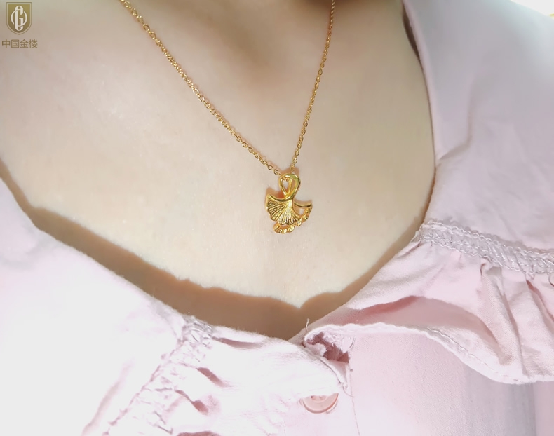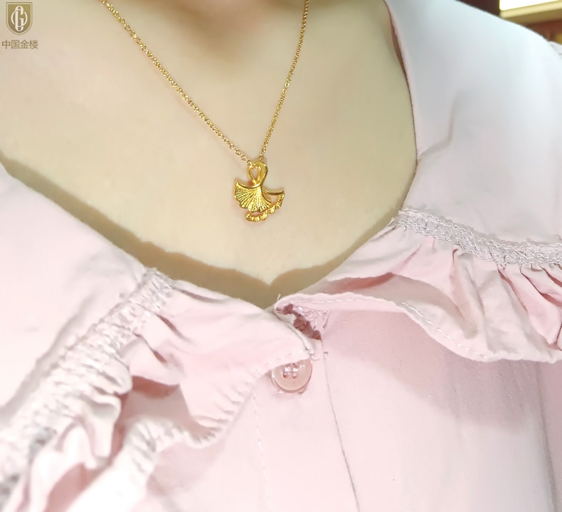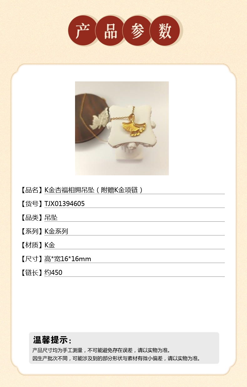 【品名】中国金楼K金杏福相拥吊坠(附赠K金项链)