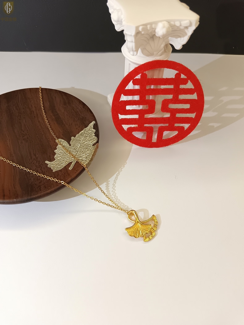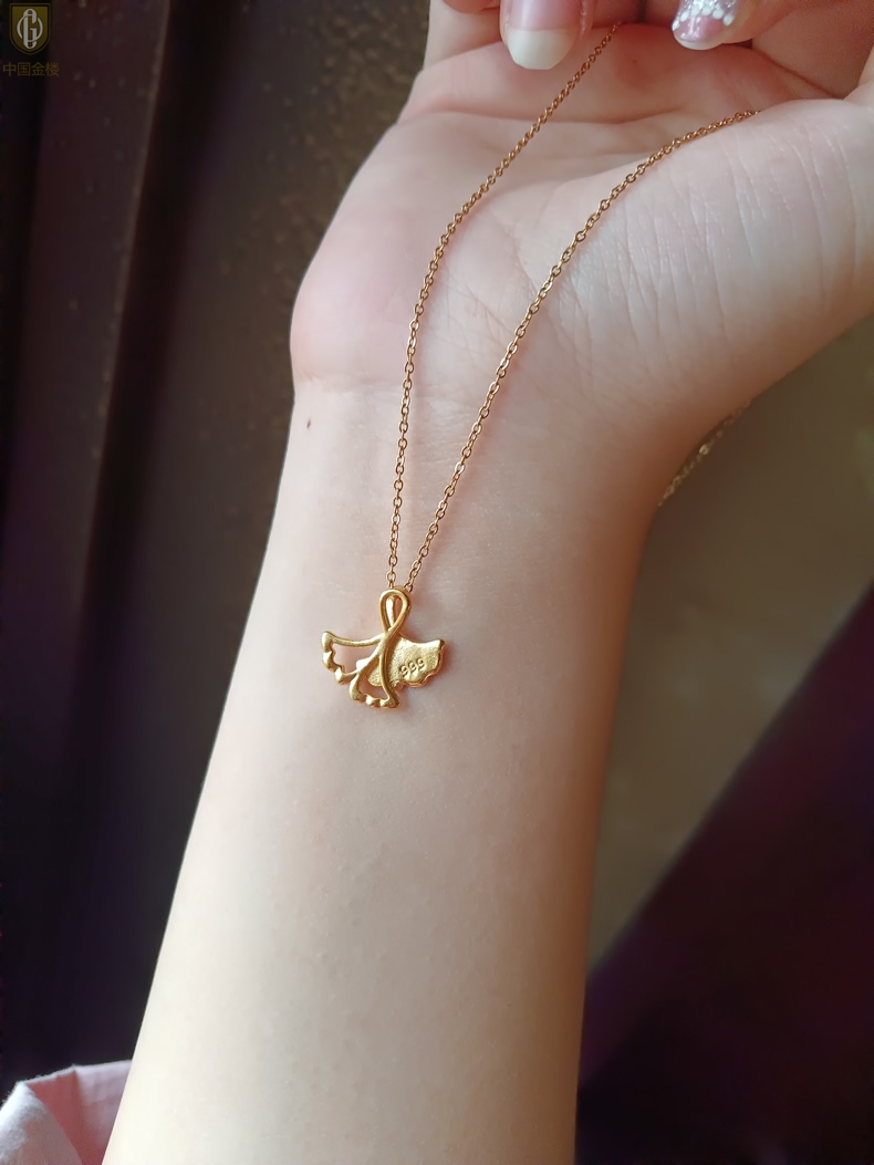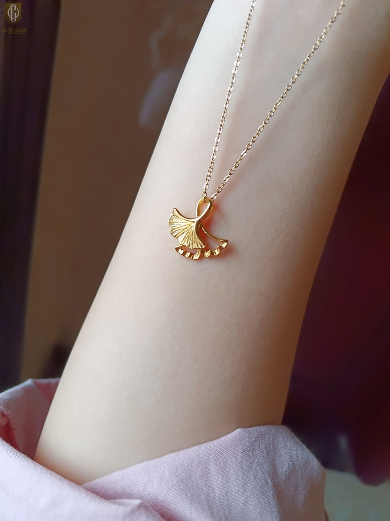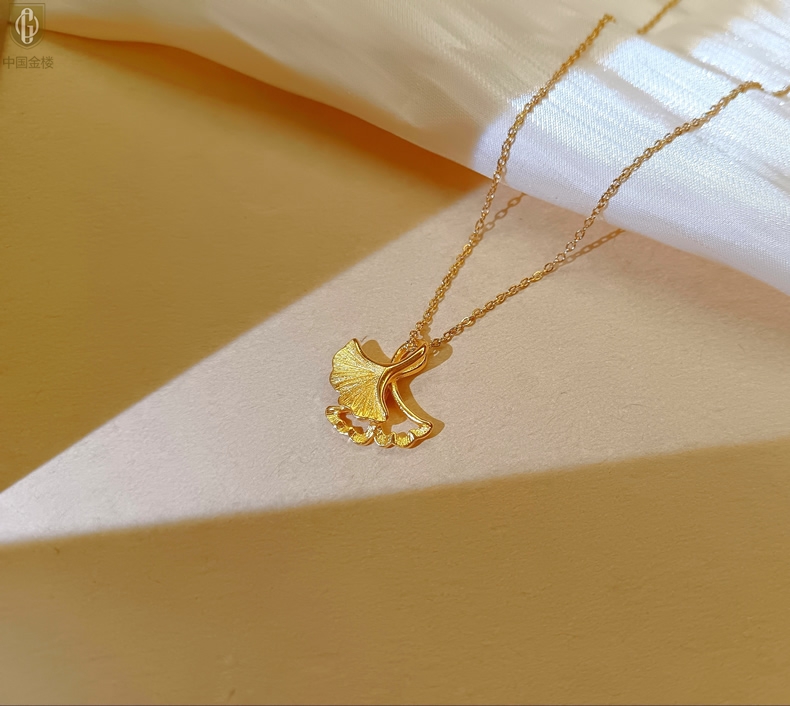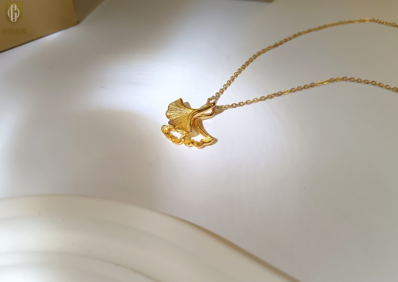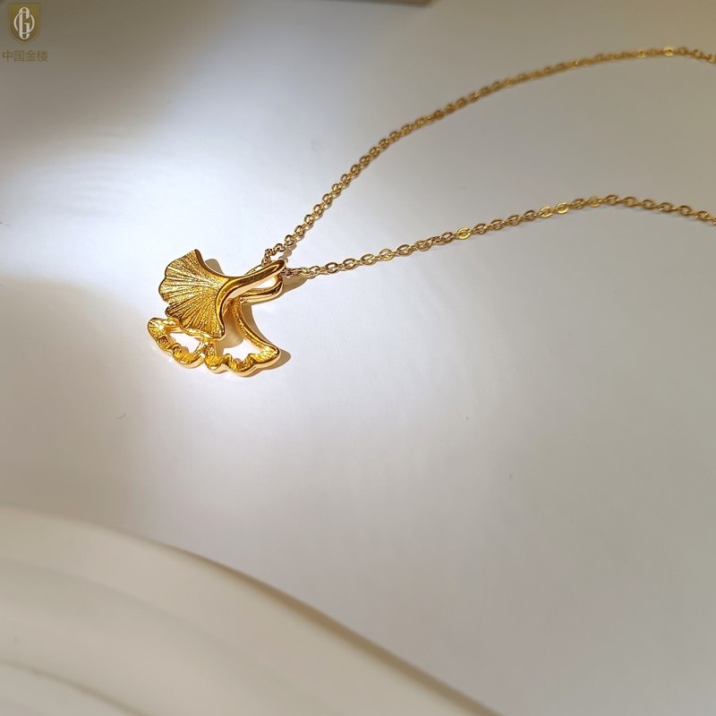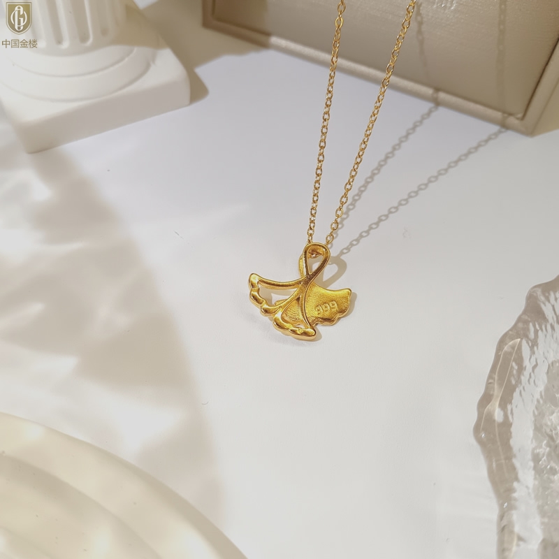 【品名】中国金楼K金杏福相拥吊坠(附赠K金项链)