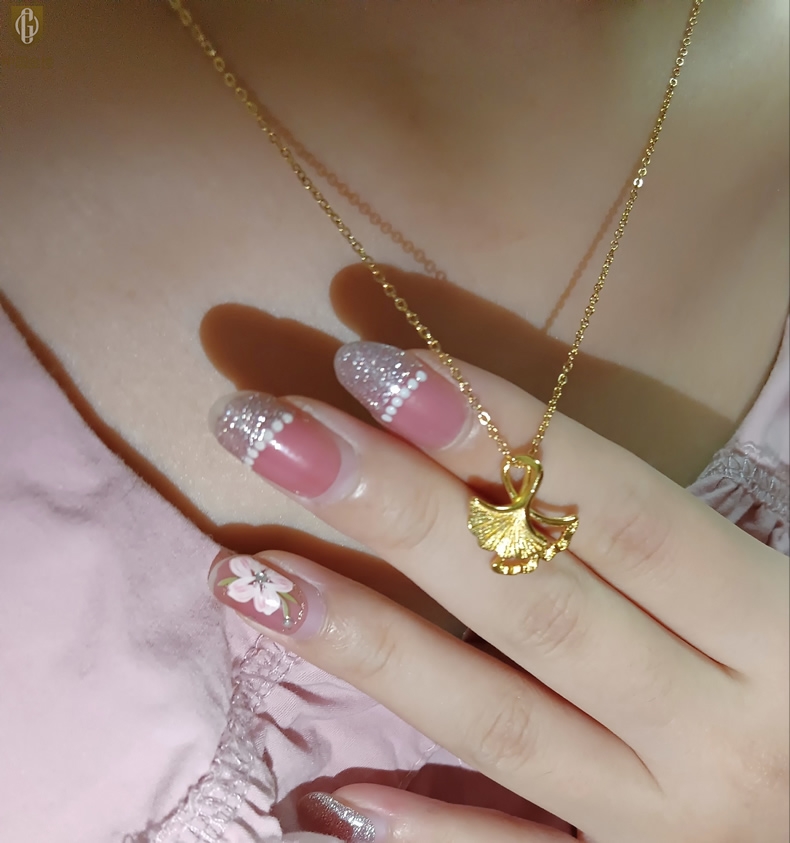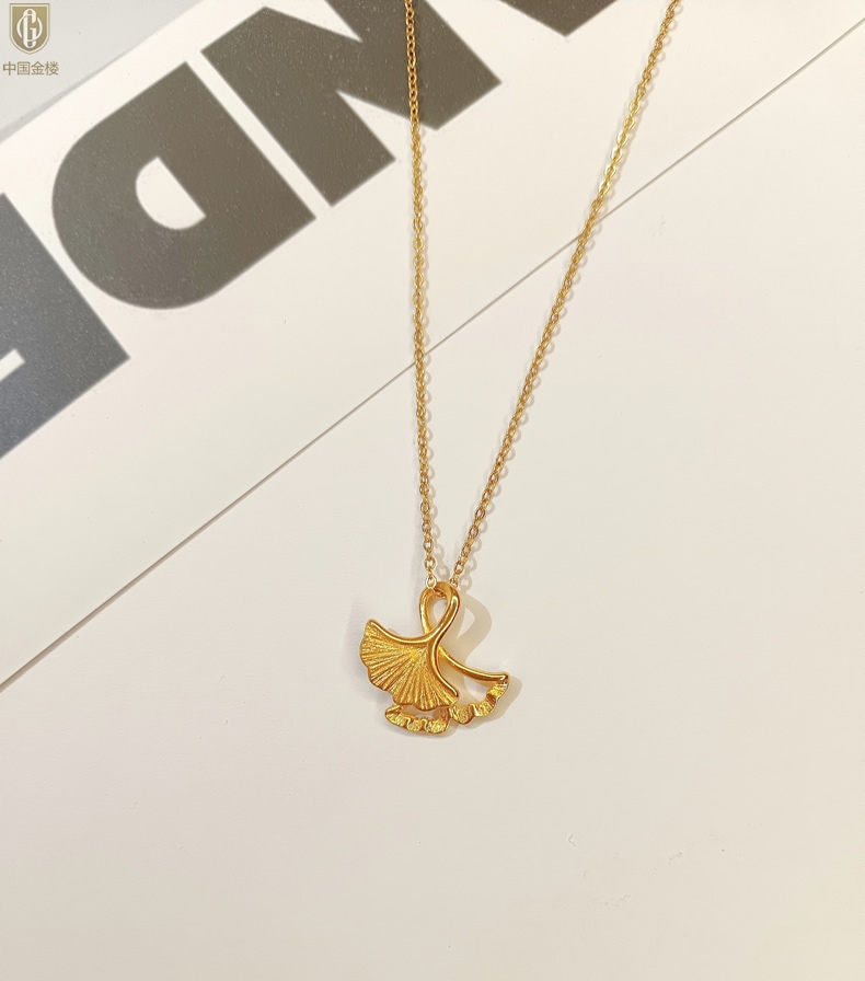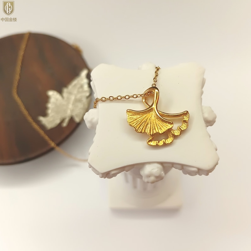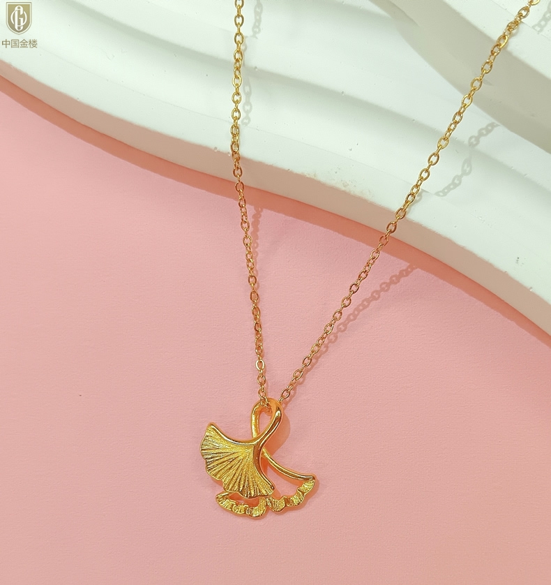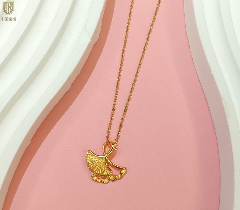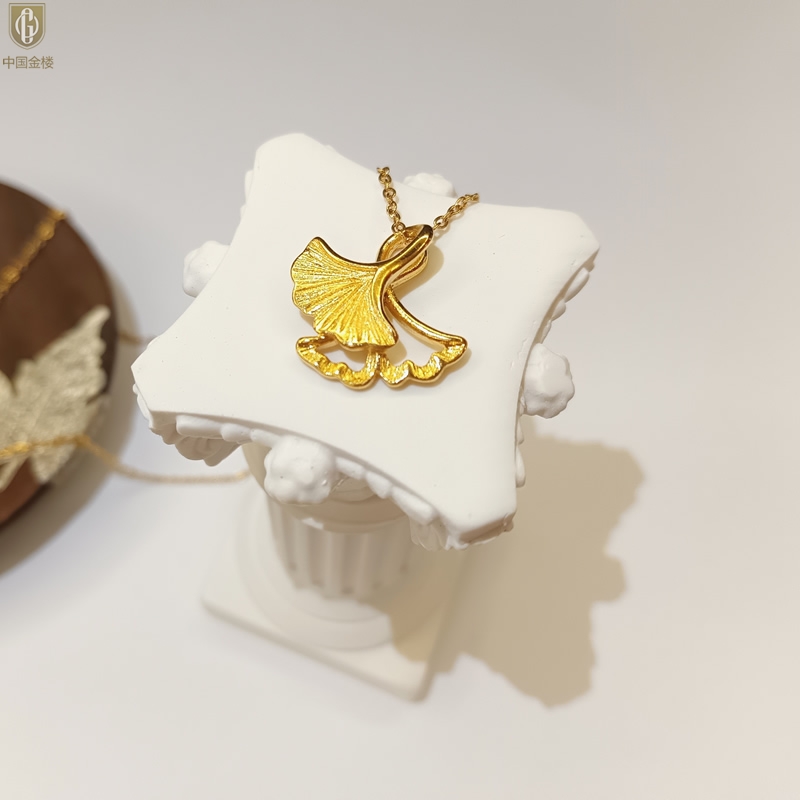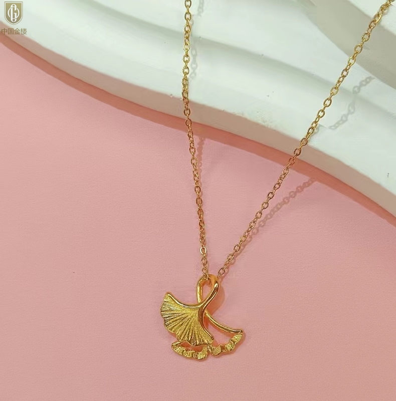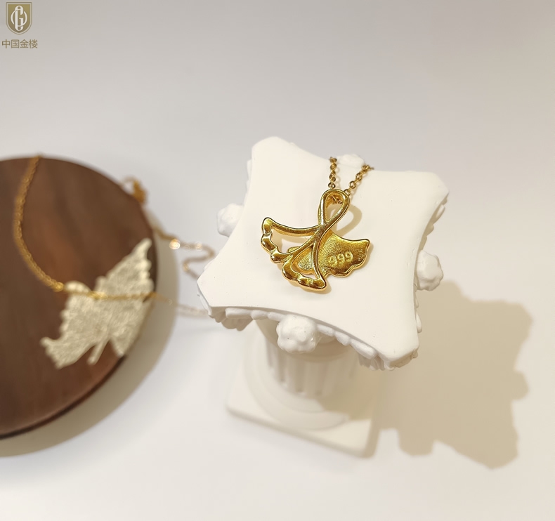 【品名】中国金楼K金杏福相拥吊坠(附赠K金项链)