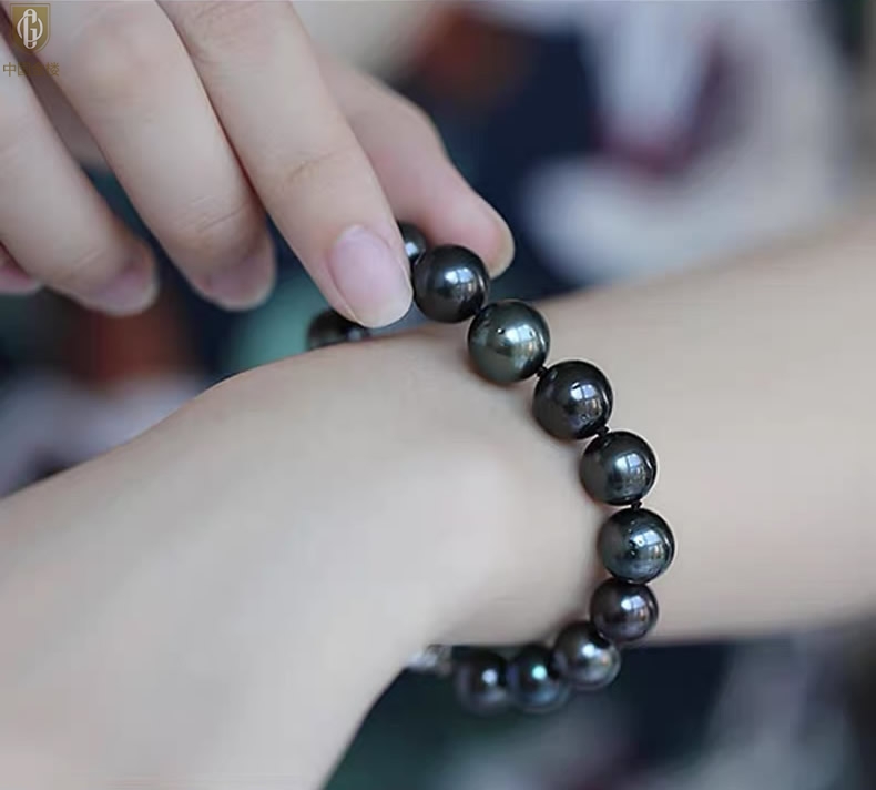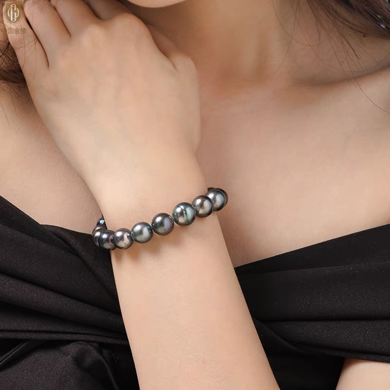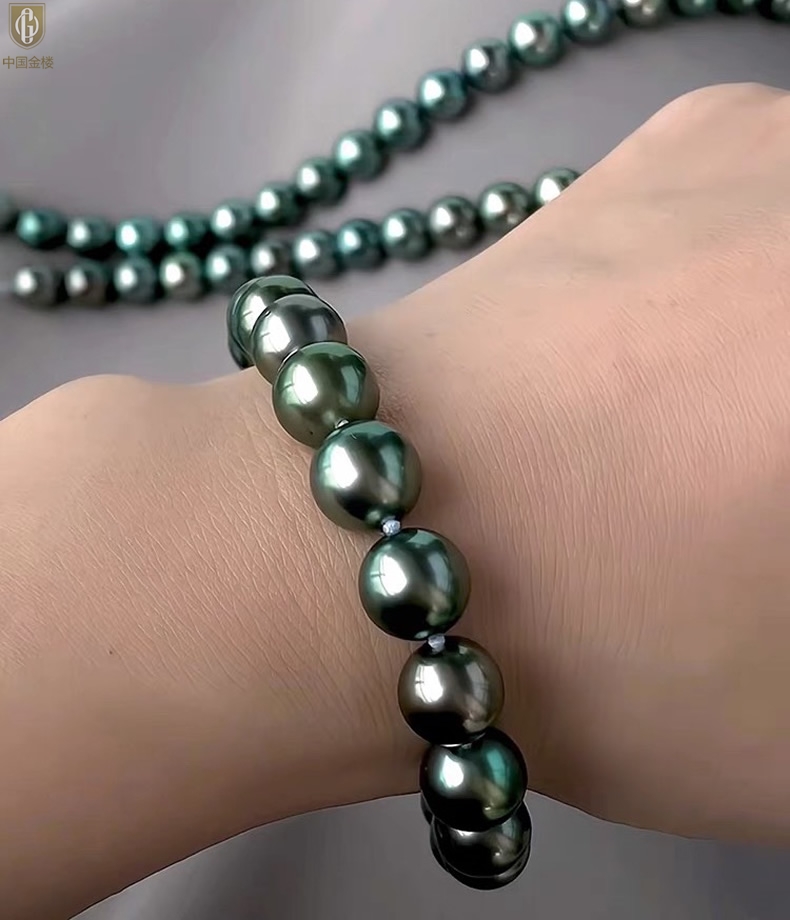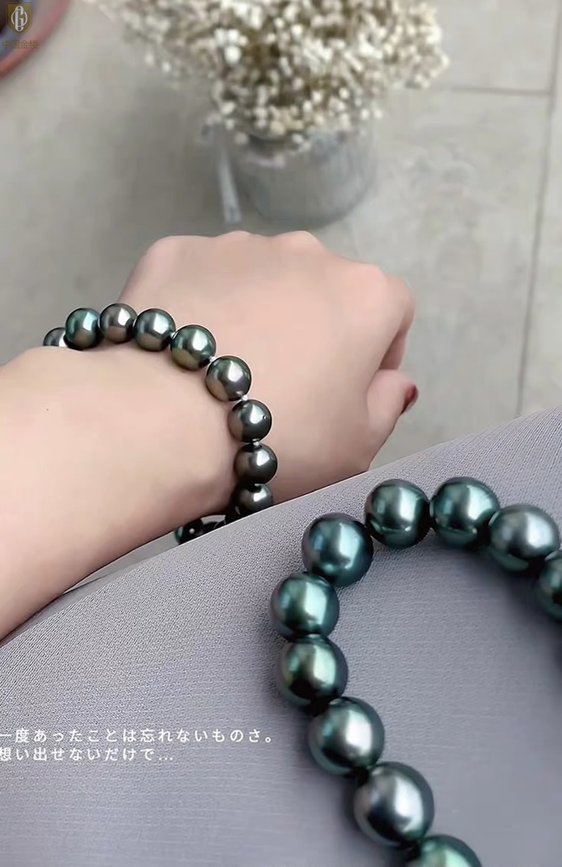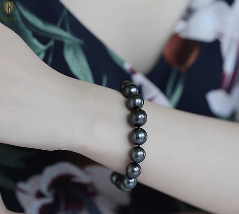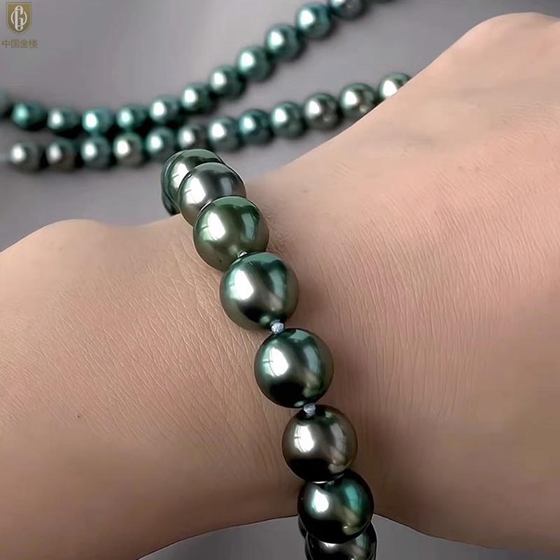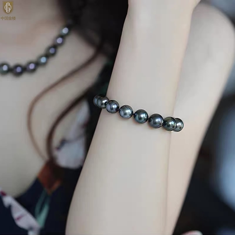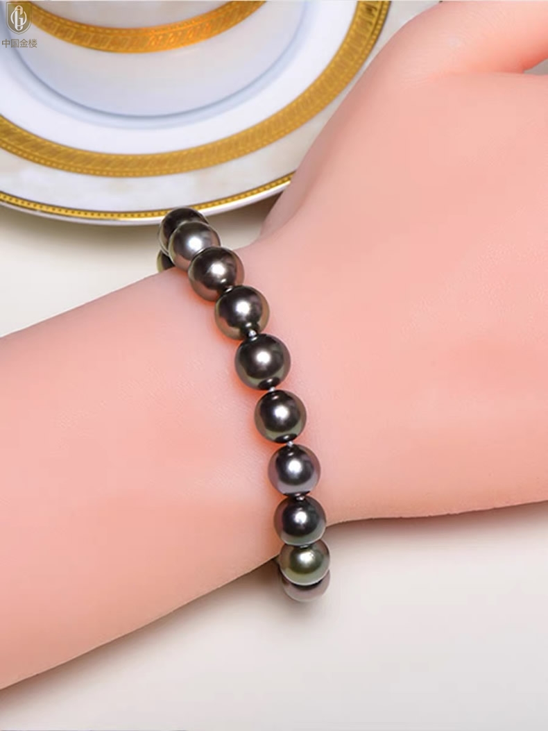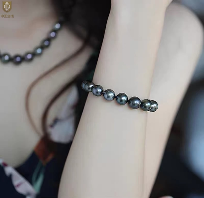 【品名】中国金楼大溪地进口正圆极光无暇全尺寸孔雀珍珠手链