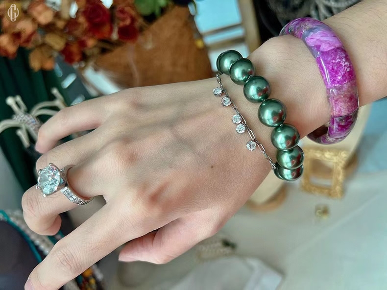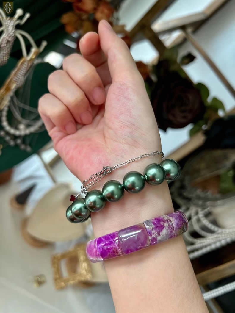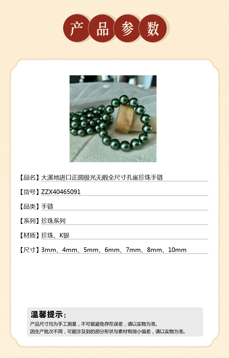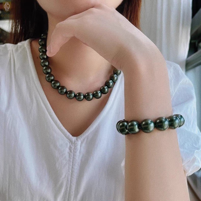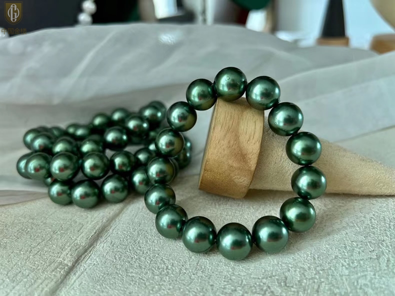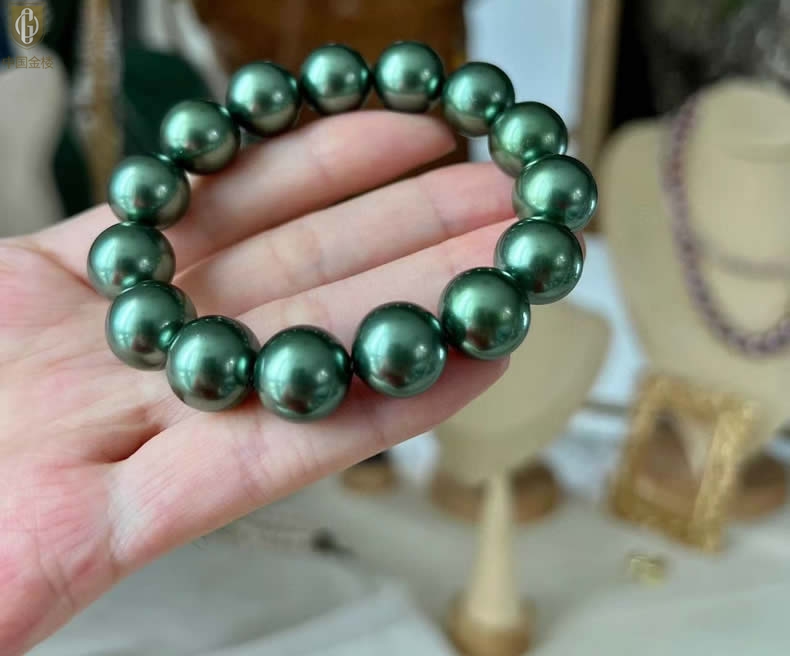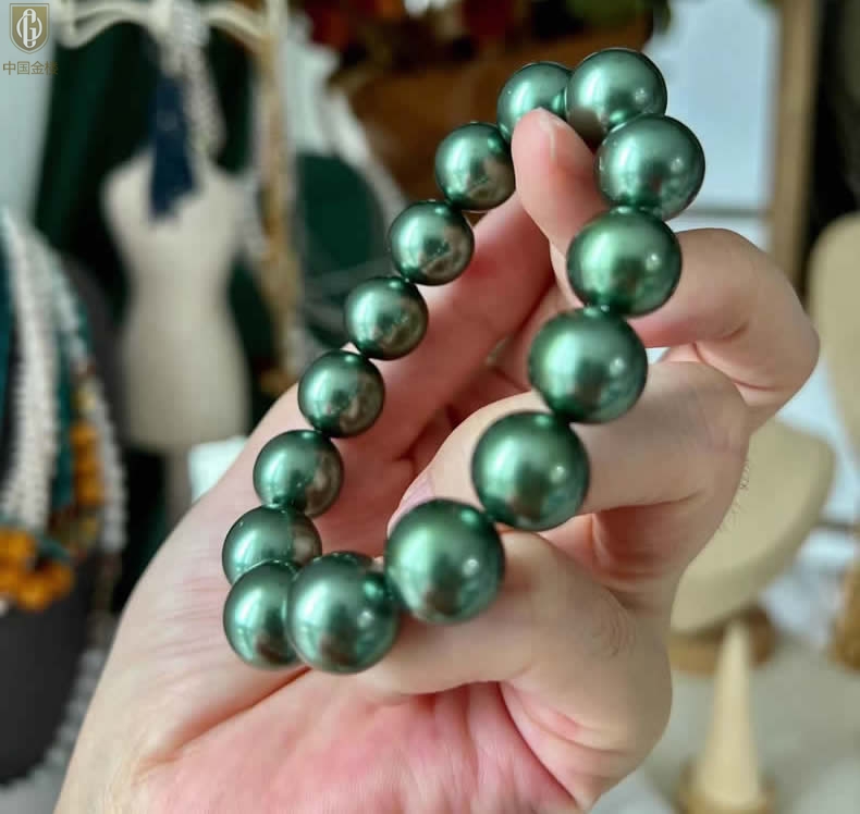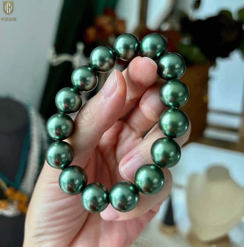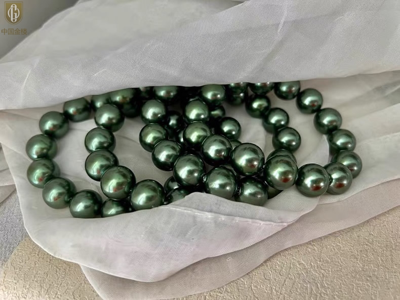 【品名】中国金楼大溪地进口正圆极光无暇全尺寸孔雀珍珠手链