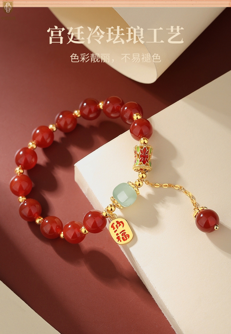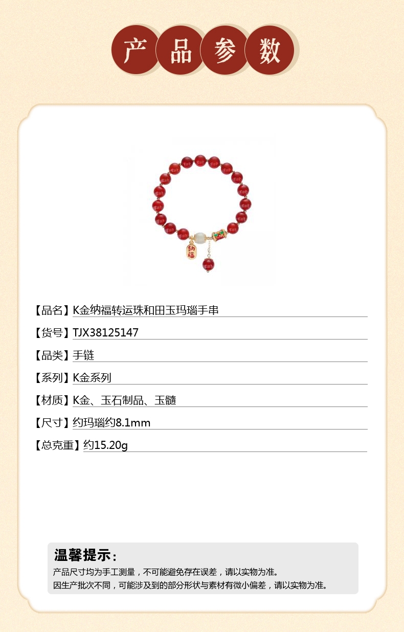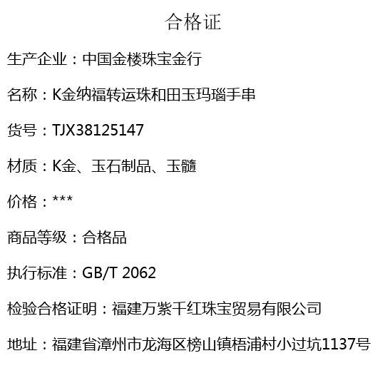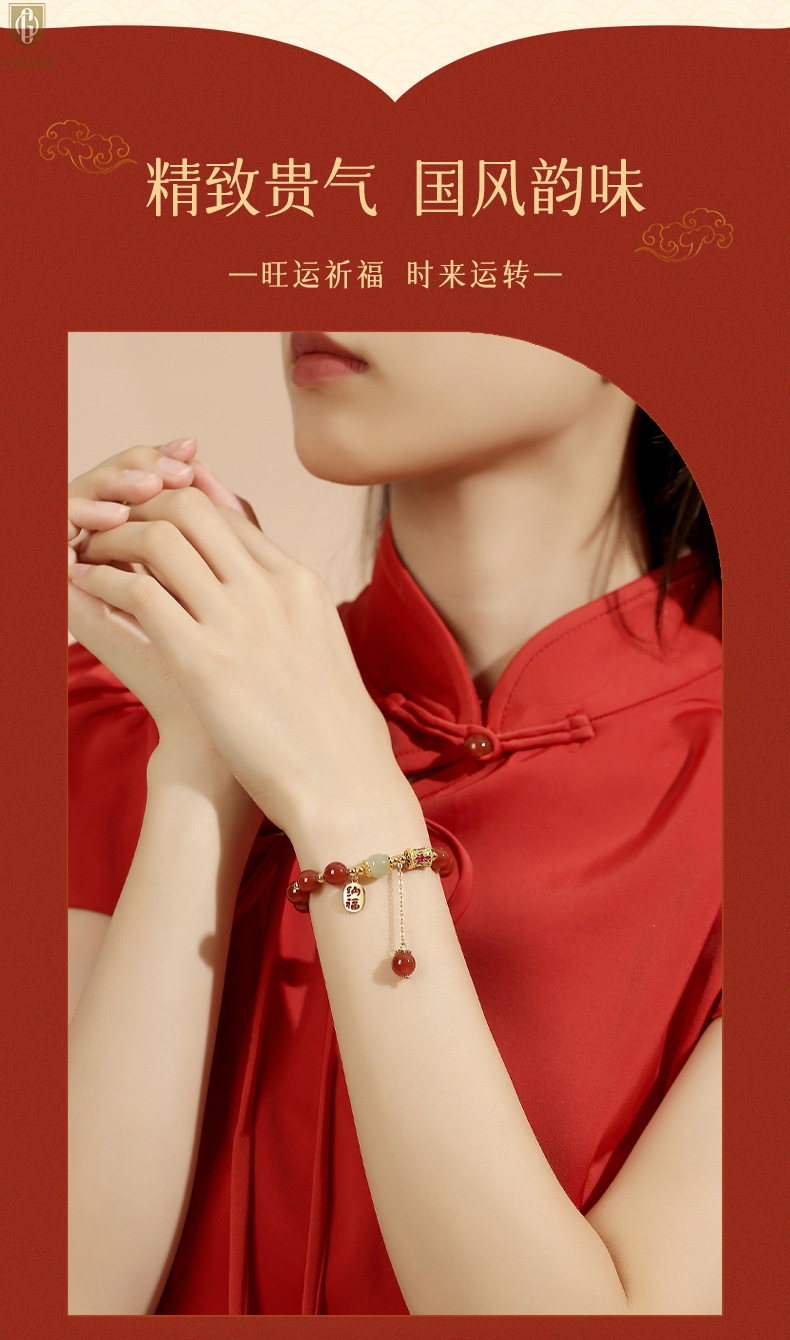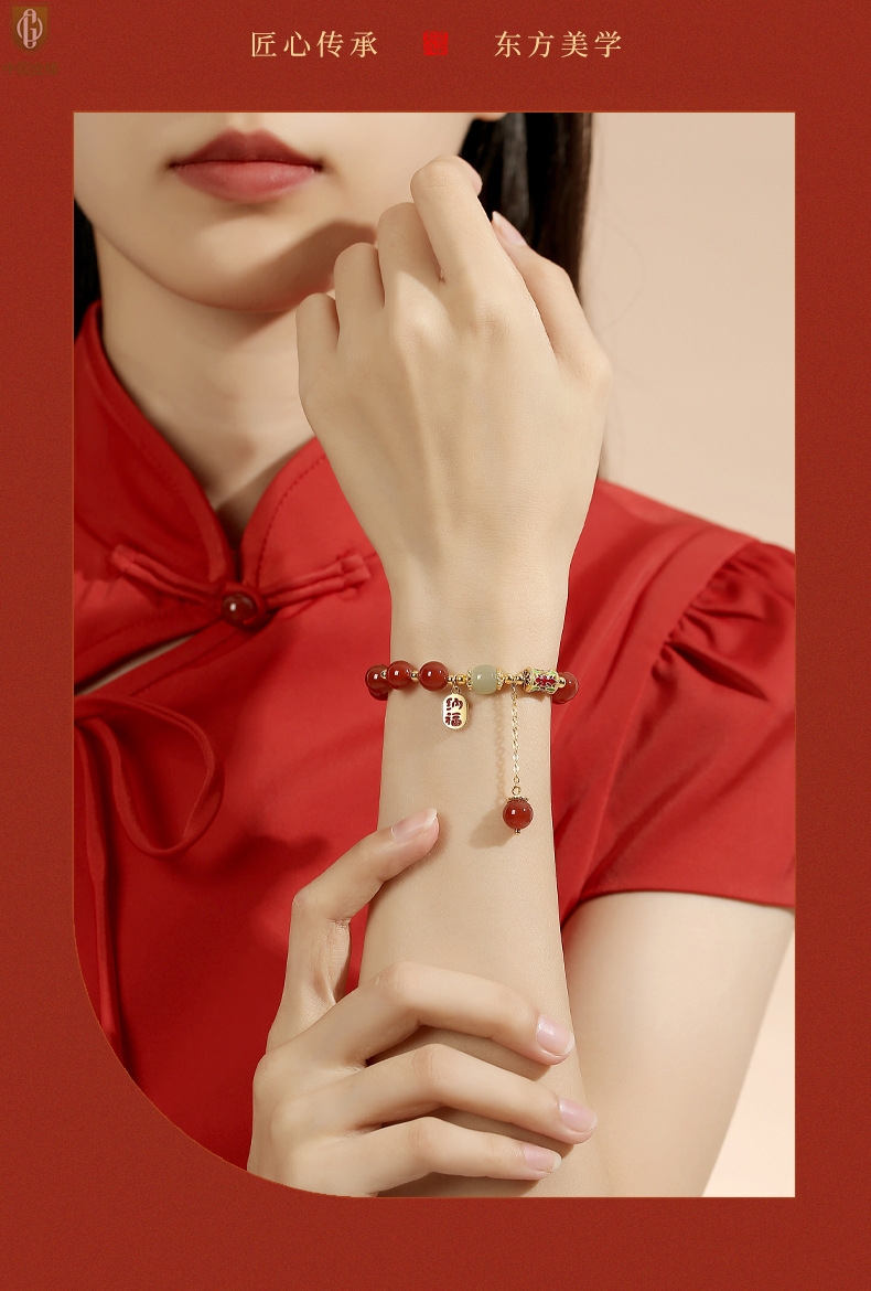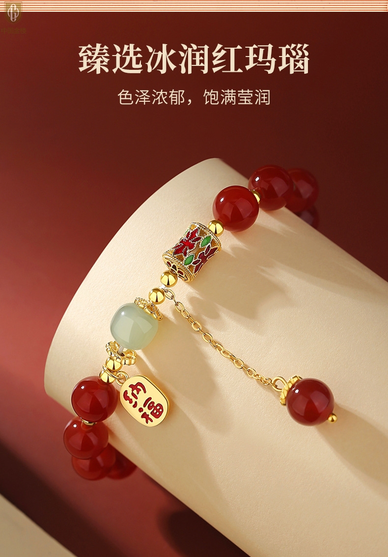【品名】中国金楼K金纳福转运珠和田玉玛瑙手串