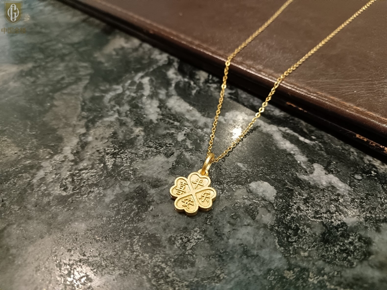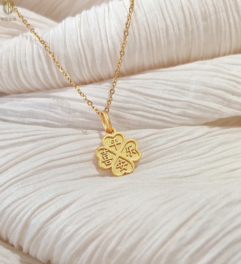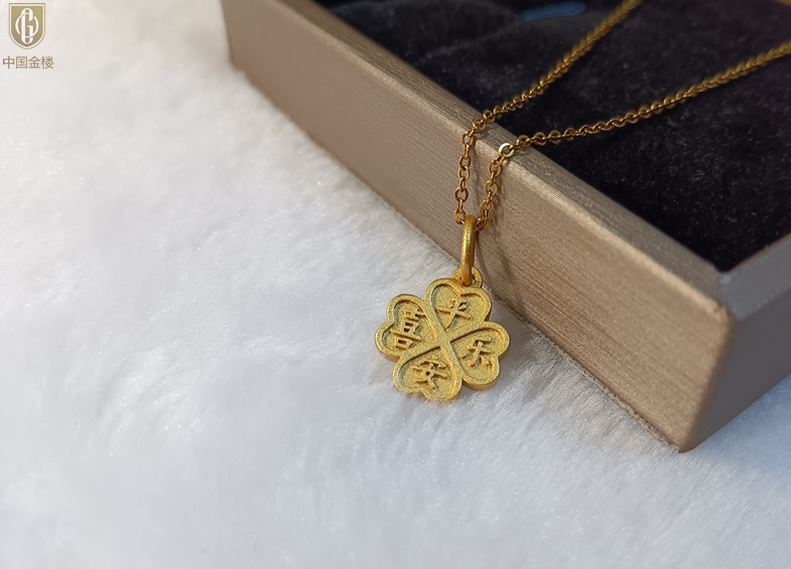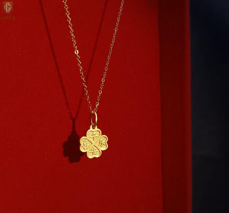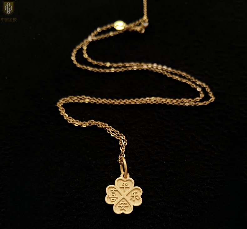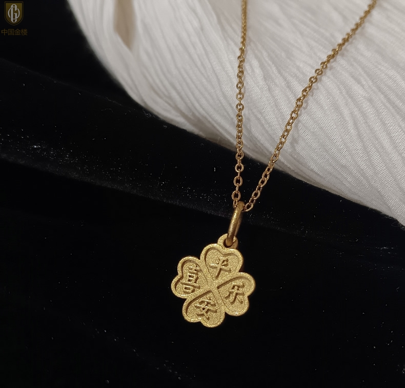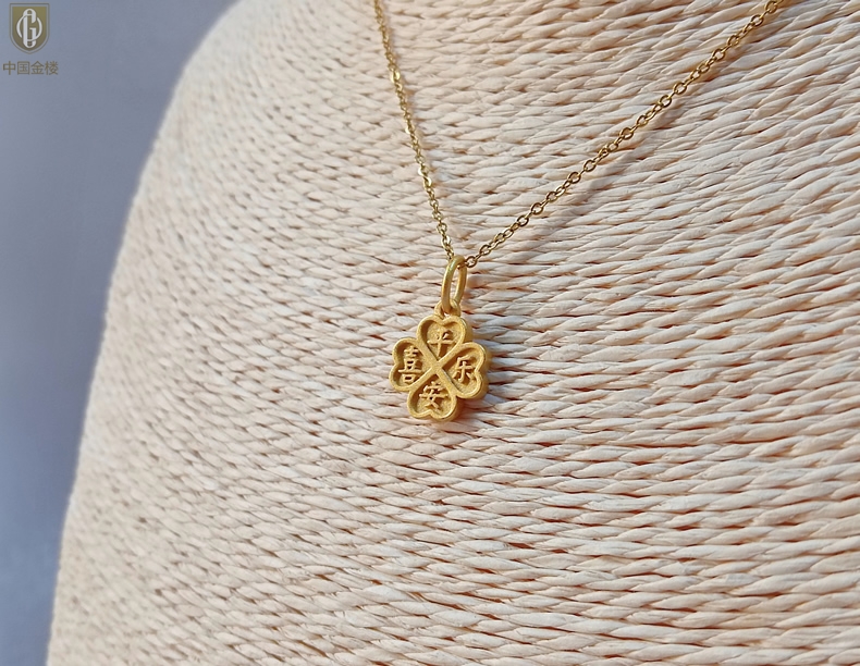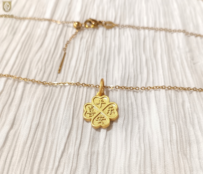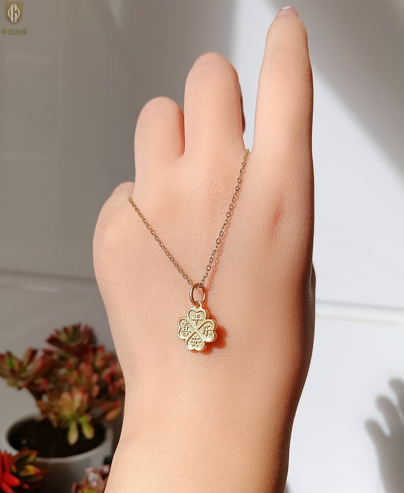 【品名】中国金楼K金平安喜乐四叶草吊坠(附赠K金项链)