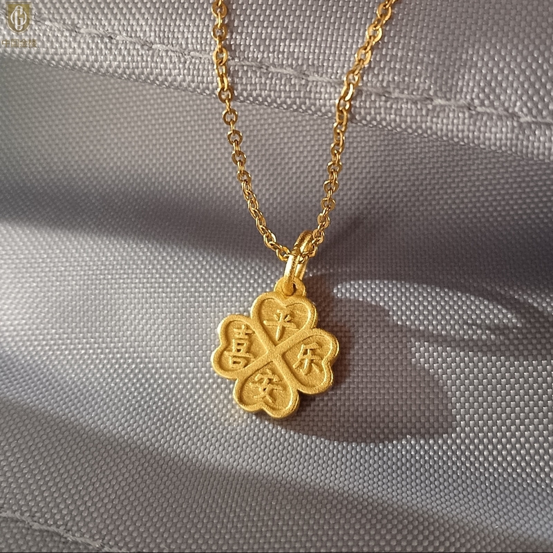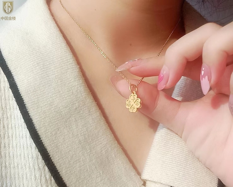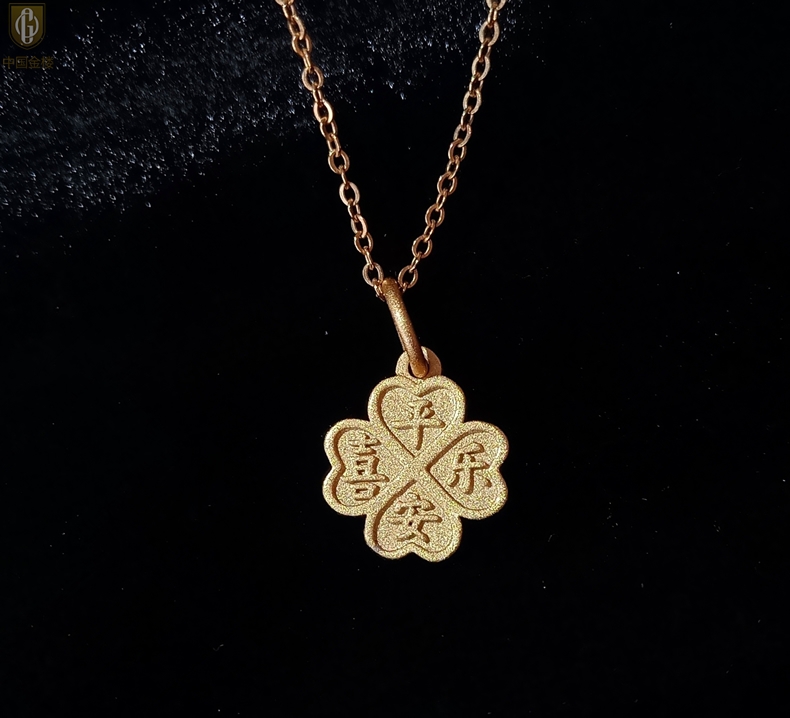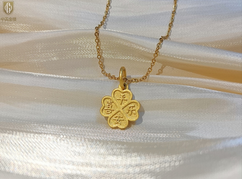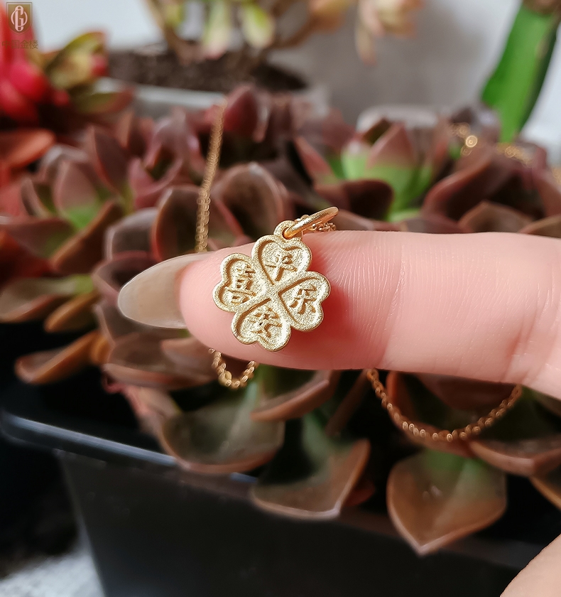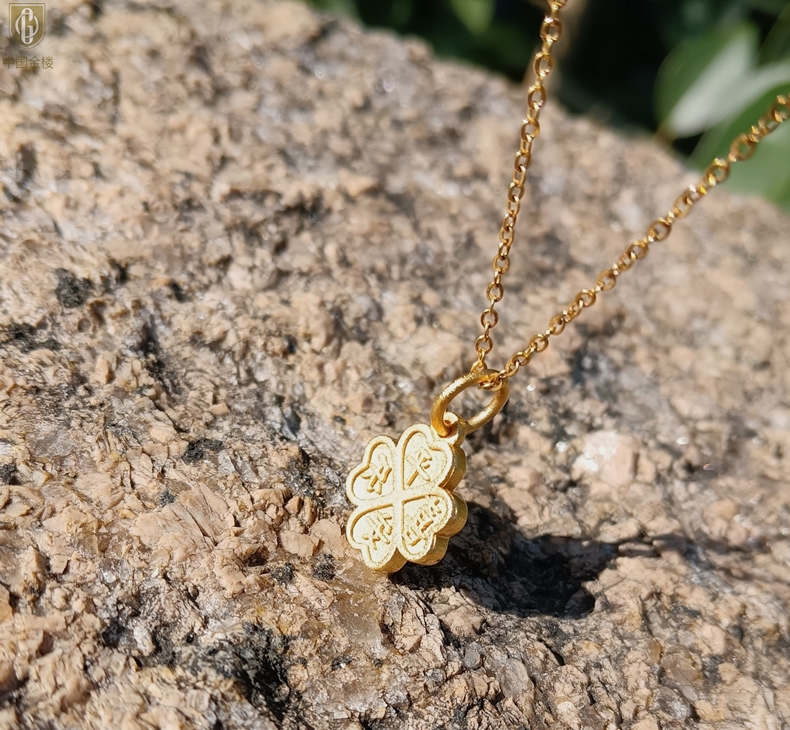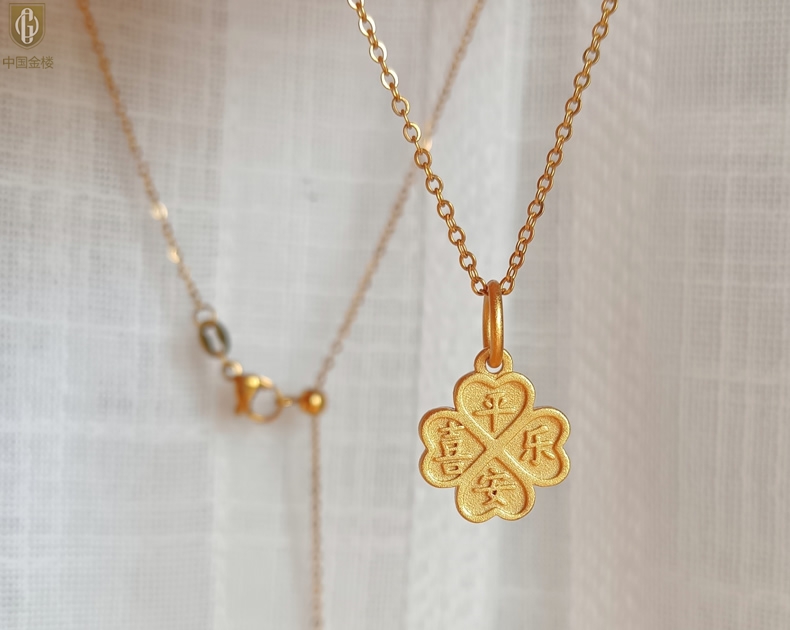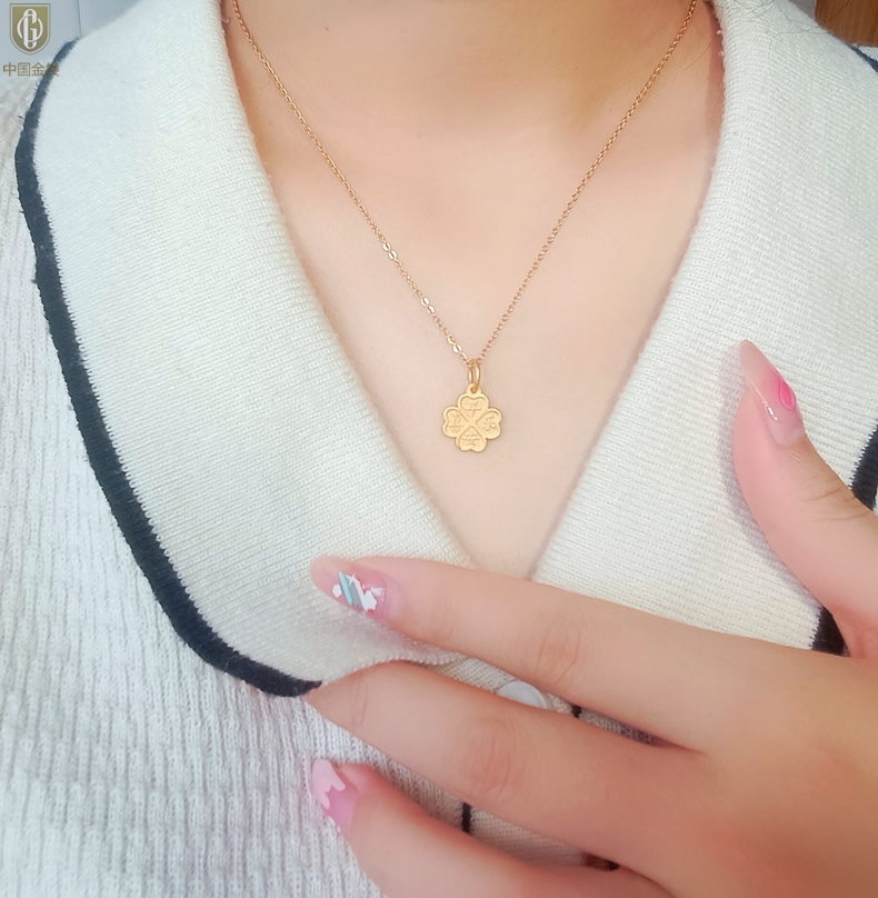 【品名】中国金楼K金平安喜乐四叶草吊坠(附赠K金项链)