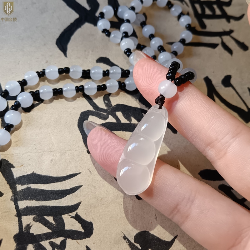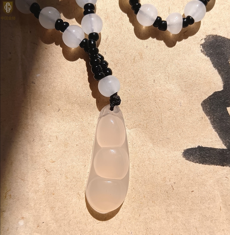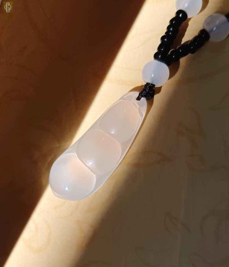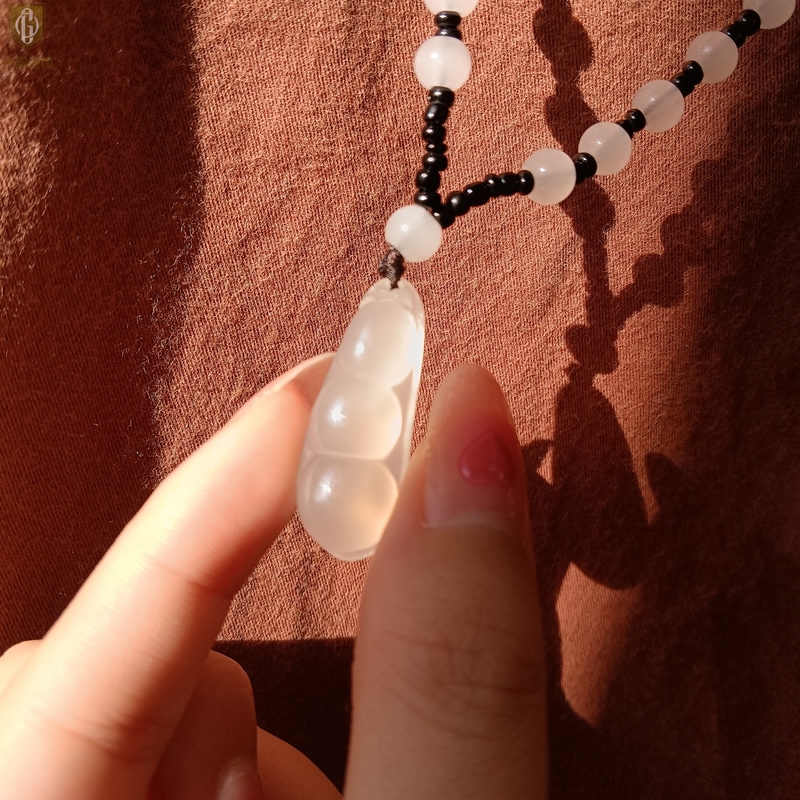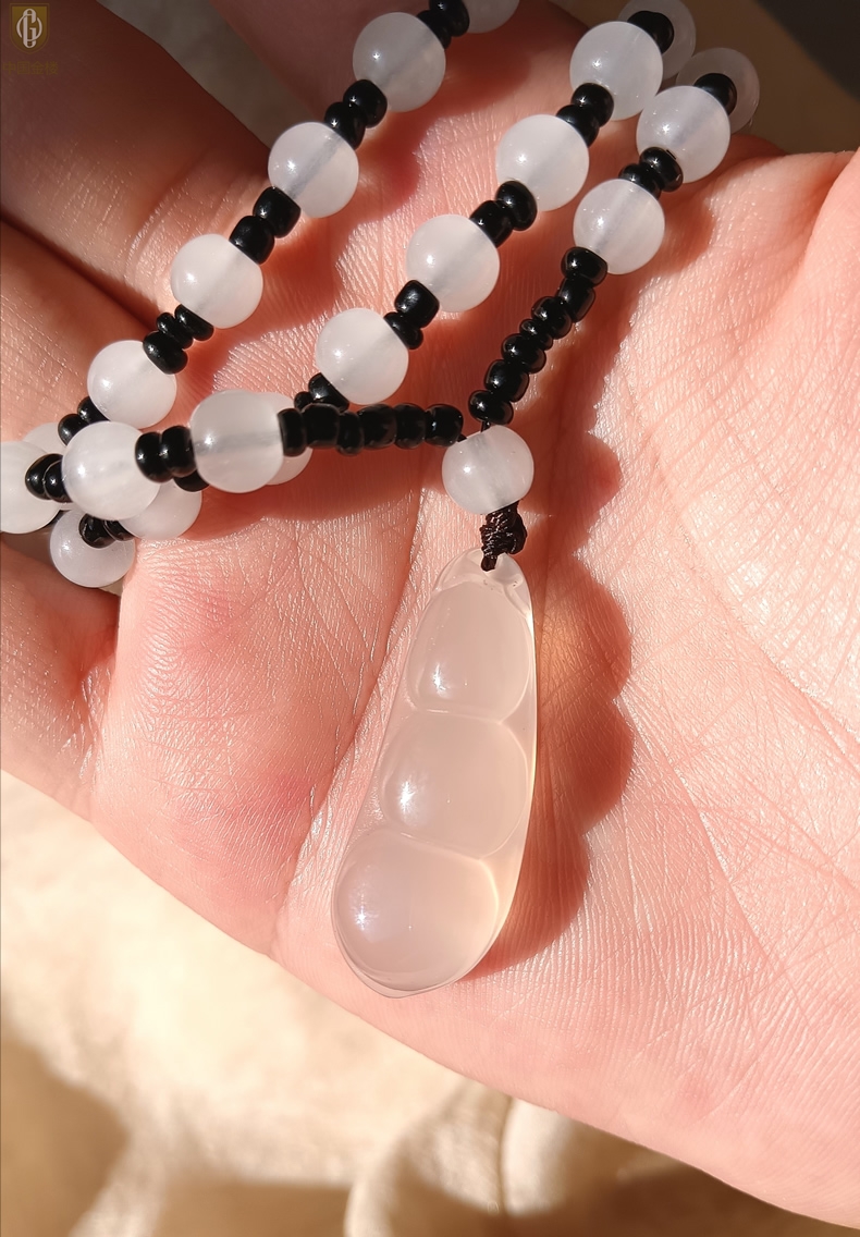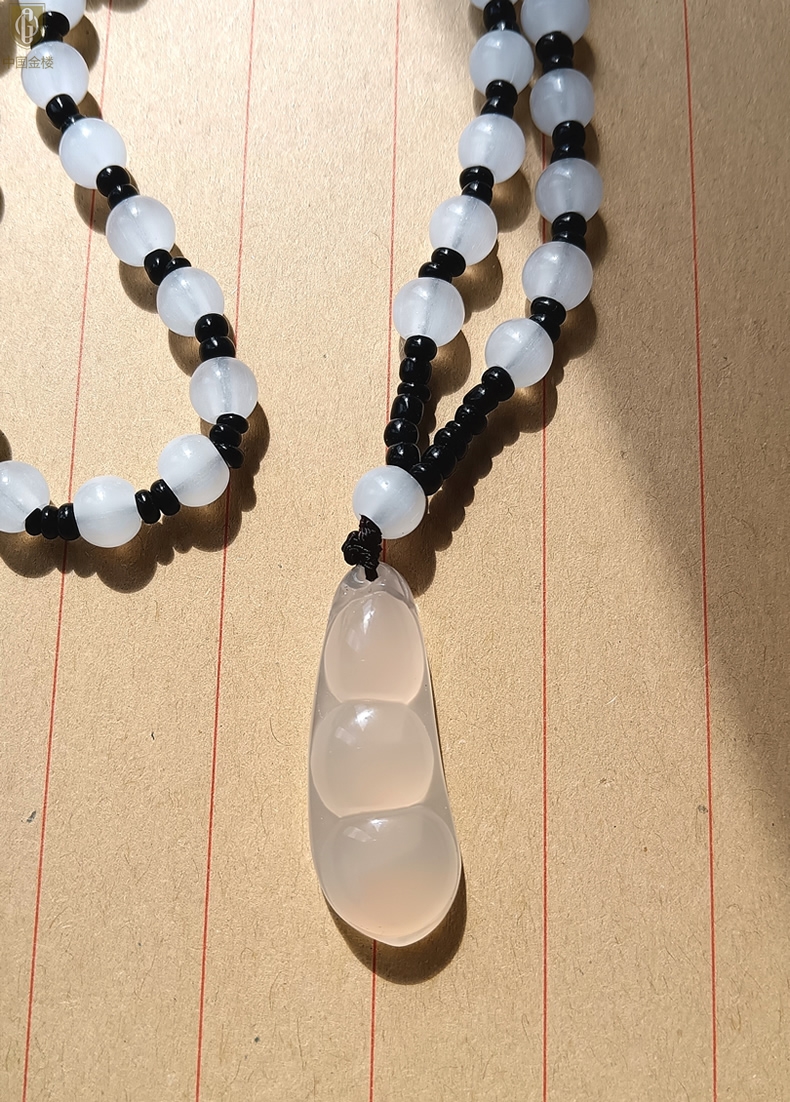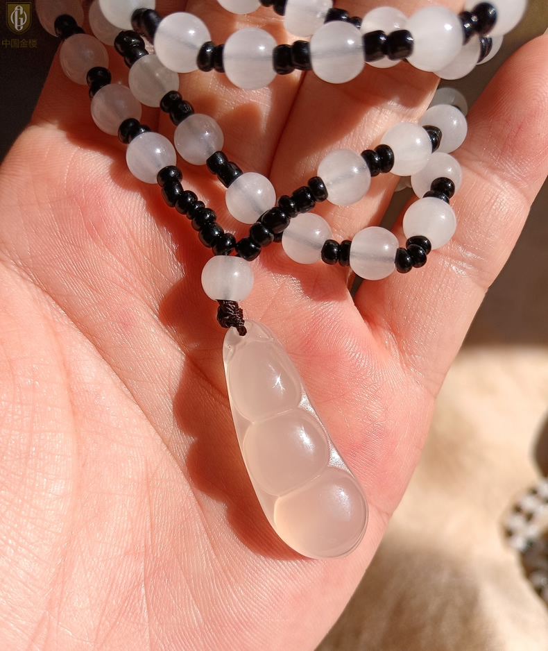 【品名】中国金楼巴西高冰玉髓四季平安豆吊坠(附赠汉白玉毛衣链)
