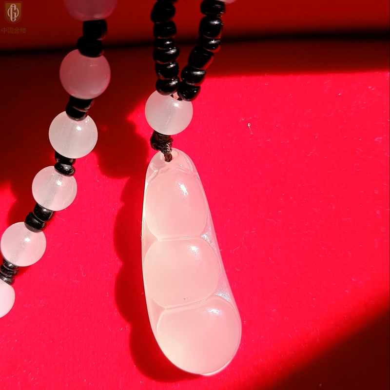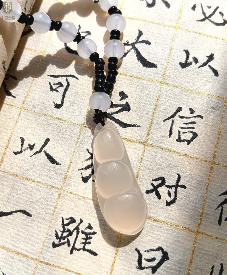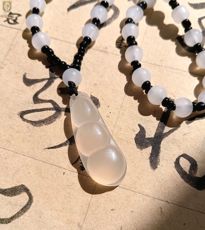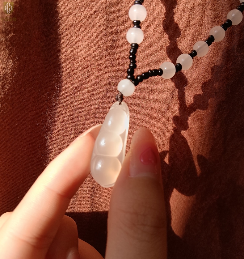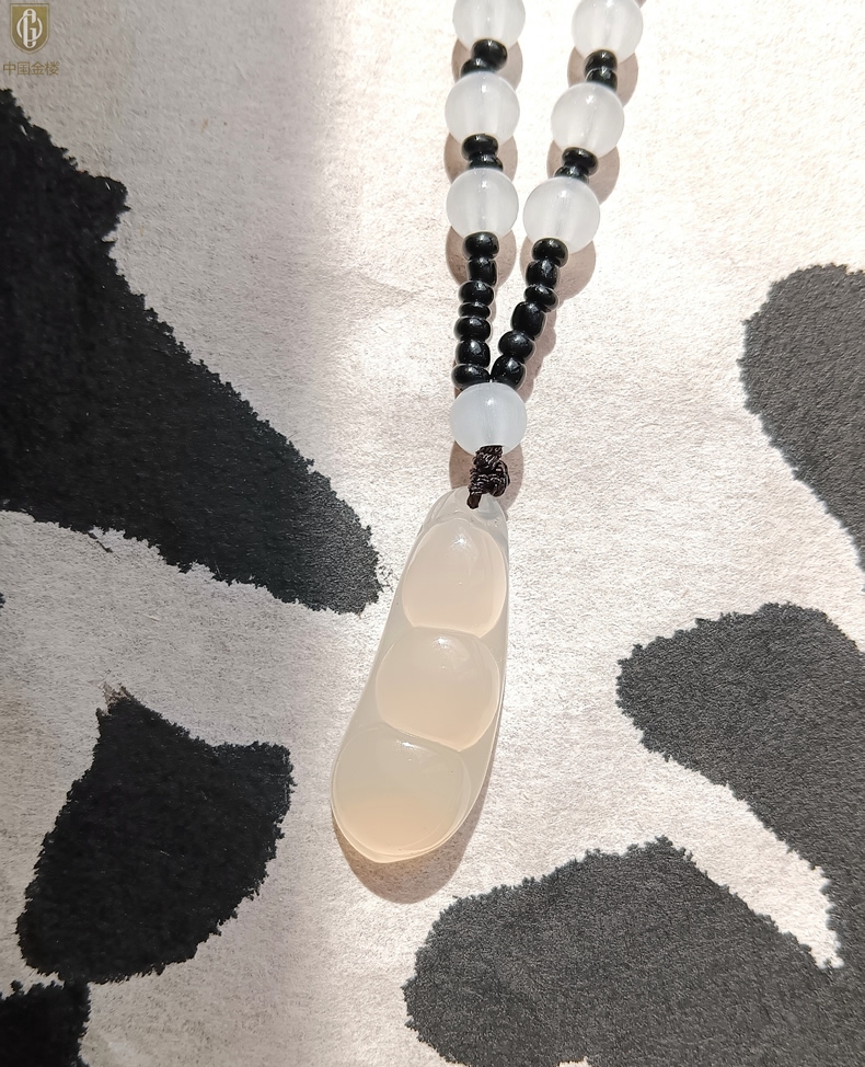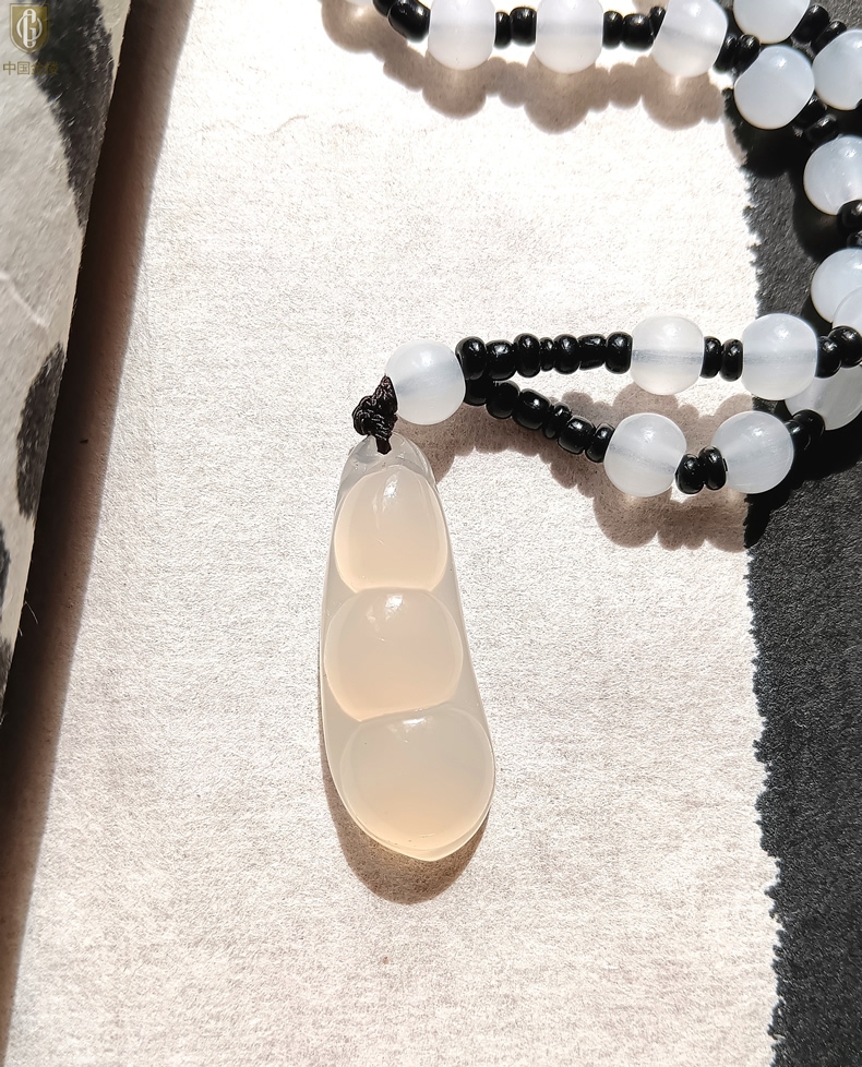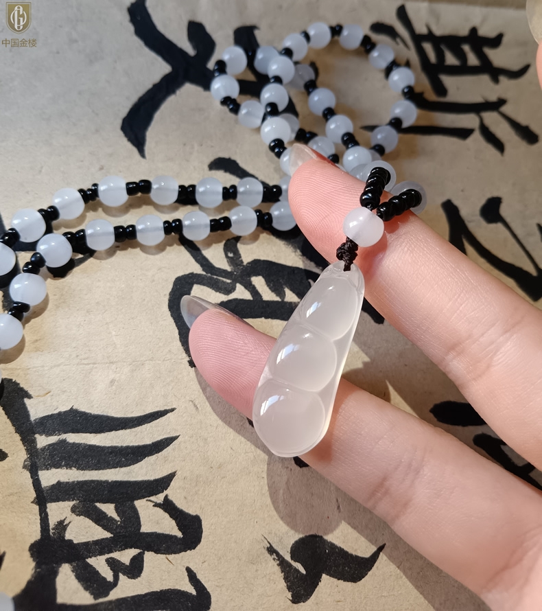 【品名】中国金楼巴西高冰玉髓四季平安豆吊坠(附赠汉白玉毛衣链)